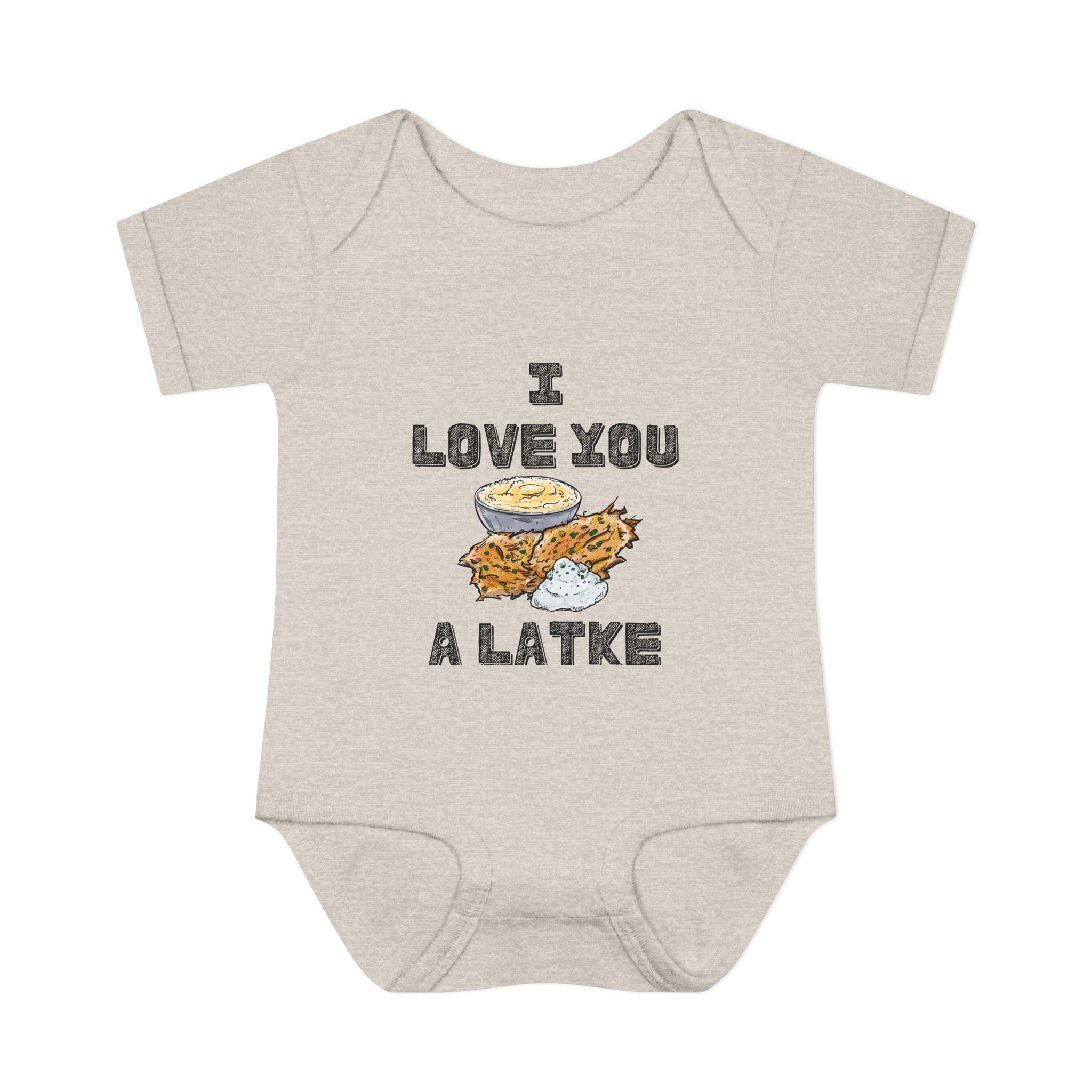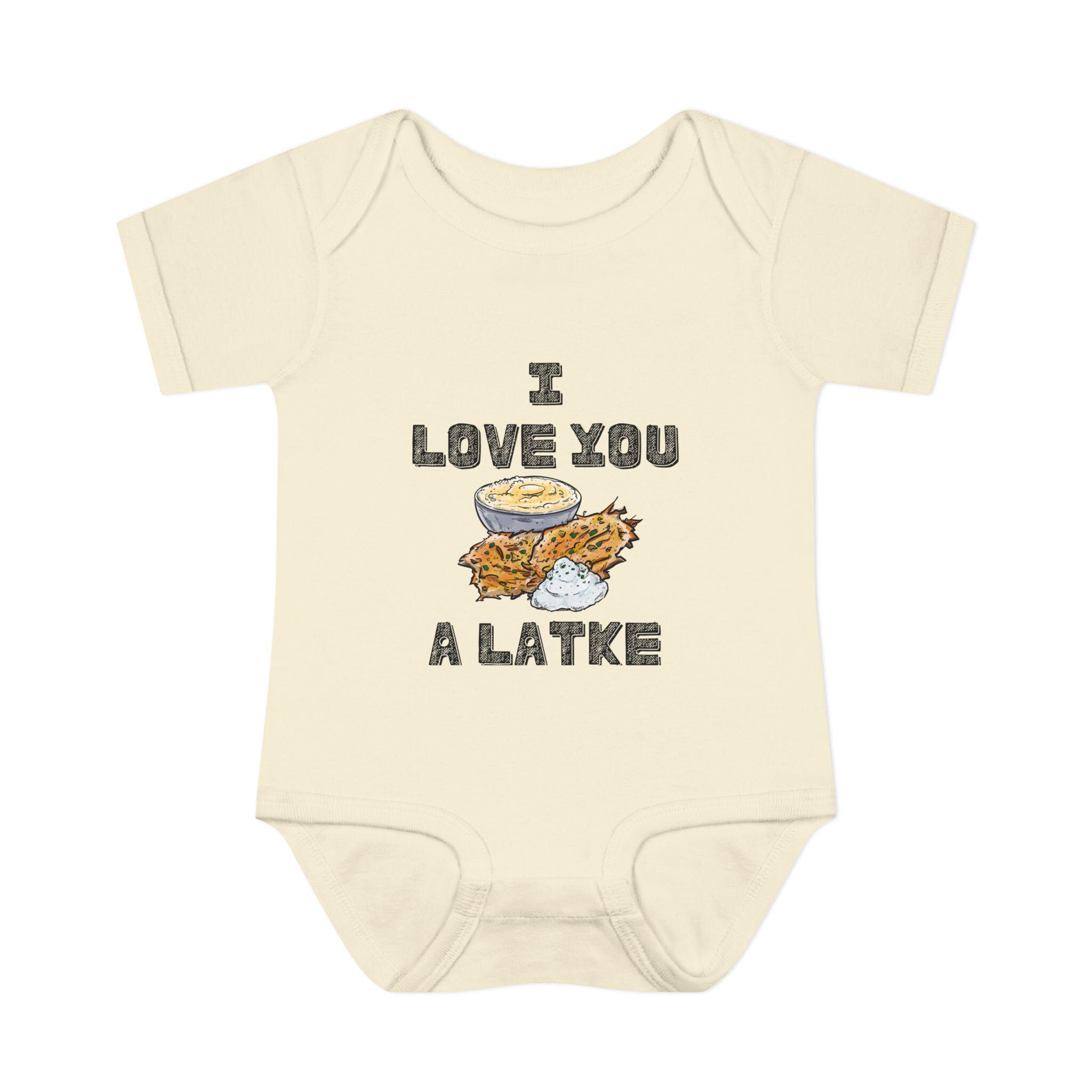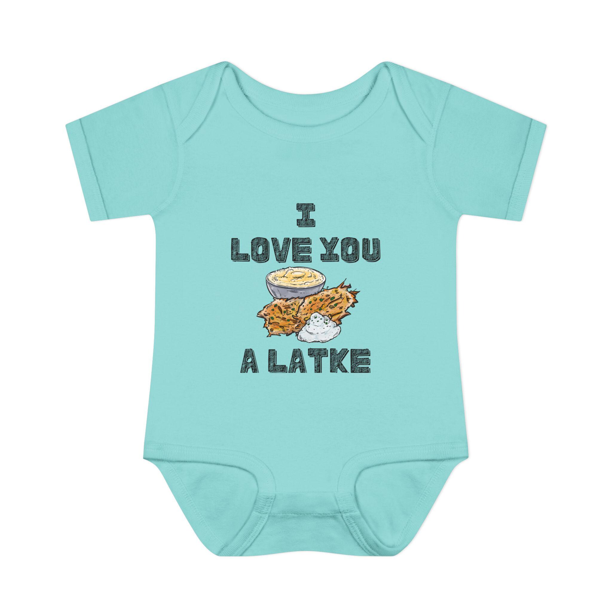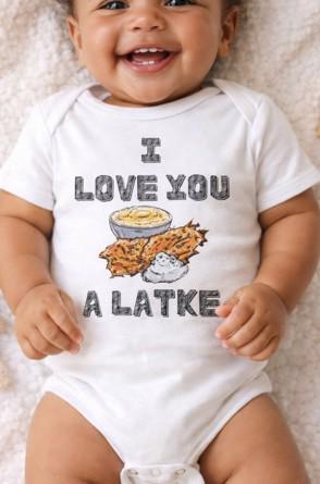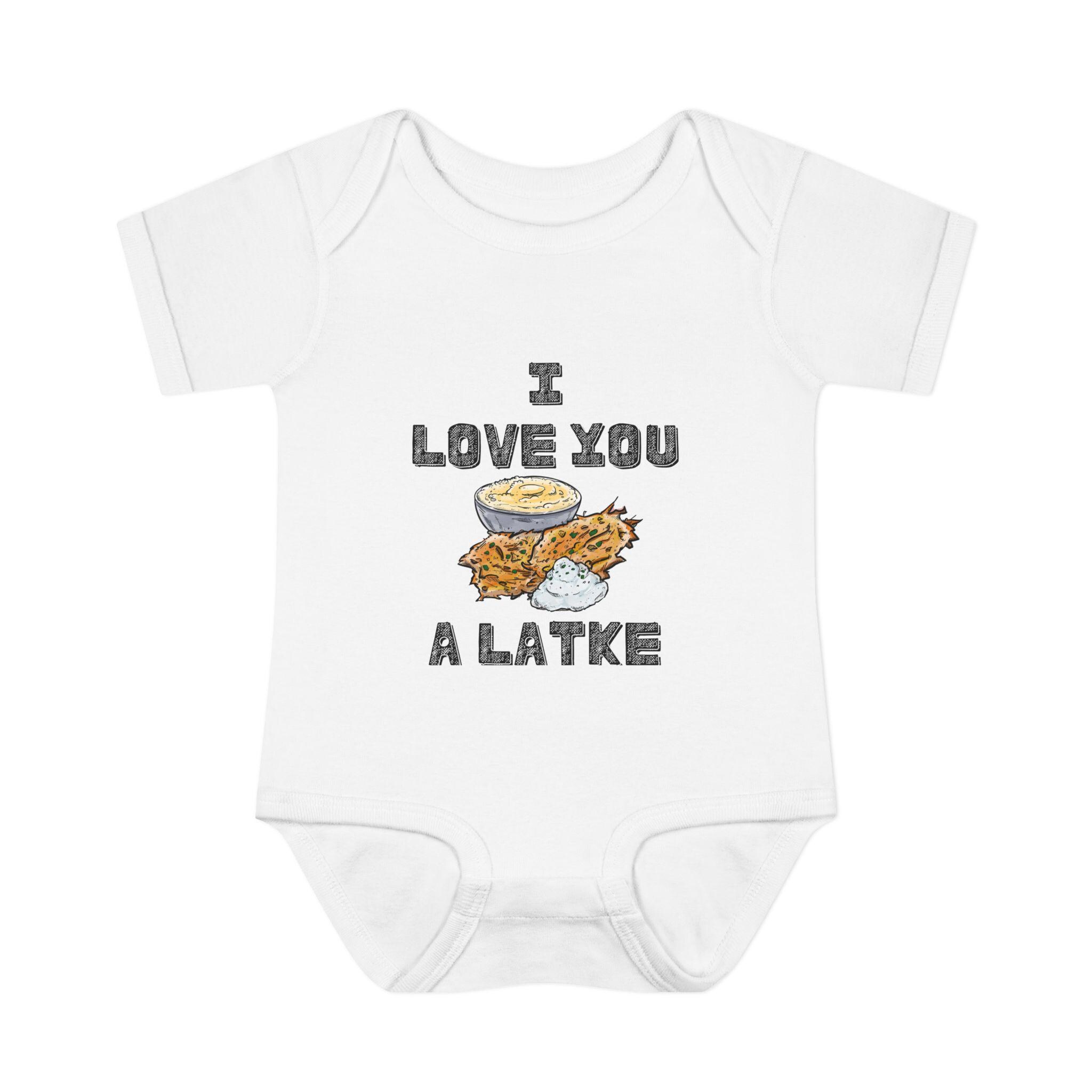 Celebrate your little one in the most adorable way with this “I Love You a Latke” baby onesie, complete with a smiling latke graphic that adds charm and humor to your Jewish babywear. Whether you're dressing up for Hanukkah or just want to make every day a little more punny, this onesie is perfect for Jewish families who love tradition and laughs.