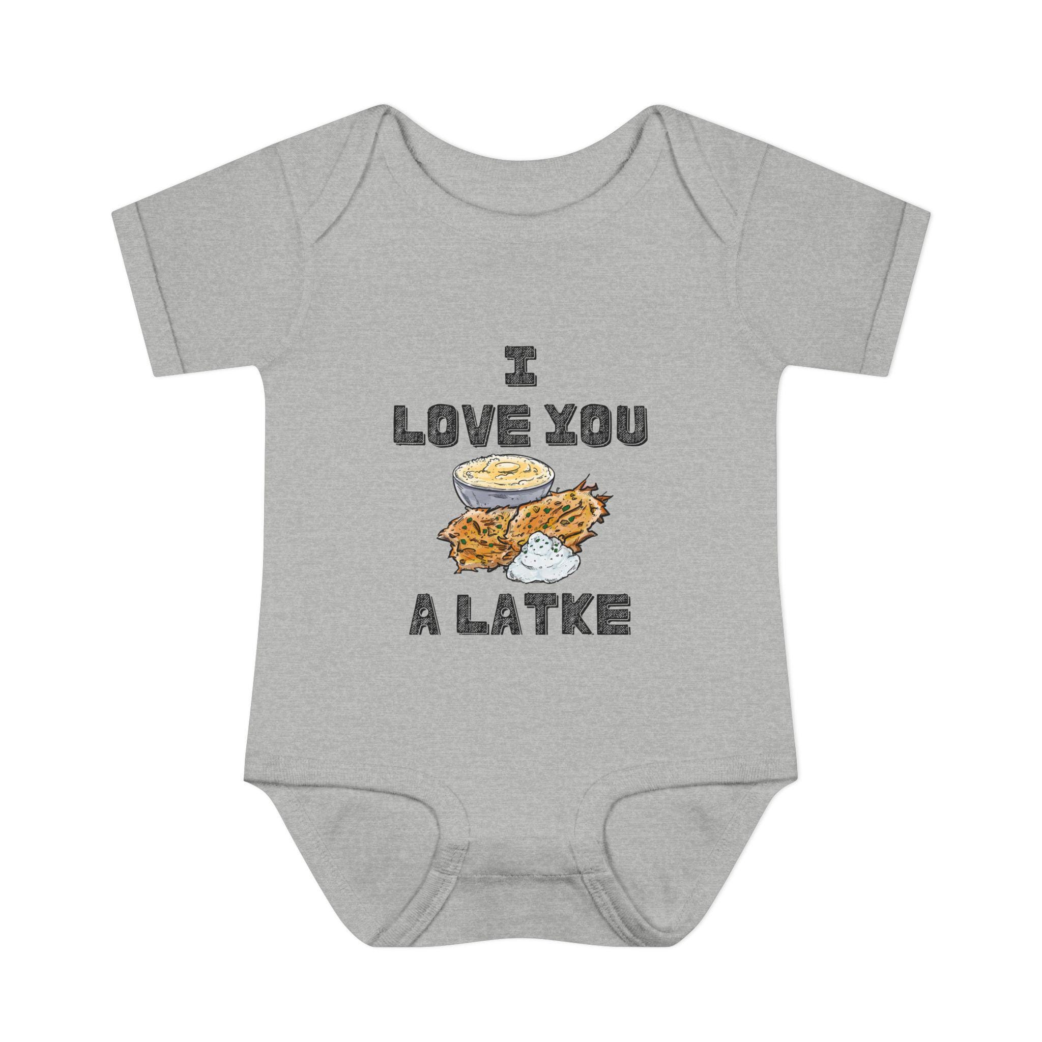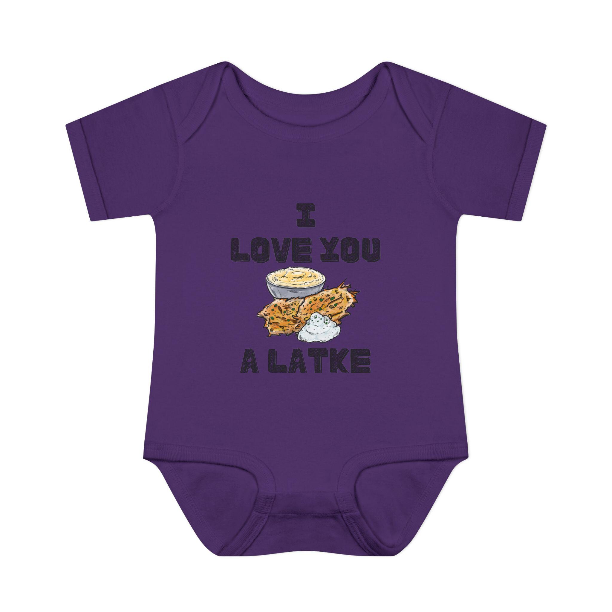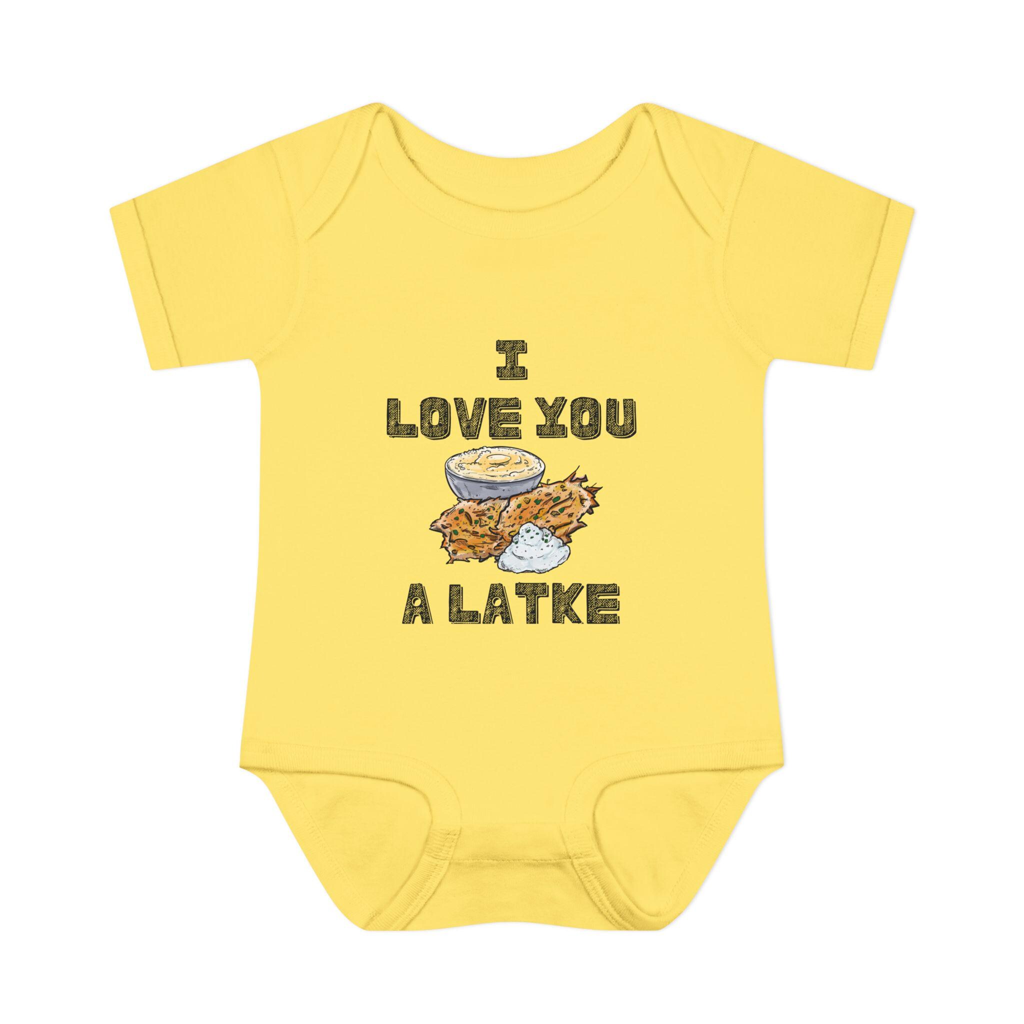 Celebrate your little one in the most adorable way with this “I Love You a Latke” baby onesie, complete with a smiling latke graphic that adds charm and humor to your Jewish babywear. Whether you're dressing up for Hanukkah or just want to make every day a little more punny, this onesie is perfect for Jewish families who love tradition and laughs.