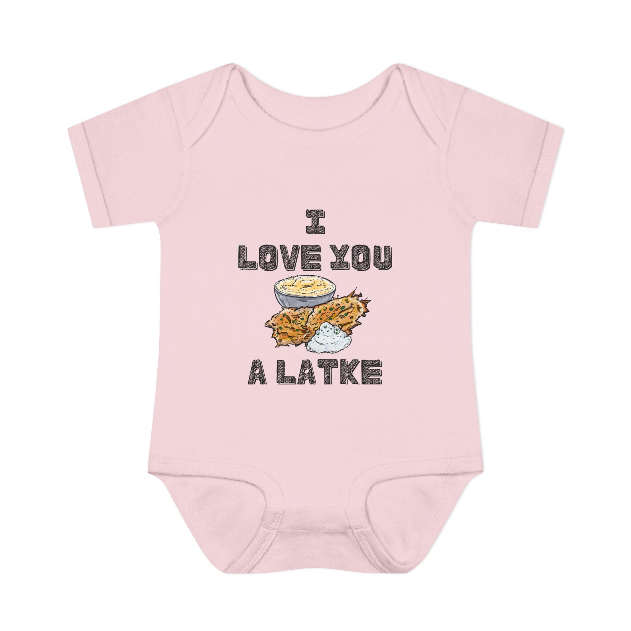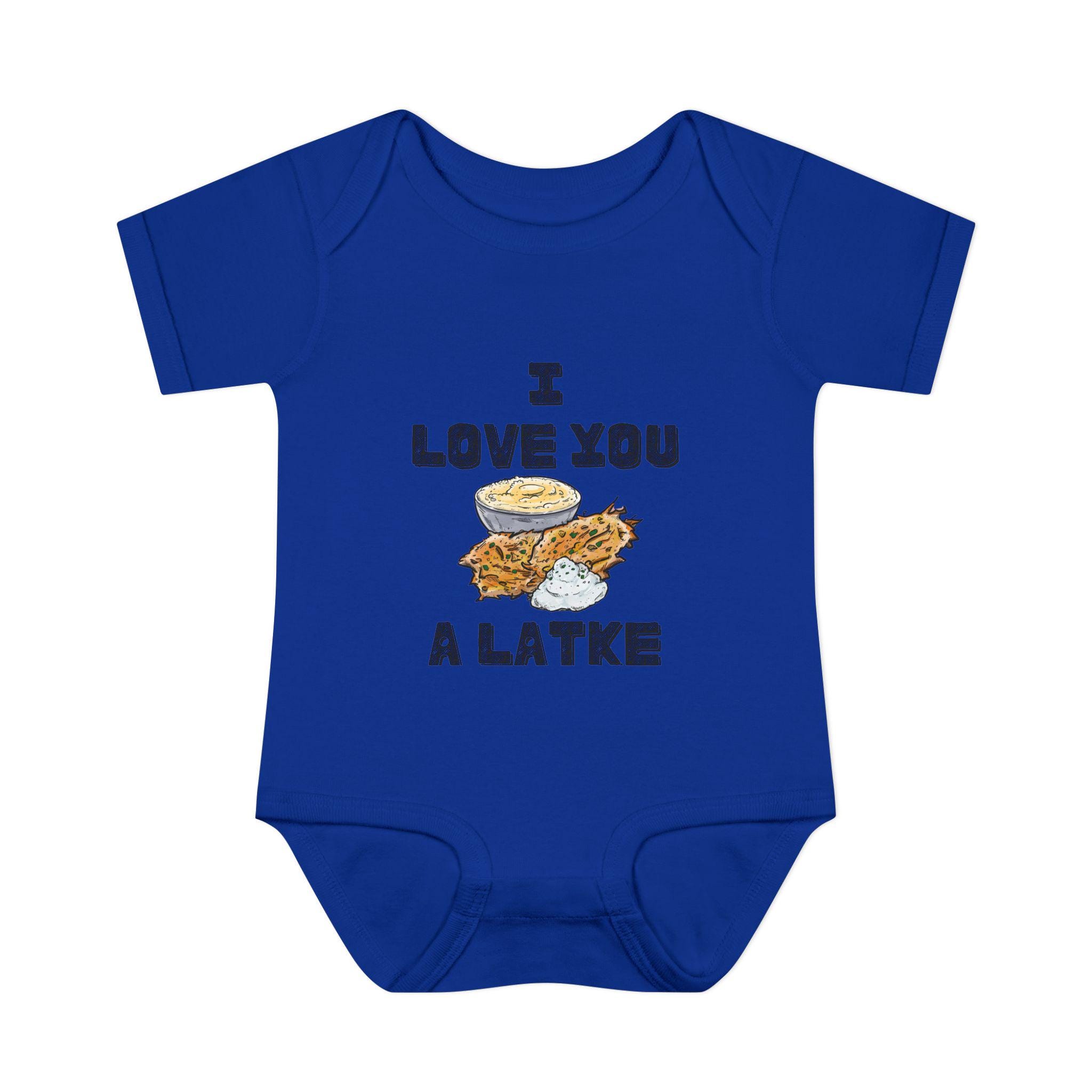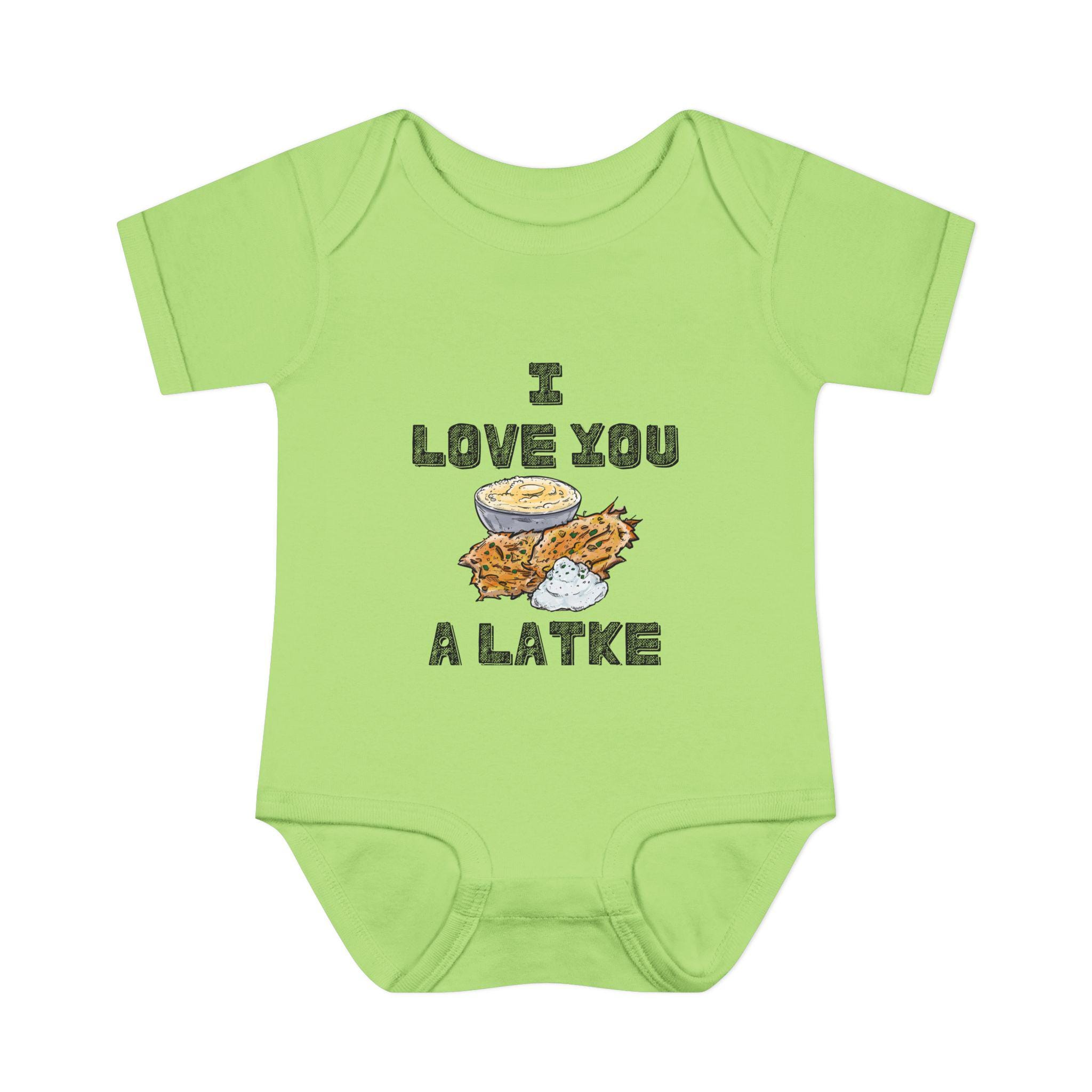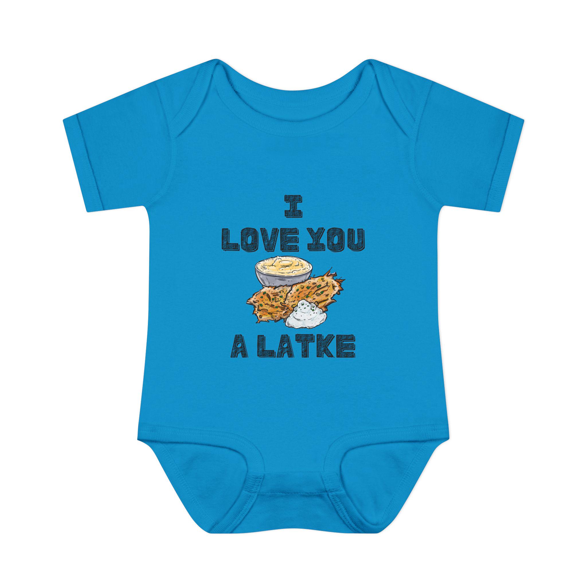Celebrate your little one in the most adorable way with this “I Love You a Latke” baby onesie, complete with a smiling latke graphic that adds charm and humor to your Jewish babywear. Whether you're dressing up for Hanukkah or just want to make every day a little more punny, this onesie is perfect for Jewish families who love tradition and laughs.