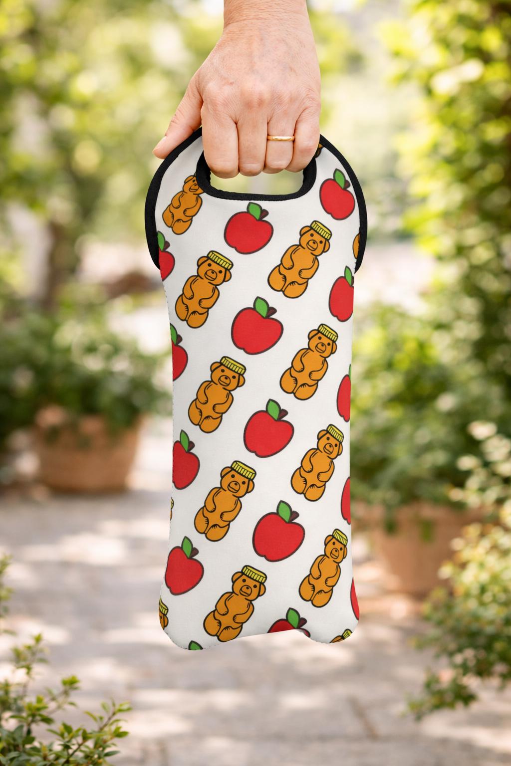 Crafted from high-quality neoprene, this wine bag is flexible, durable, and designed to keep your bottle safe and stylish. The vibrant all-over print captures the essence of the holiday: sweetness, tradition, and joy. Black trim and soft-grip handles add a polished finish, making it a thoughtful and reusable gift for Jewish celebrations.