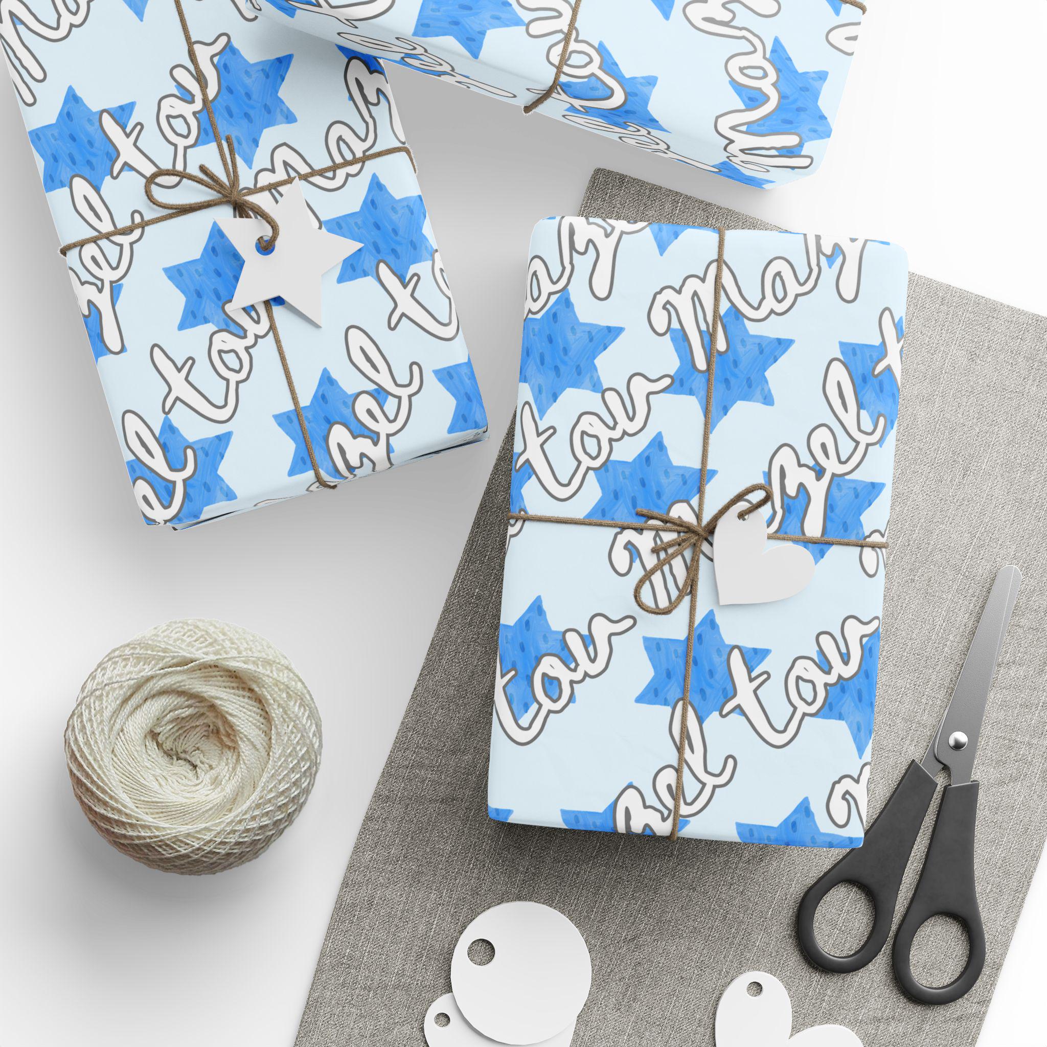 Celebrate life’s sweetest Jewish milestones with this vibrant Mazel Tov wrapping paper featuring blue Stars of David and the joyful phrase “Mazel Tov.” Perfect for baby namings, brit milah celebrations, bar or bat mitzvahs, weddings, and holidays, this design adds meaningful tradition to every gift you give.
