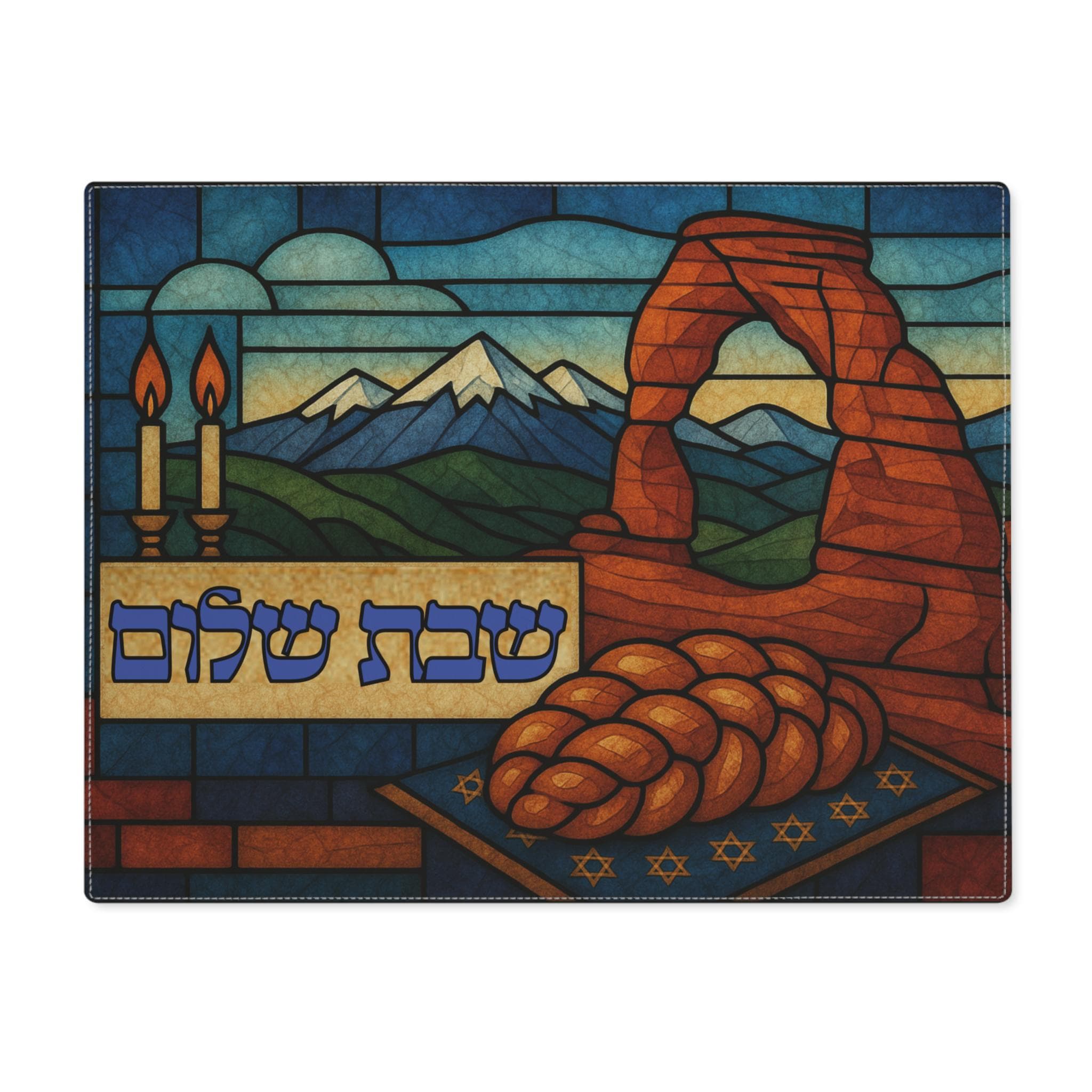 Bring the beauty of Utah’s red rock landscape to your Shabbat table with this Utah Arches challah cover, featuring a warm desert scene inspired by the iconic arches and rugged terrain of the Southwest. The words “Shabbat Shalom” in Hebrew add a meaningful and traditional touch, blending natural grandeur with timeless Jewish ritual.