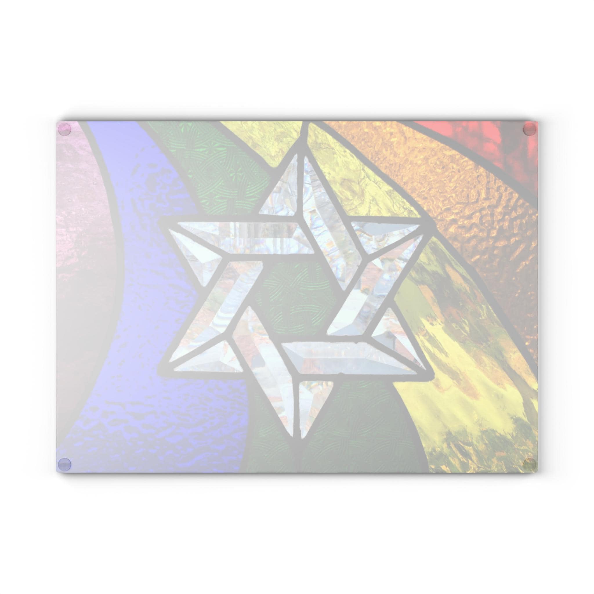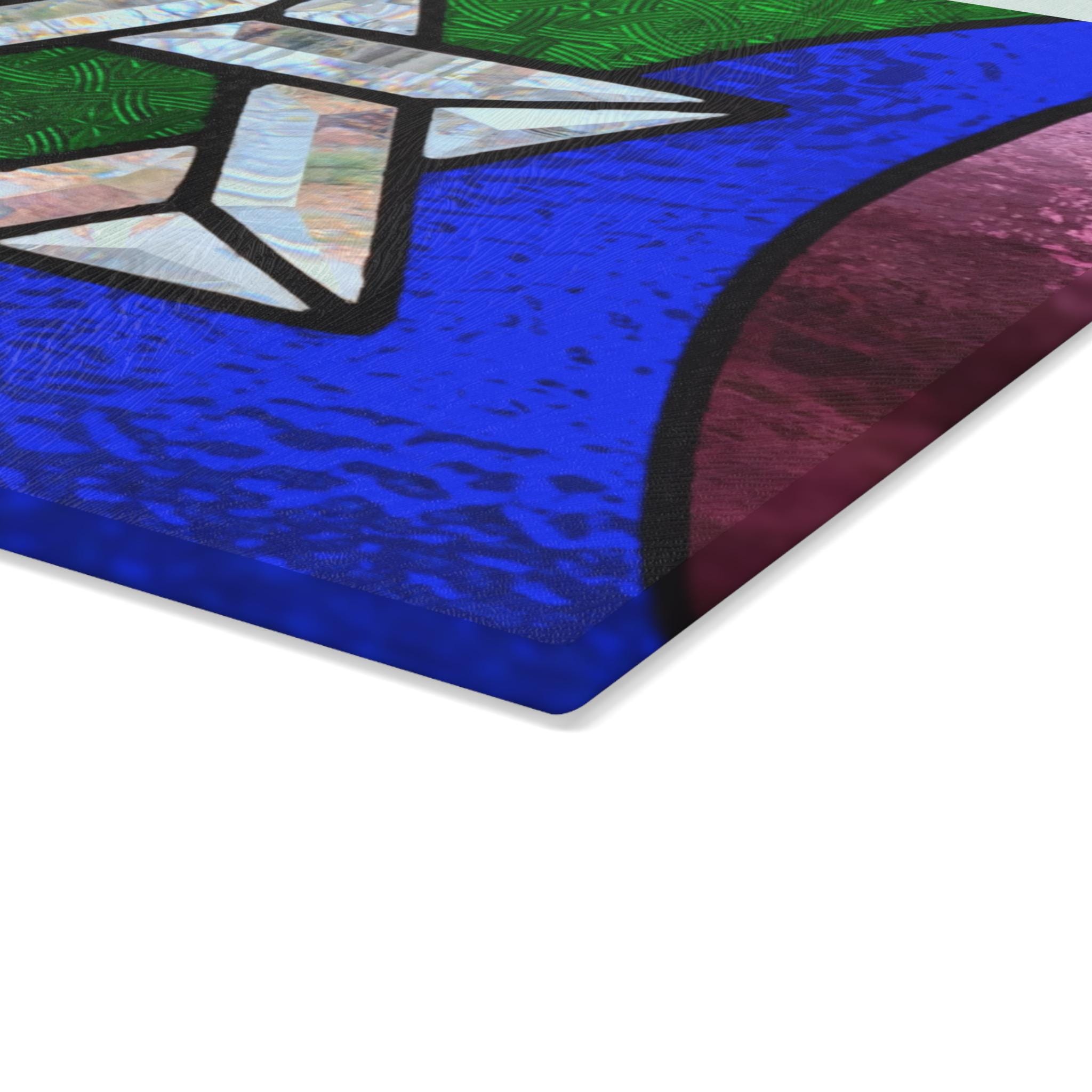 Printed in high-definition on durable tempered glass, the stained glass artwork showcases vivid rainbow tones that remain bright and scratch-resistant. The hygienic tempered glass surface is sturdy and practical for serving challah during Shabbat and holiday meals. Four rubber dots on the underside provide stability and protect your table during use. 11″ × 15″, this board is perfect for weekly Shabbat dinners, Pride Month celebrations, LGBTQ+ weddings, bar or bat mitzvahs, or as a heartfelt gift for Jewish families and allies who embrace faith and inclusivity.