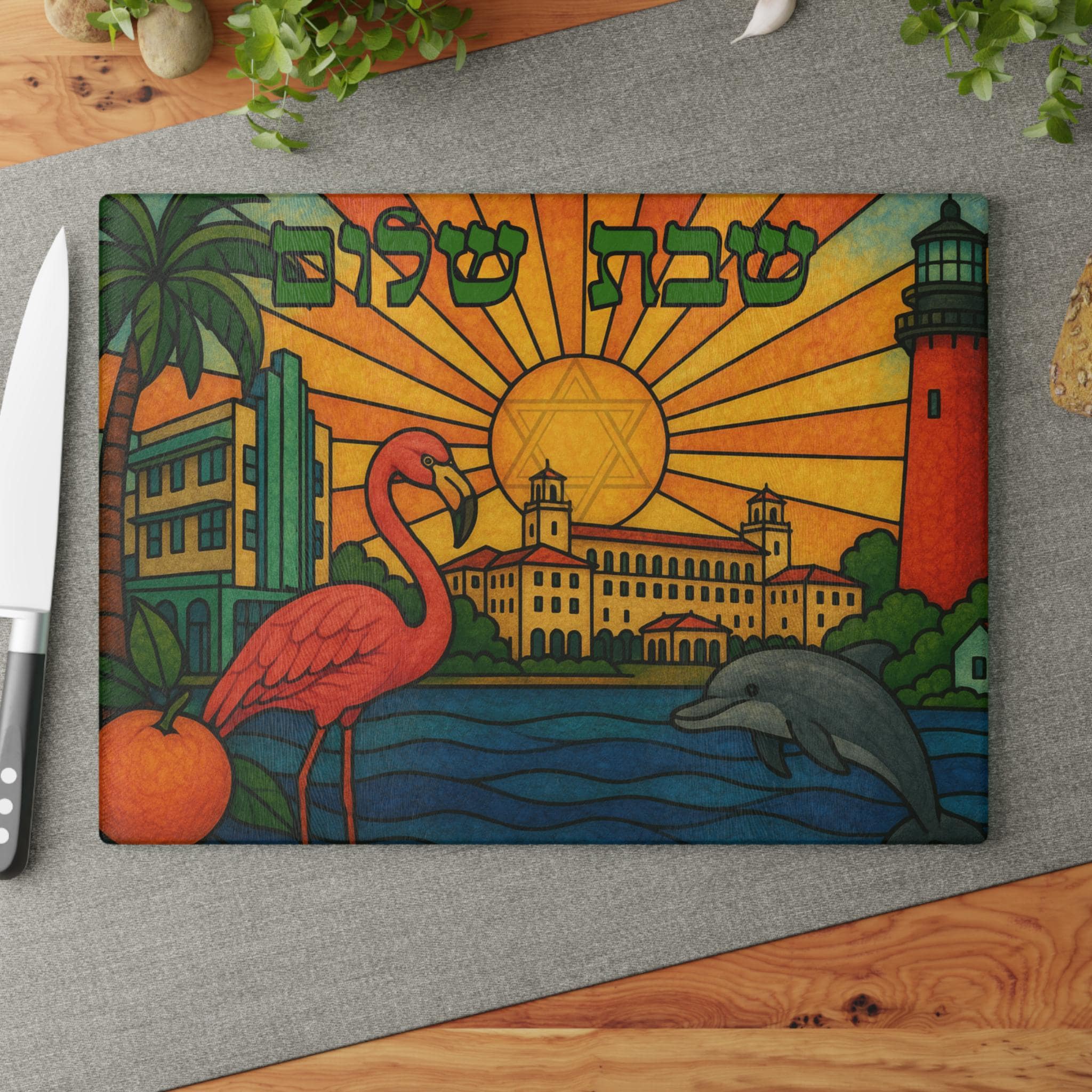 Add a little Florida flair to your Shabbat tradition. Order this vibrant challah board today and bring sunshine to your weekly celebration.