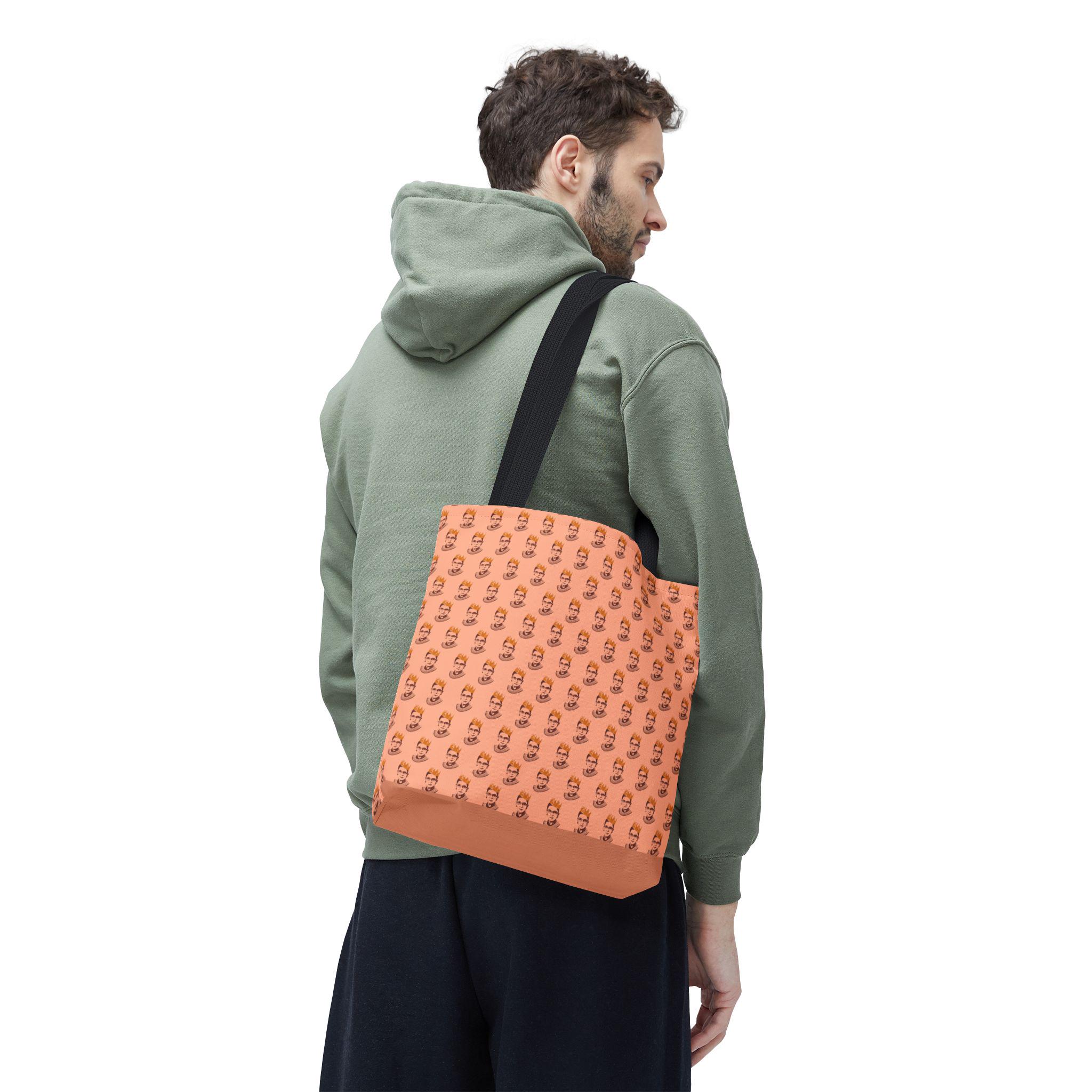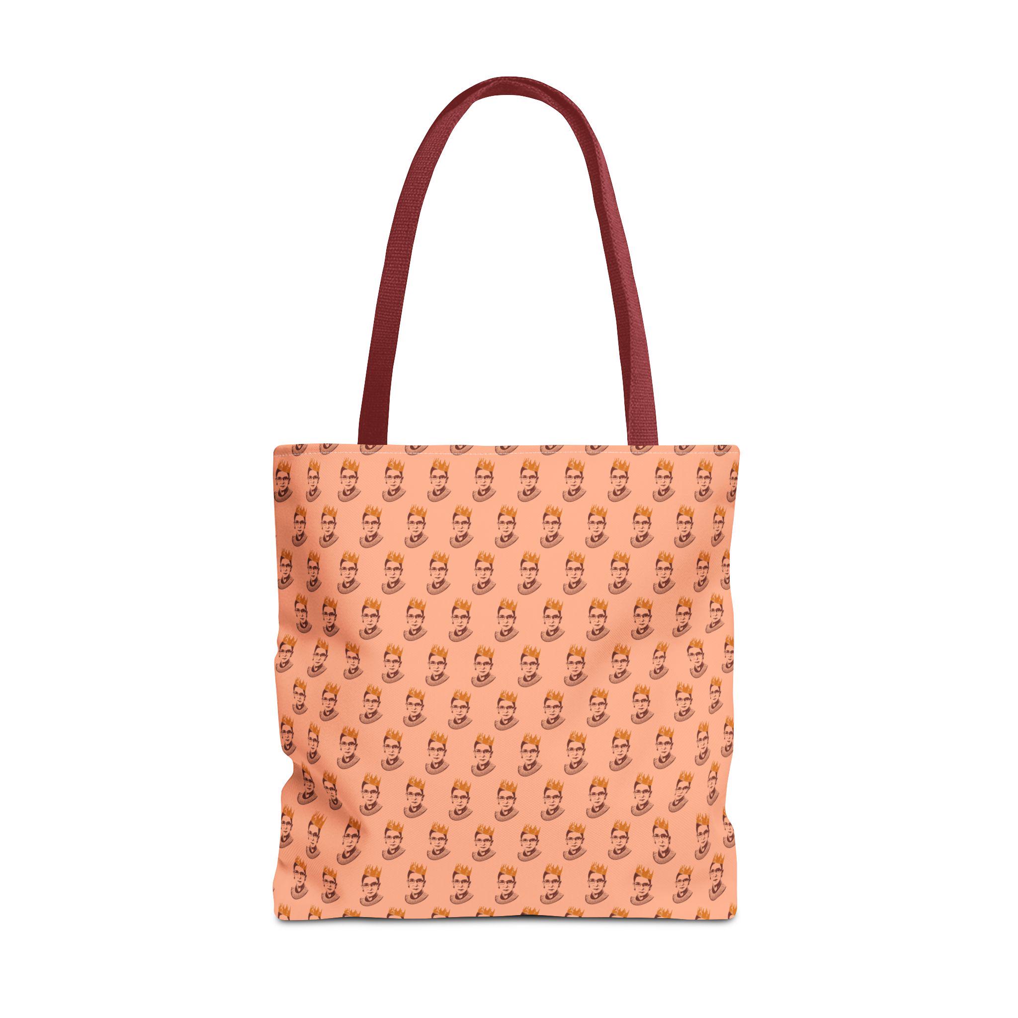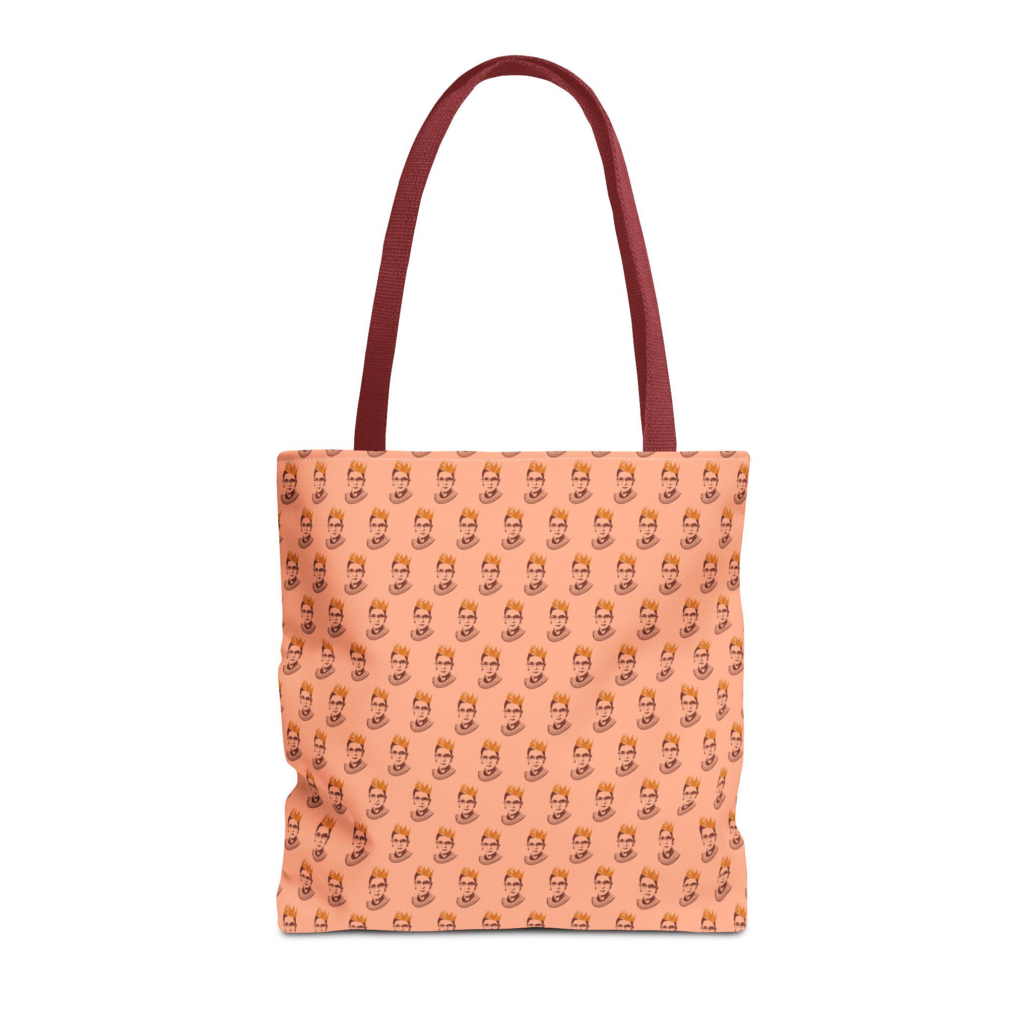 Carry the legacy of a queen. This RBG Crown Tote Bag features a bold portrait of Ruth Bader Ginsburg wearing a crown, honoring her Jewish roots and her iconic Notorious status in one striking design.