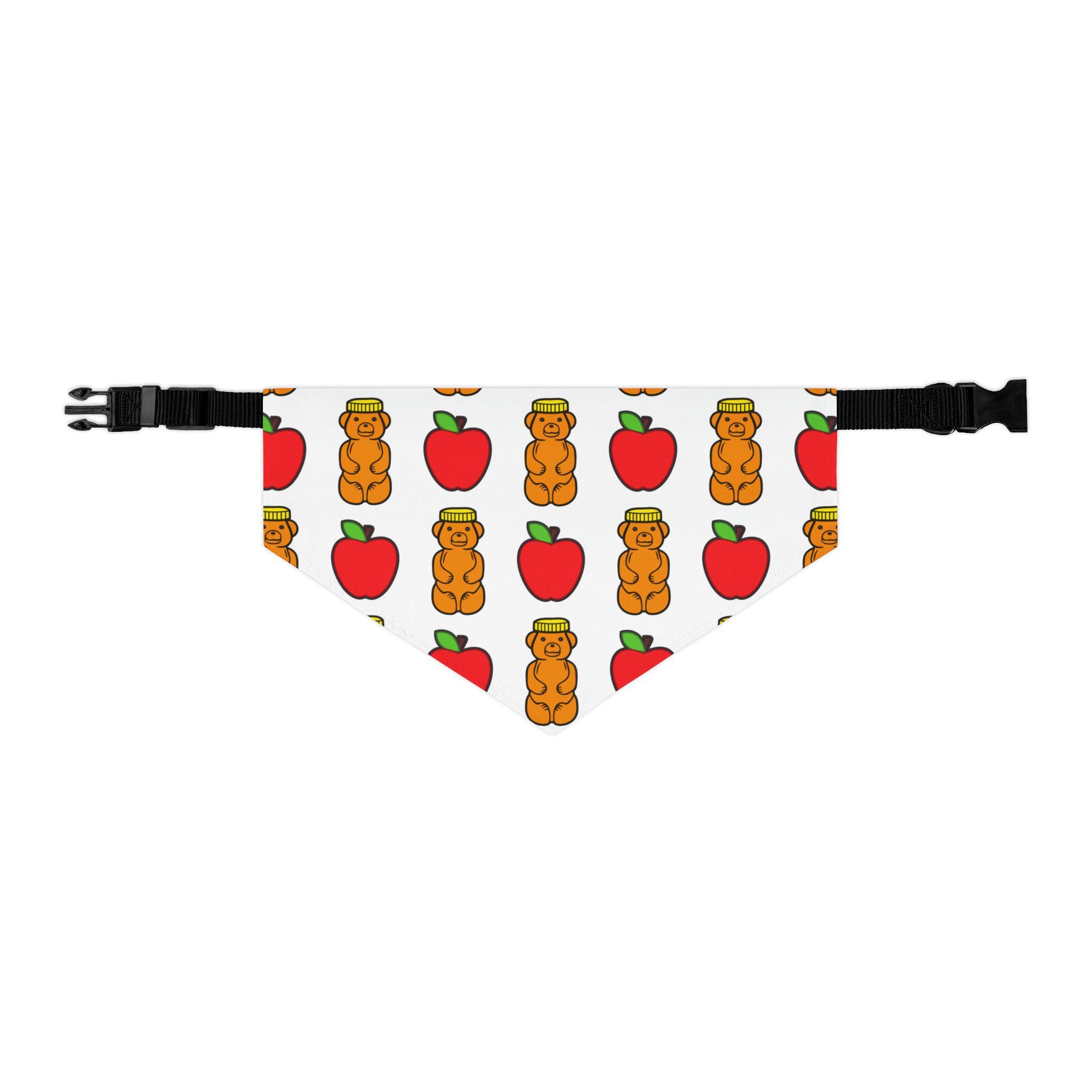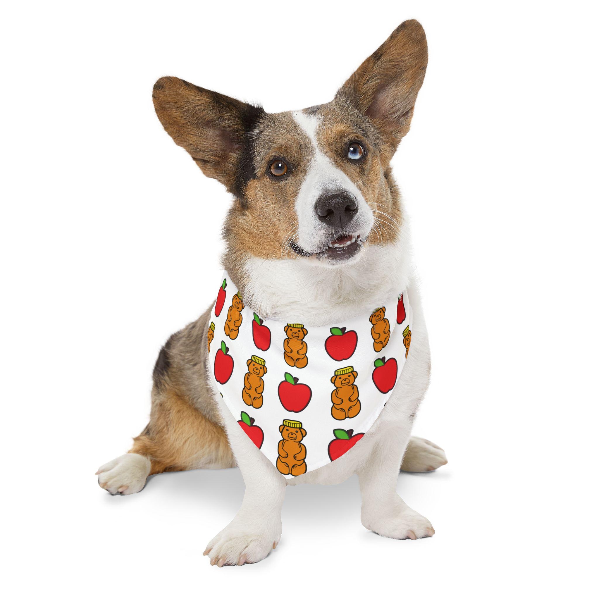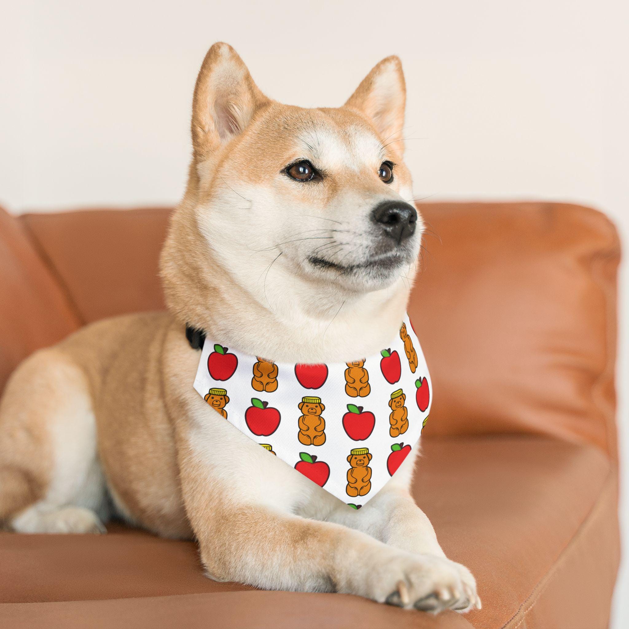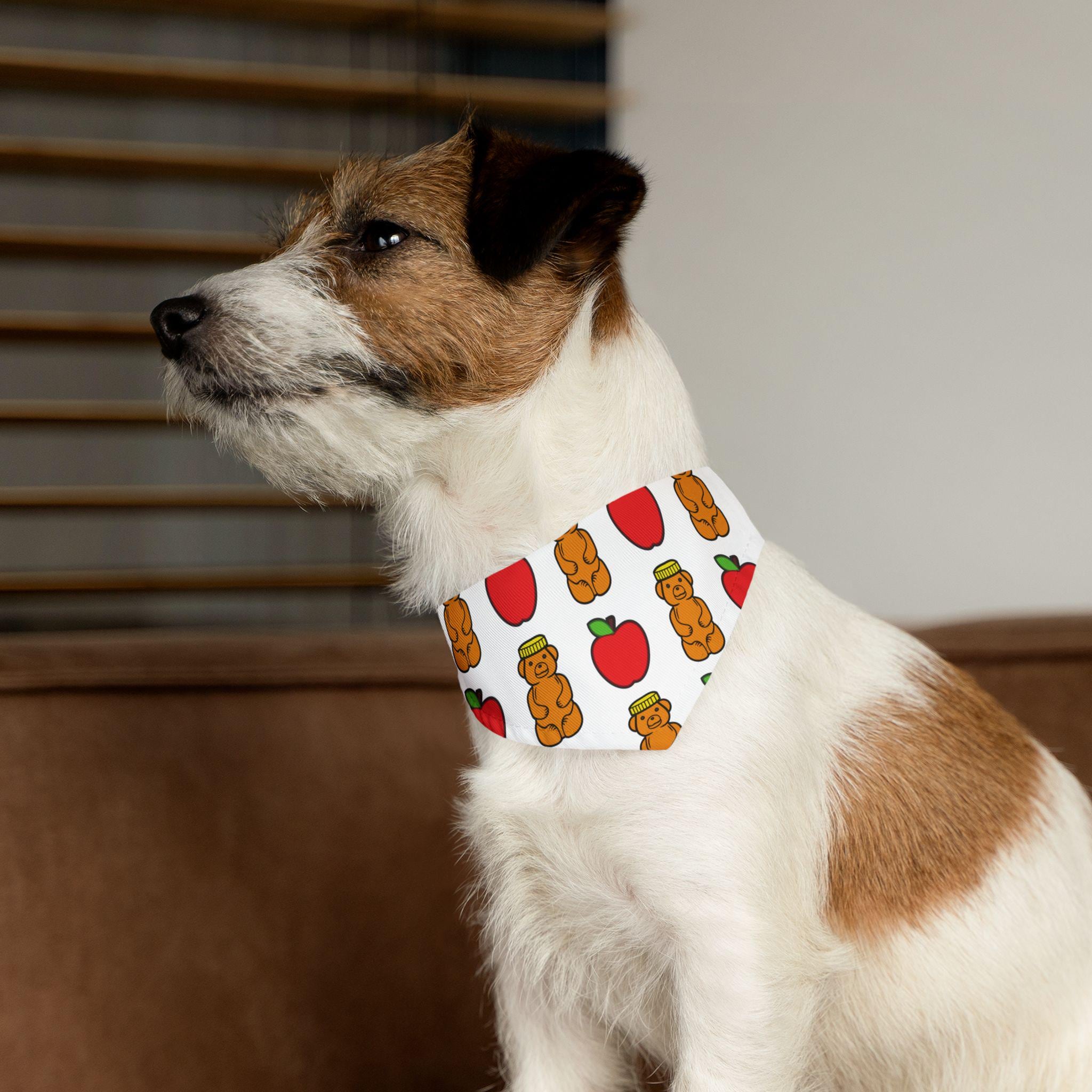 Let your pup celebrate a sweet new year in style. This Rosh Hashanah dog bandana features a charming bear and apple print, a playful nod to apples and honey and the sweetness of the Jewish New Year.