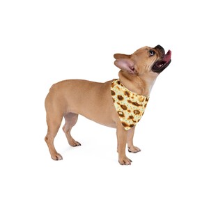 Made from 100% soft and durable polyester, this pet scarf is lightweight, comfortable, and quick drying. The adjustable strap with a secure buckle ensures a snug and comfortable fit, while sewn hemmed edges add durability for long lasting wear. Available in sizes XS through L, it is designed to fit dogs of all sizes, from tiny to tall.