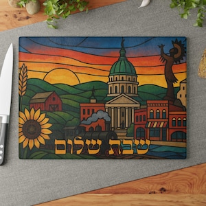Blending Maine’s natural beauty with timeless Judaica, this design is perfect for Jewish families who love the Pine Tree State or cherish coastal living. Whether you're slicing challah on Friday night or displaying it as part of your kitchen decor, this board adds regional pride and meaningful warmth to your home.