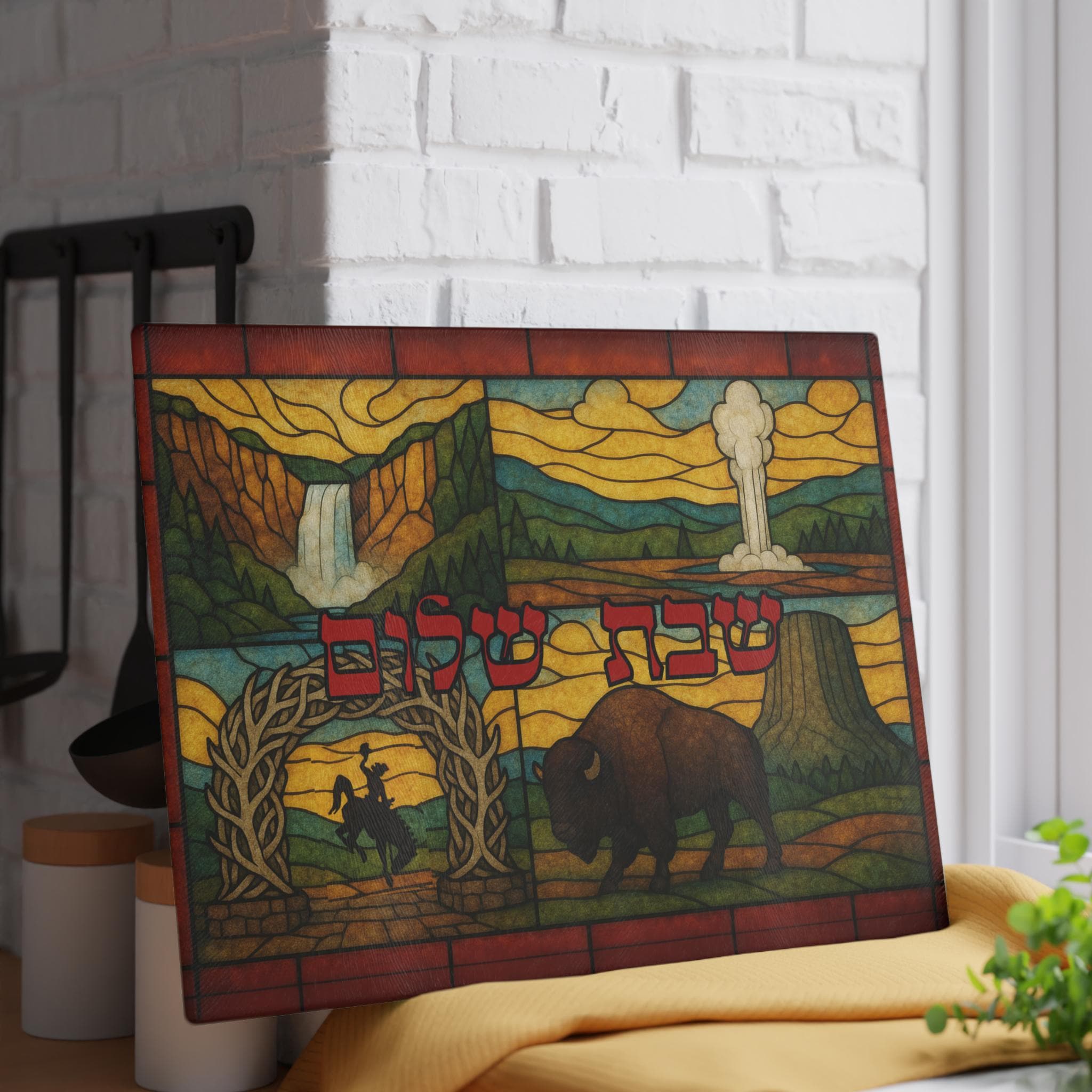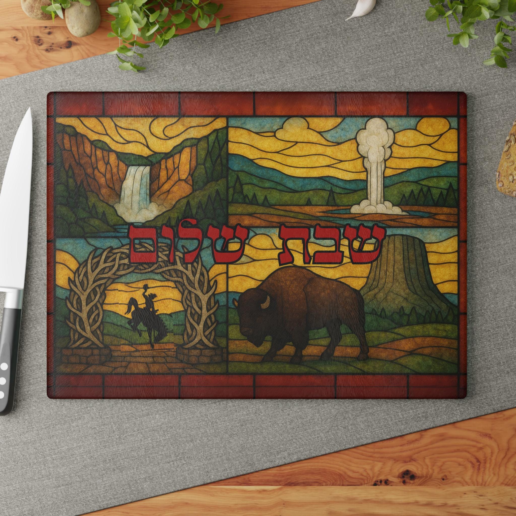 Add this Wyoming stained glass challah board to your cart today and bring Western wonder to your Shabbat table.