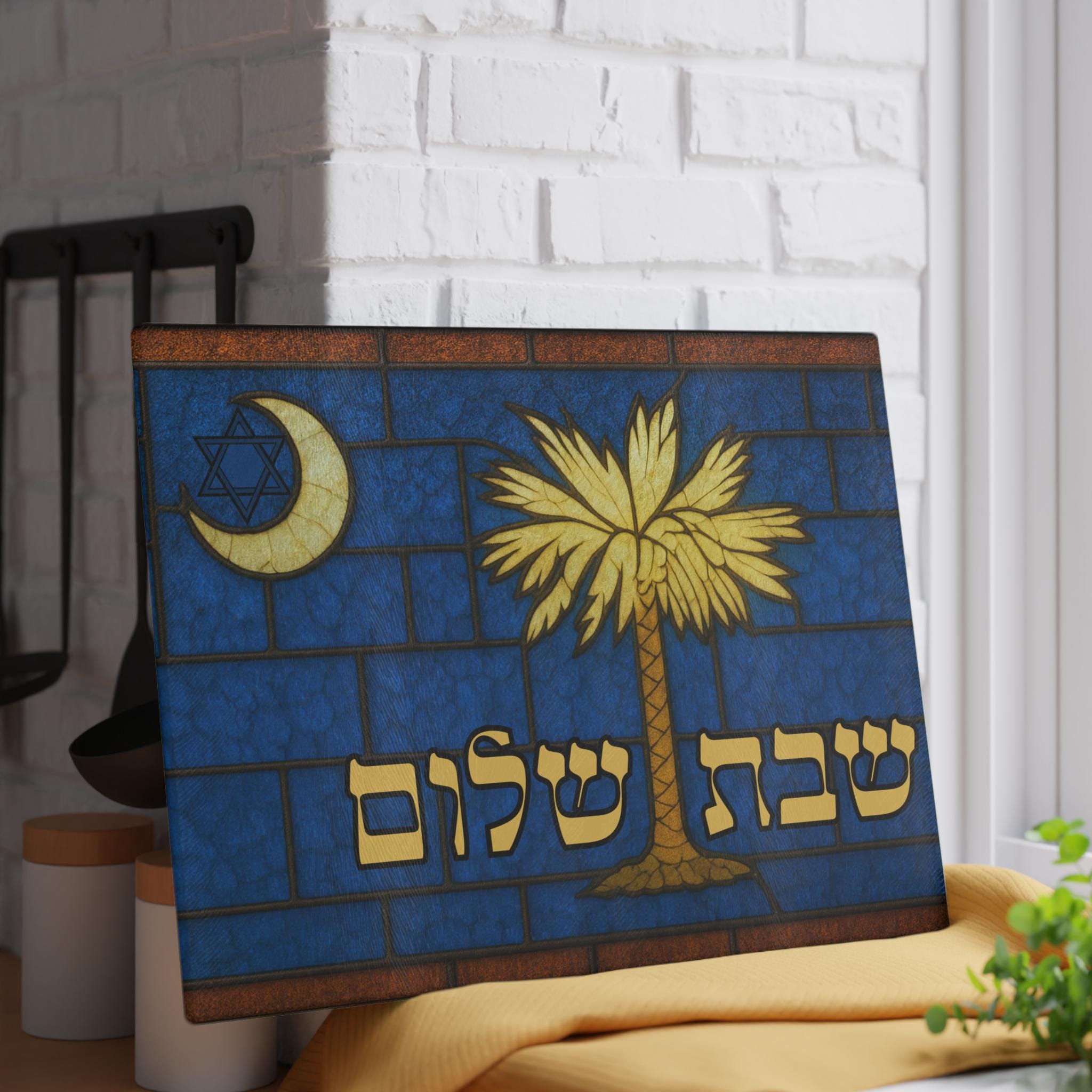 Perfect as a wedding, holiday, or housewarming gift, this board is meaningful for anyone who cherishes South Carolina’s rich heritage and coastal style. It is a beautiful blend of regional pride and Judaica artistry, designed to be both functional and display-worthy.