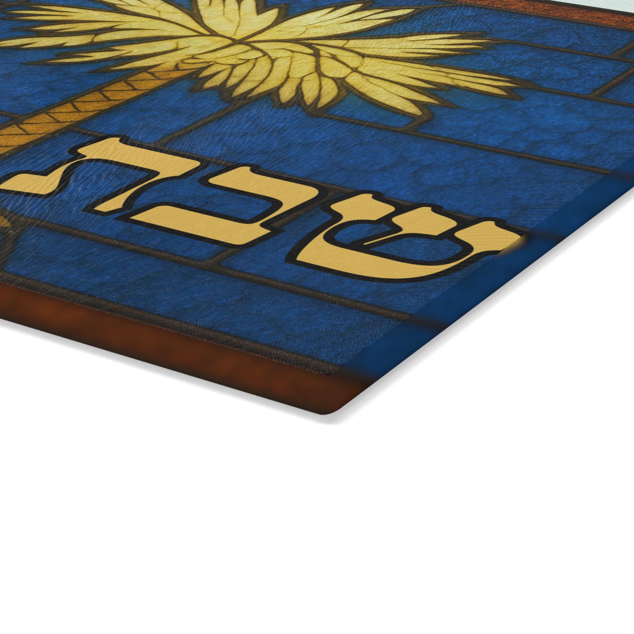 Crafted from durable tempered glass, the surface is heat-resistant and hygienic, making it ideal for serving challah at weekly Shabbat dinners and holiday gatherings. The vivid stained glass design creates a colorful focal point on your table, while four rubber feet provide non-slip stability on your countertop or dining surface.