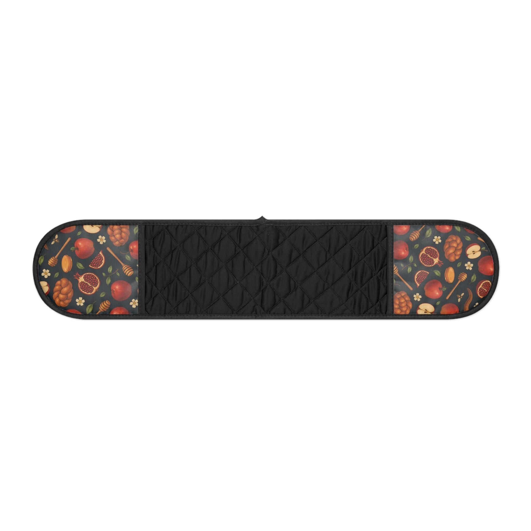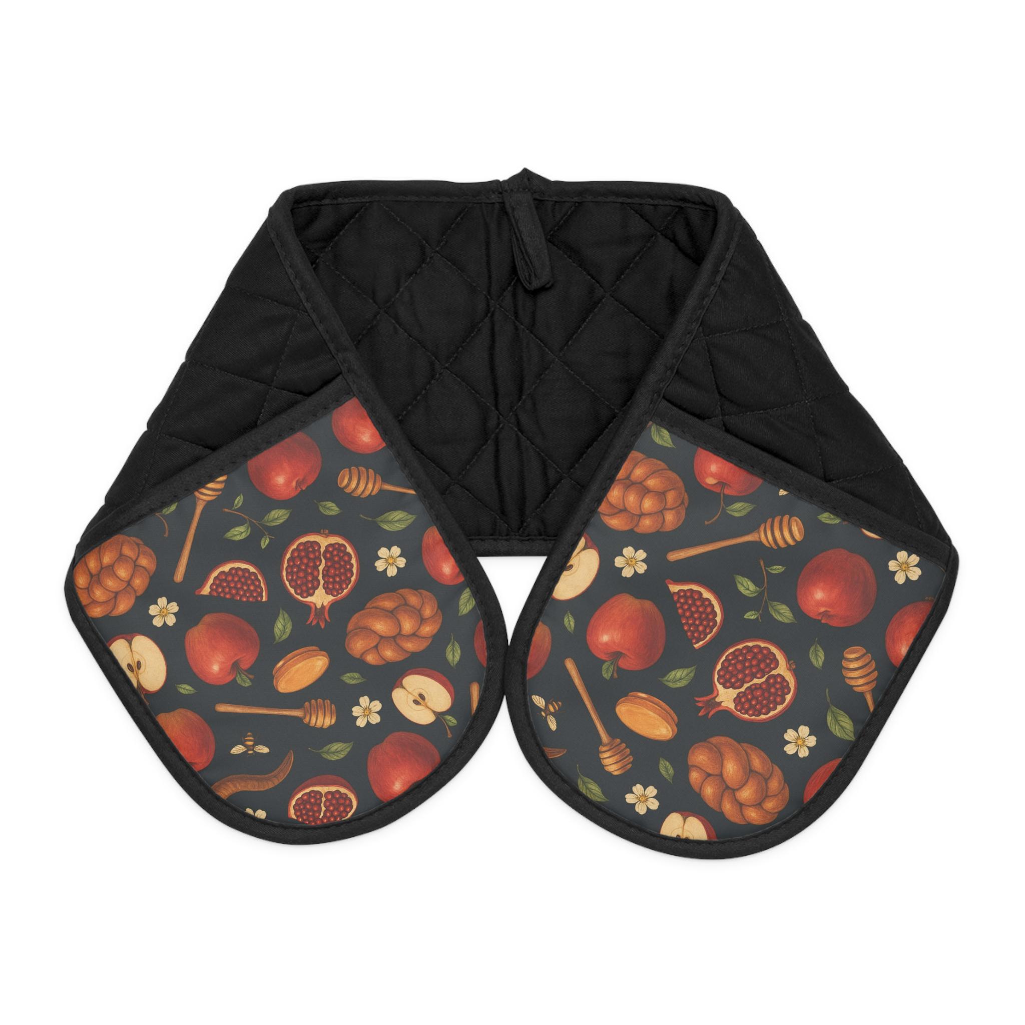 Pair these mitts with the matching table runner and apron for a complete, coordinated Rosh Hashanah kitchen set that feels polished and festive.