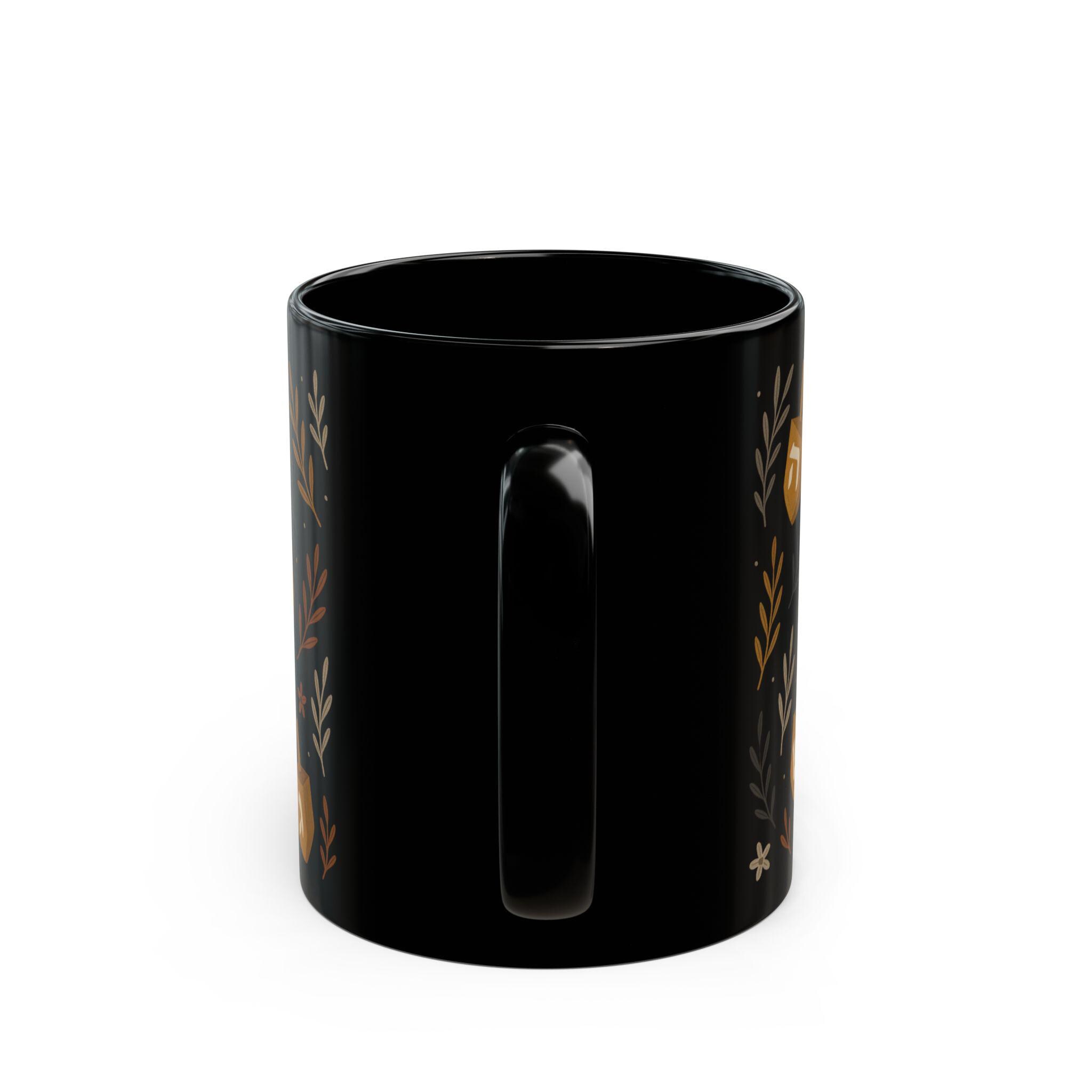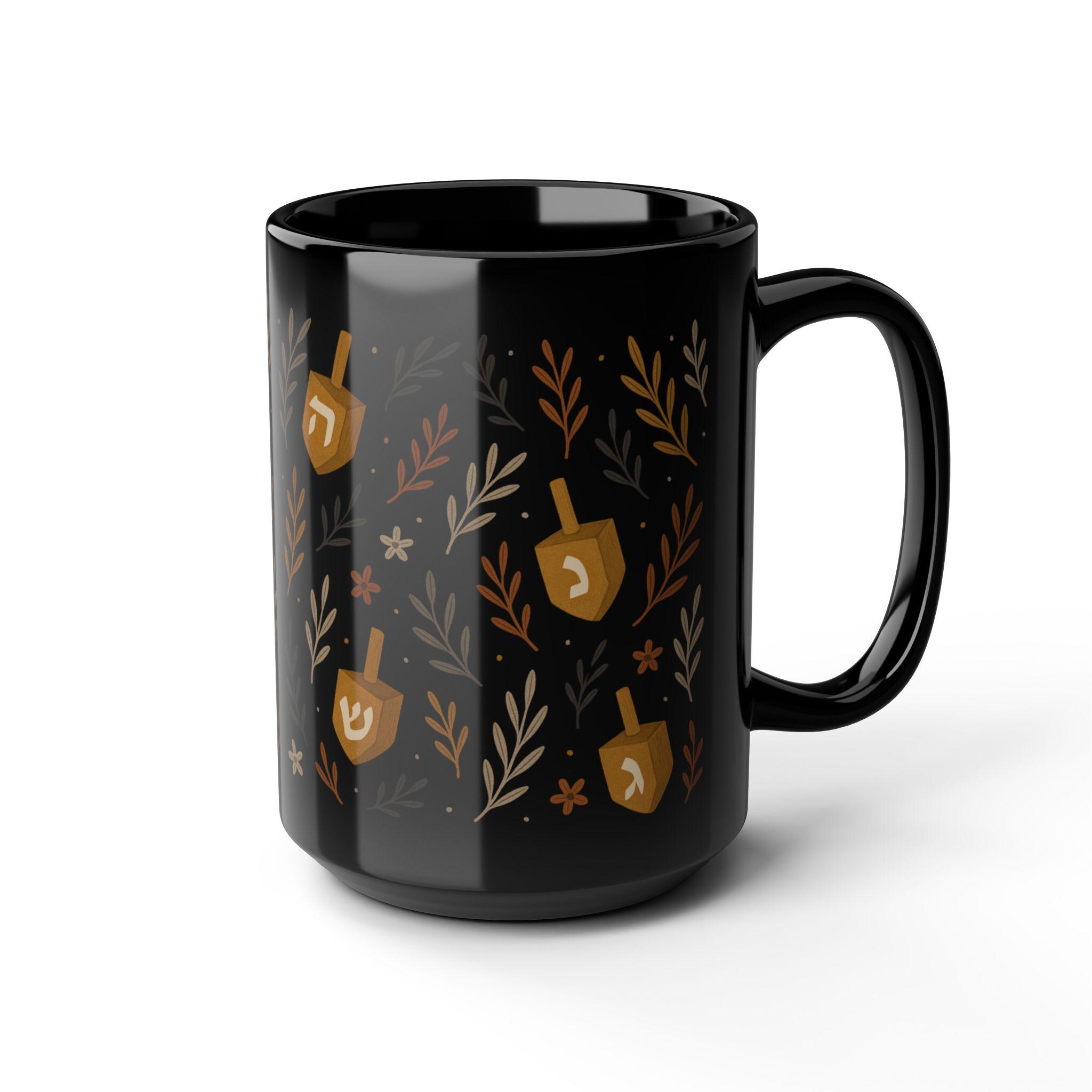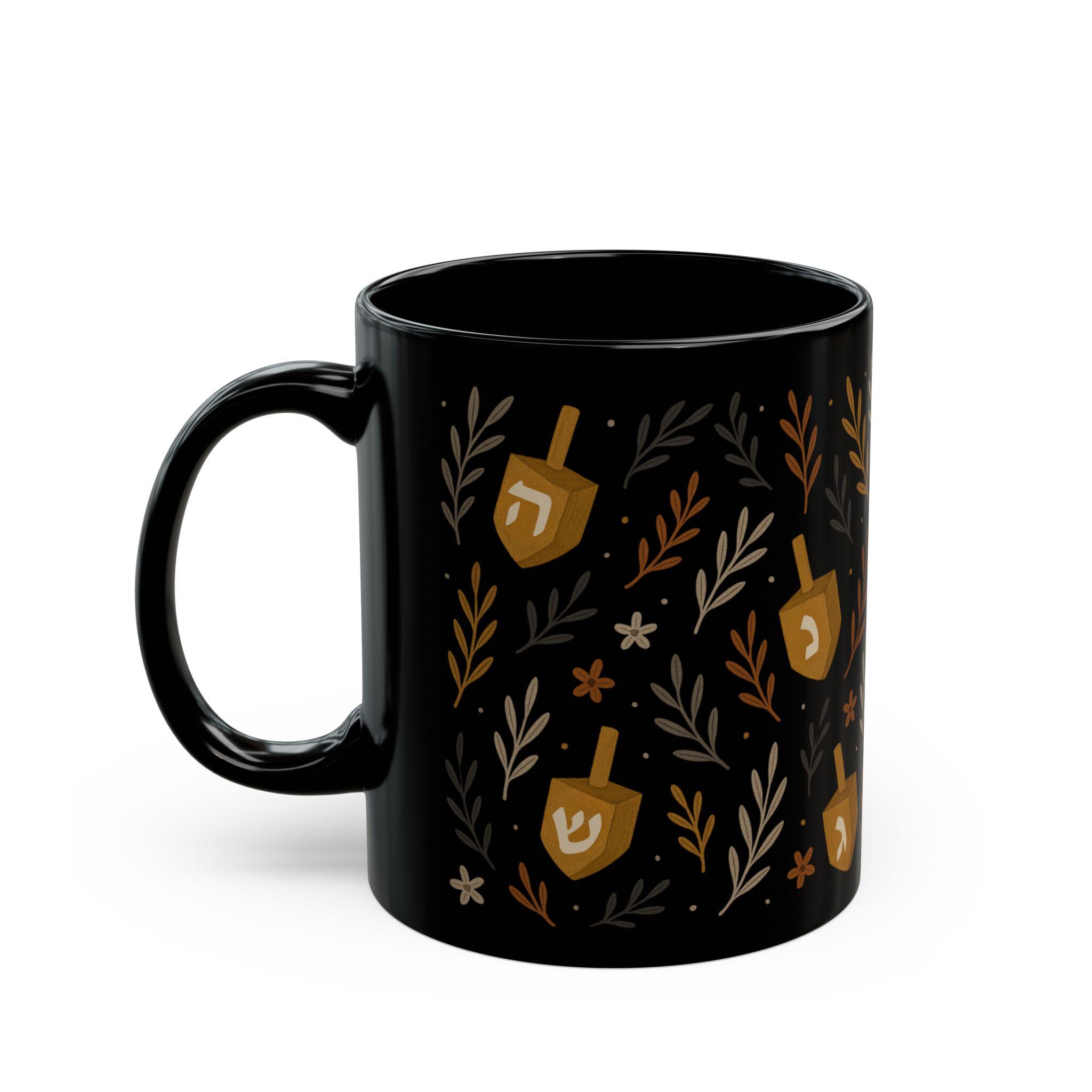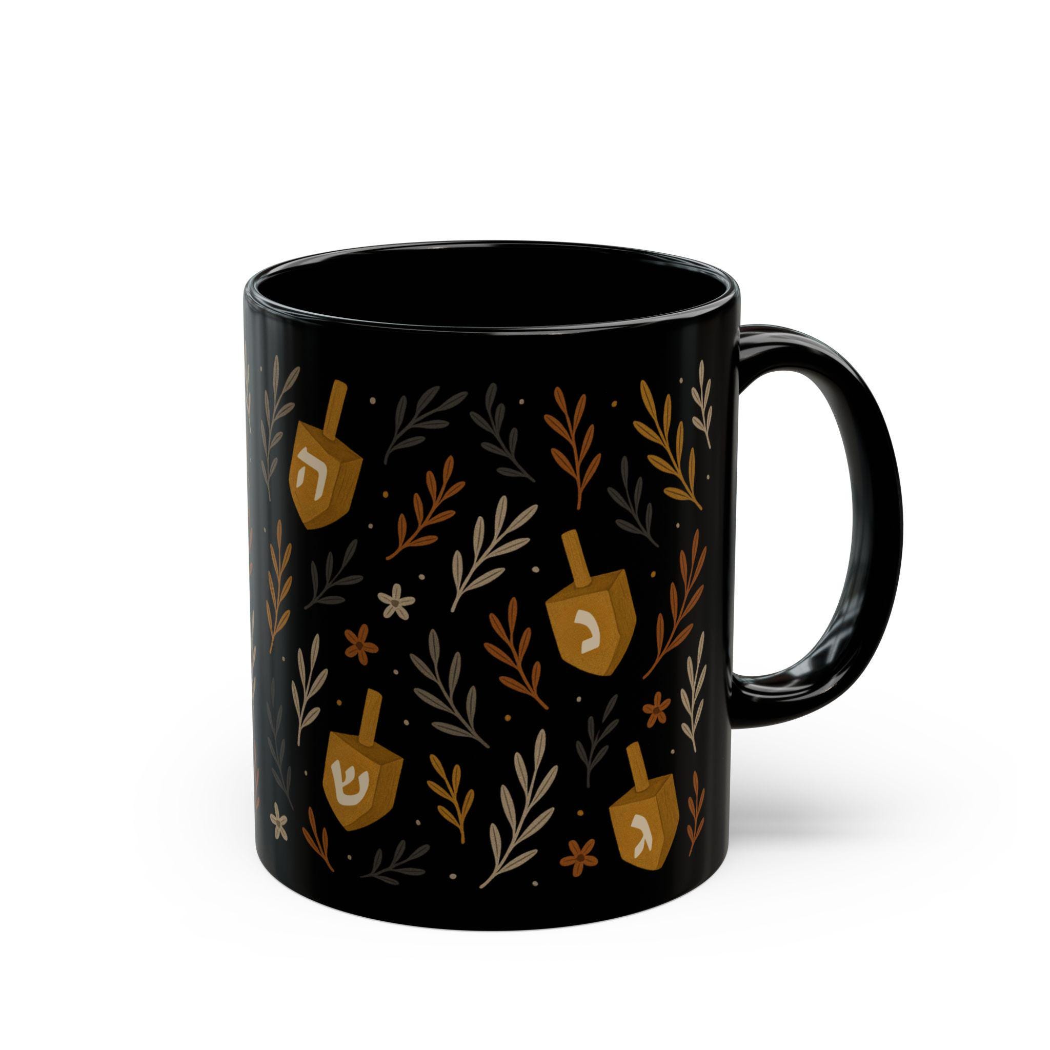 Add warmth and meaning to your daily ritual with this Jewish Dreidel Floral Mug, a beautiful blend of tradition and delicate design. Featuring a dreidel surrounded by soft floral artwork, this black ceramic mug brings Hanukkah spirit and year-round Jewish charm to every sip.