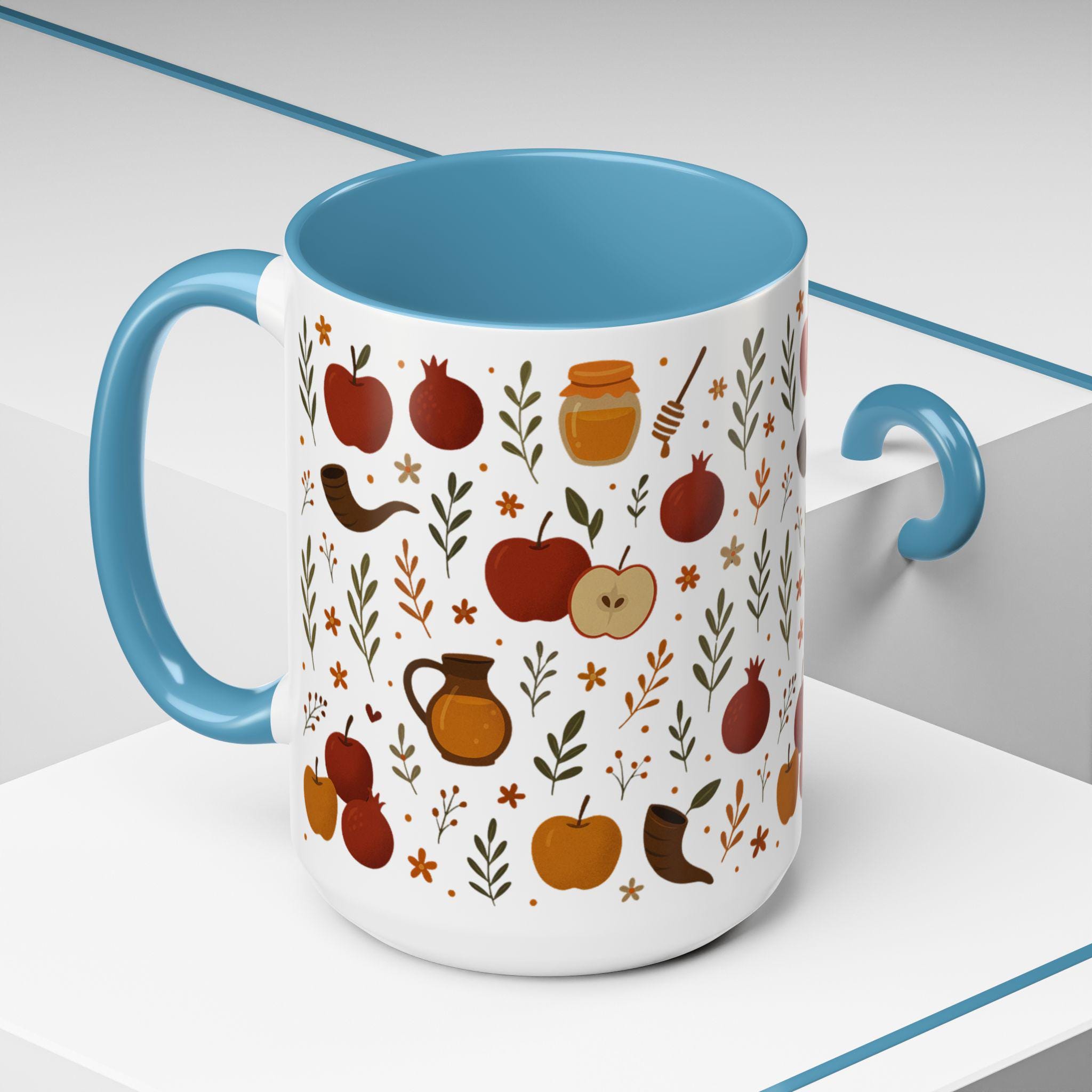 Featuring crisp, colorful artwork designed to celebrate the Jewish New Year, this ceramic mug adds meaning to your daily ritual. Whether you are gathering around the holiday table, hosting a festive meal, or enjoying a quiet reflective moment, it brings joy and intention to every sip.
