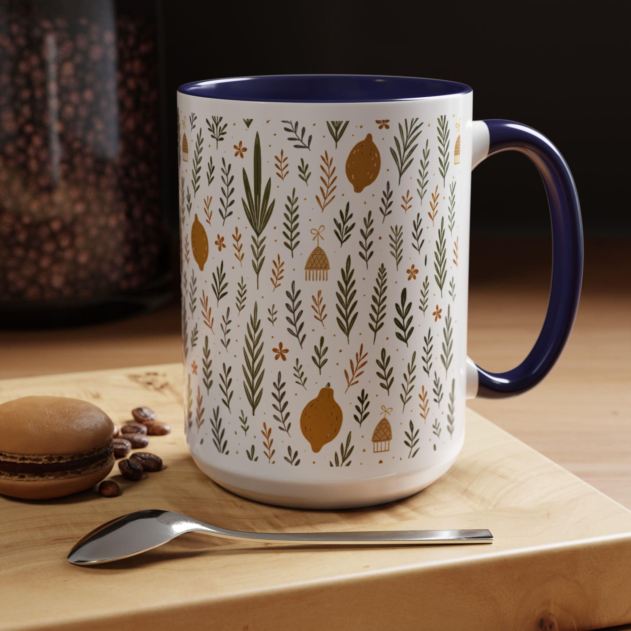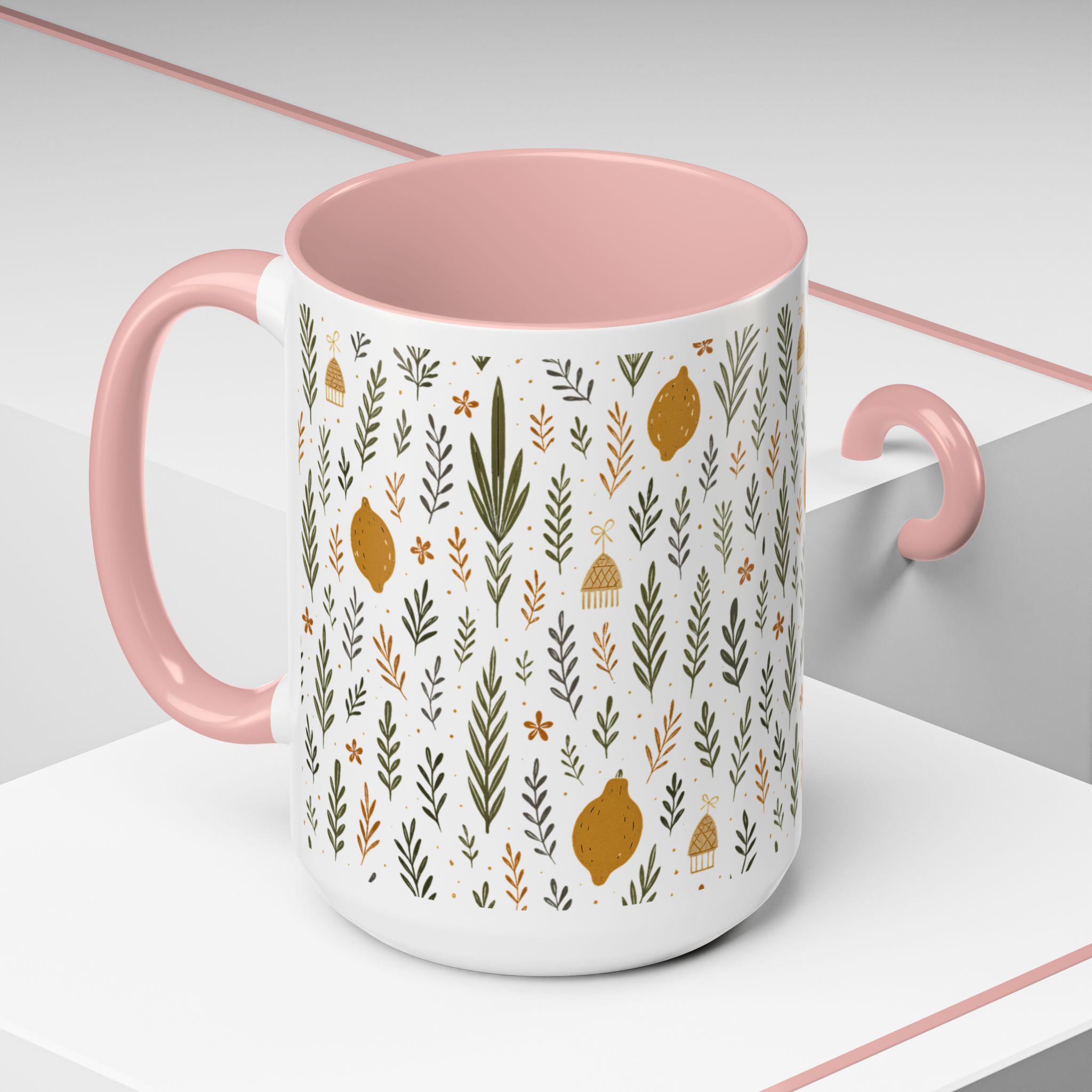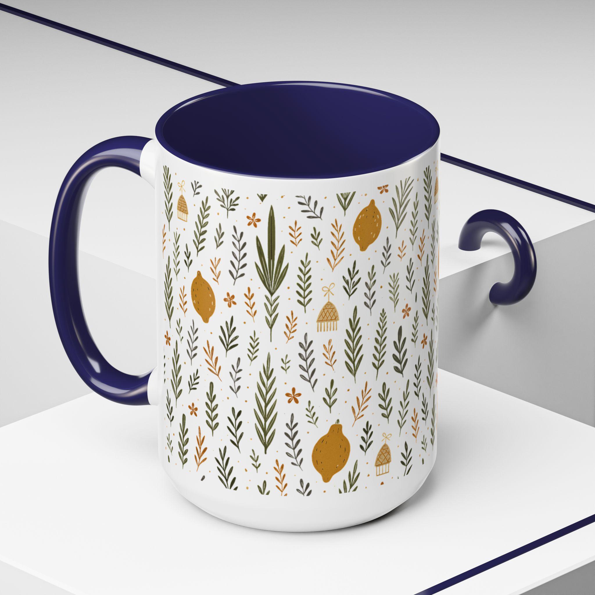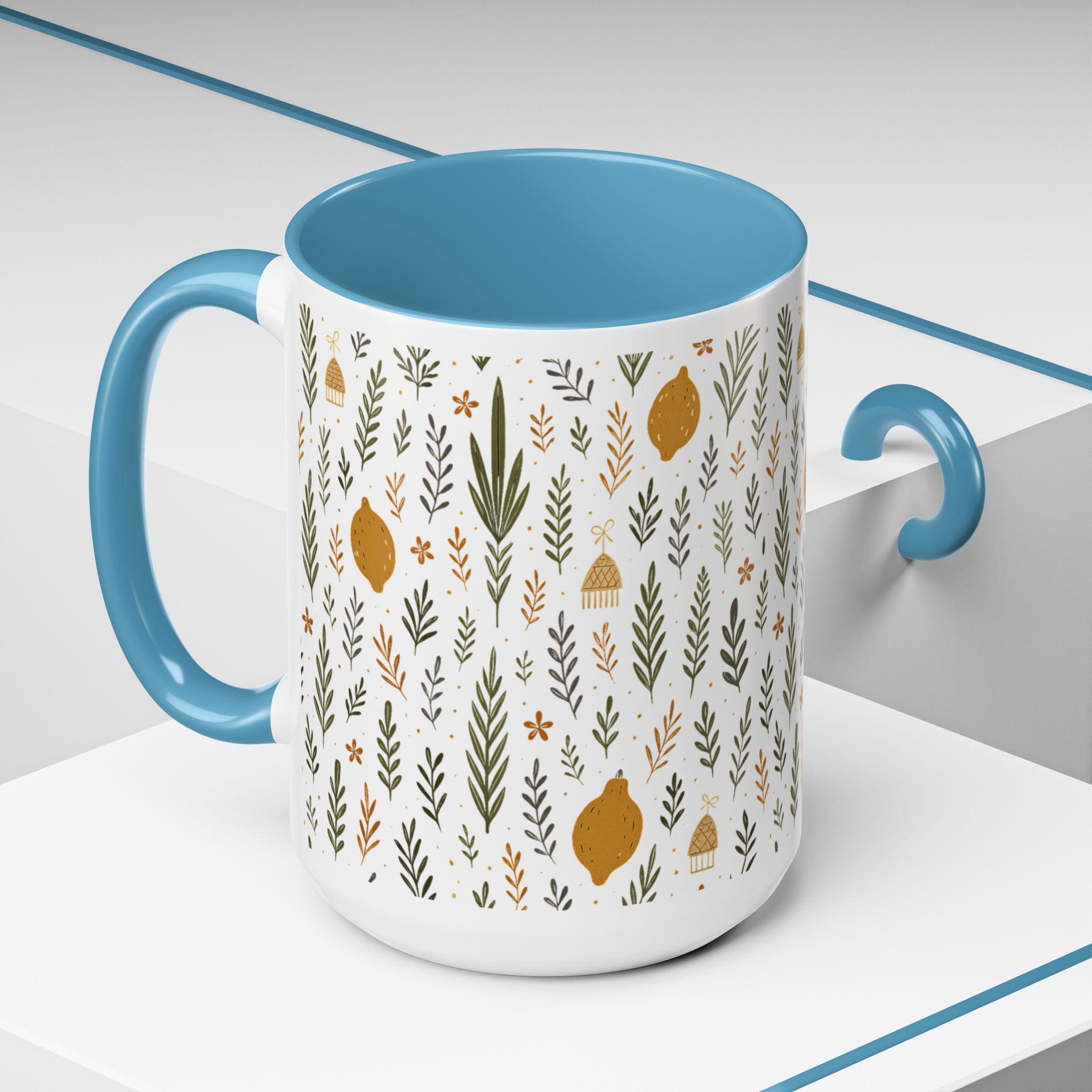 Available in both 11oz and 15oz sizes, it is perfect for coffee, tea, or any warm drink during Sukkot celebrations. The glossy ceramic finish enhances the vibrant design, while the lead and BPA free material ensures safe daily use. It is microwave safe for convenient reheating and dishwasher safe for effortless cleanup.