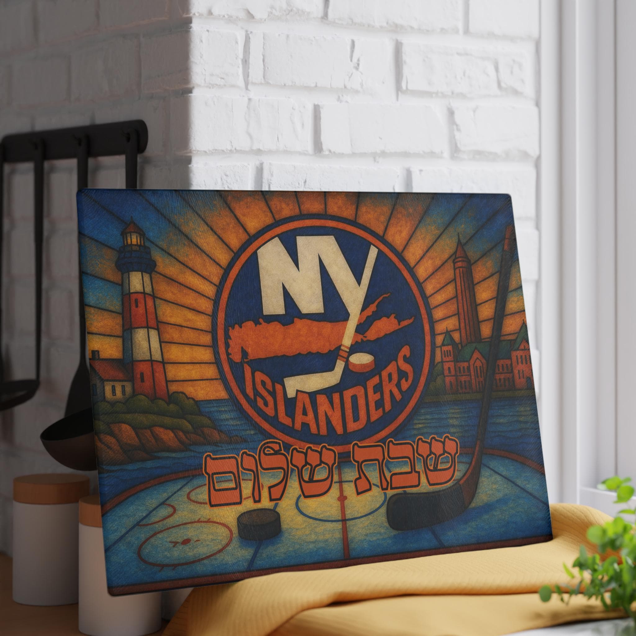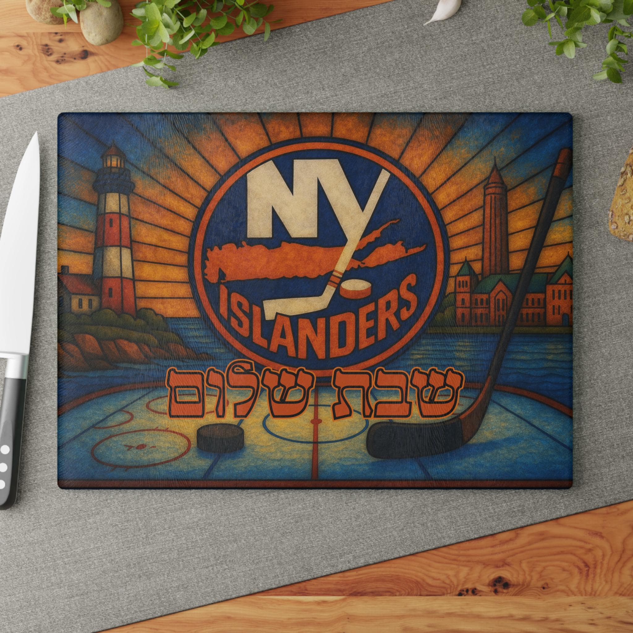 Bring New York Islanders pride to your Shabbat table with this bold stained glass–style challah board, a striking blend of Jewish tradition and NHL hockey fandom. Designed for fans who want meaningful Judaica that reflects their love for the game, this 15×11 inch glass tray makes a standout centerpiece.