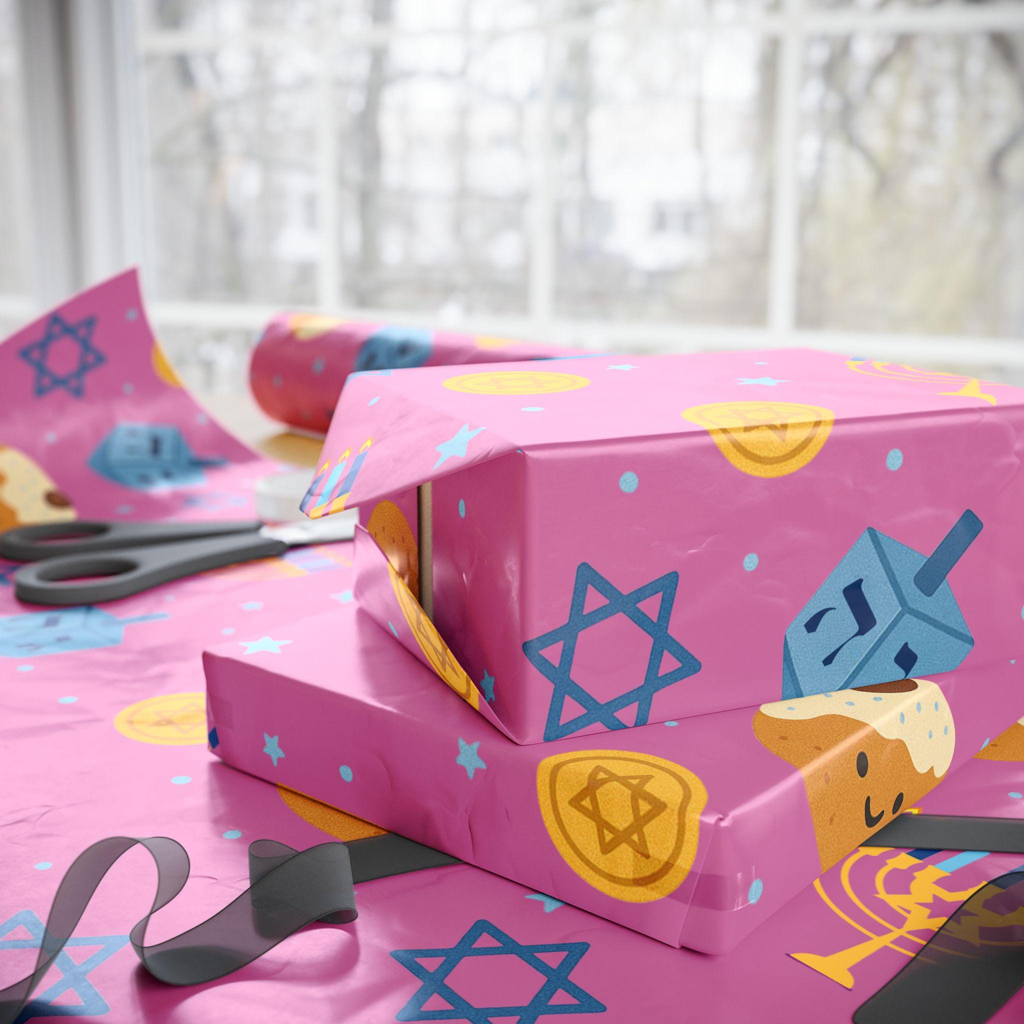 Hanukkah wrapping paper designed to make every Jewish holiday gift feel intentional and beautifully presented. This modern Judaica gift wrap adds artistry and charm before the ribbon is even tied.