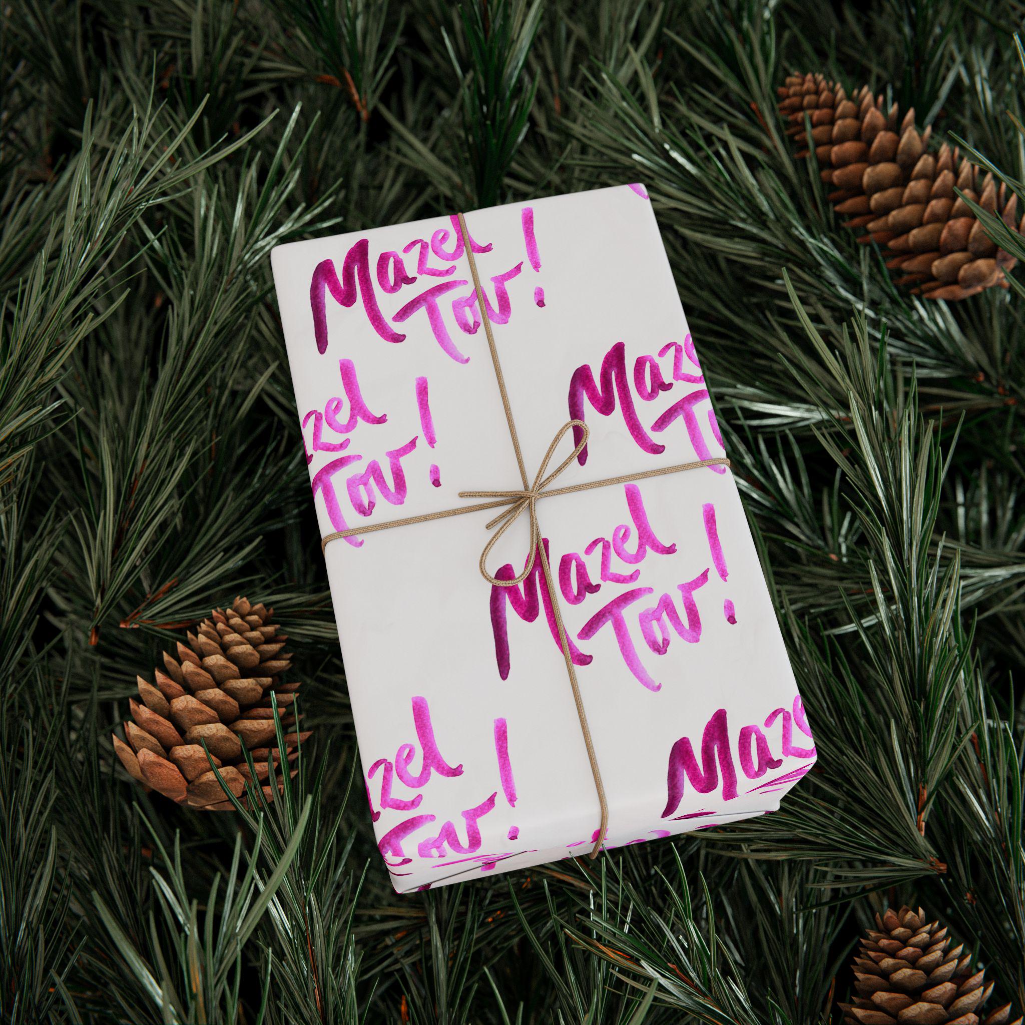 Make every simcha feel even more special with wrapping that reflects the joy of the occasion. Add this white and pink Mazel Tov gift wrap to your cart and be ready for your next celebration.