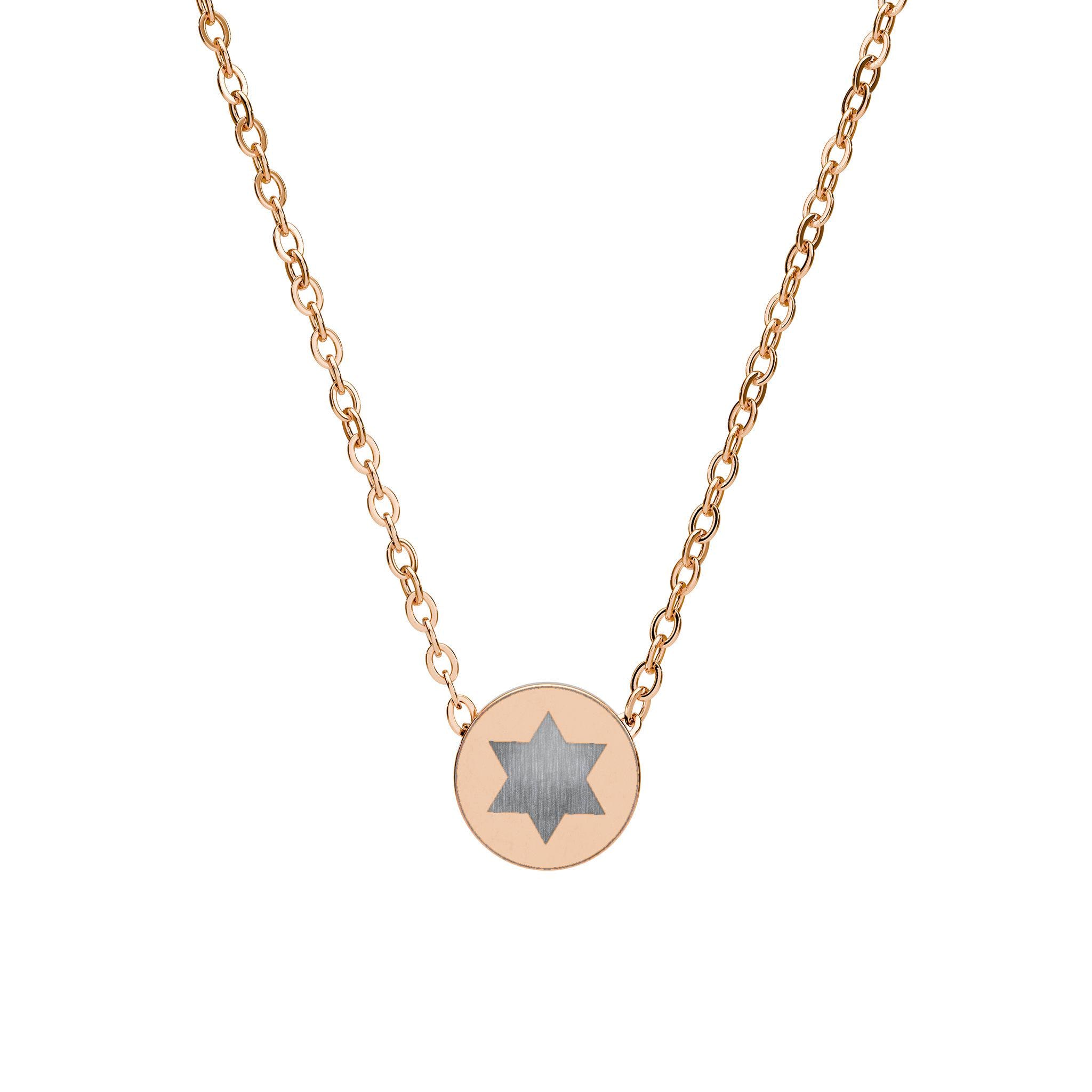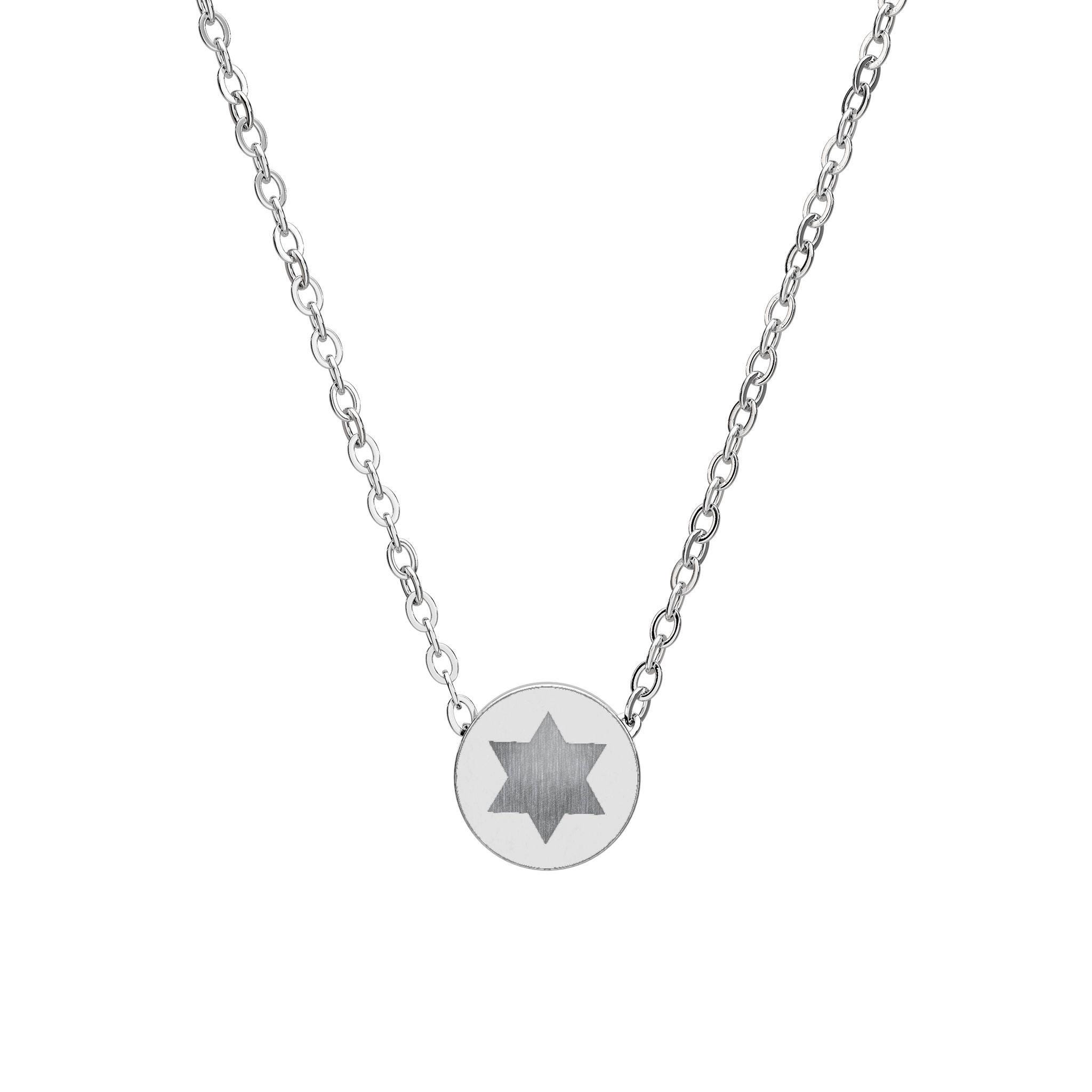 This mini circle necklace offers clean lines and subtle sophistication, making it perfect for daily wear or special occasions. The engraved Star of David design adds spiritual meaning without overpowering your look, allowing you to express Jewish pride in a modern, understated way. Whether worn alone or layered, it complements both casual outfits and dressier styles effortlessly.