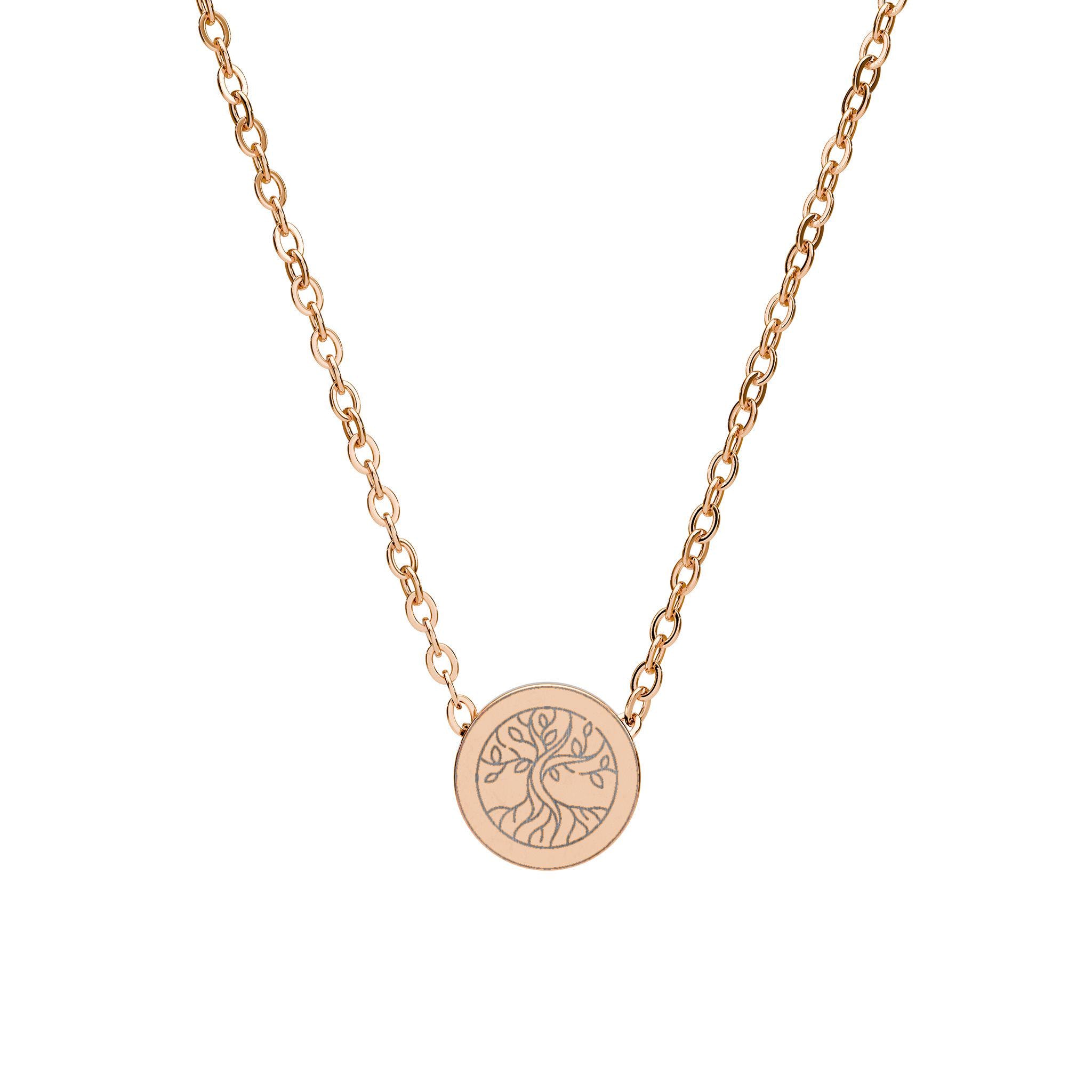 Tree of Life Shema Israel Necklace featuring meaningful Hebrew symbolism in a refined mini circle design. This engraved stainless steel Judaica necklace blends faith, heritage, and minimalist elegance into one timeless piece.