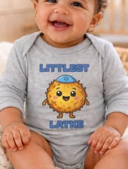 Dress your little latke in something that feels joyful, cozy, and unmistakably Hanukkah. Add it to your cart today and get ready for the glow of the candles.