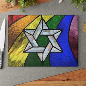 Crafted from durable tempered glass, this challah board functions as both a cutting surface and serving tray. The Blue Jays–inspired artwork is permanently printed using a specialized decoration process that will not scratch during normal use, ensuring bright color and long-lasting durability. The hygienic glass surface is more sanitary than wood or plastic, making it ideal for slicing challah and serving holiday treats.
