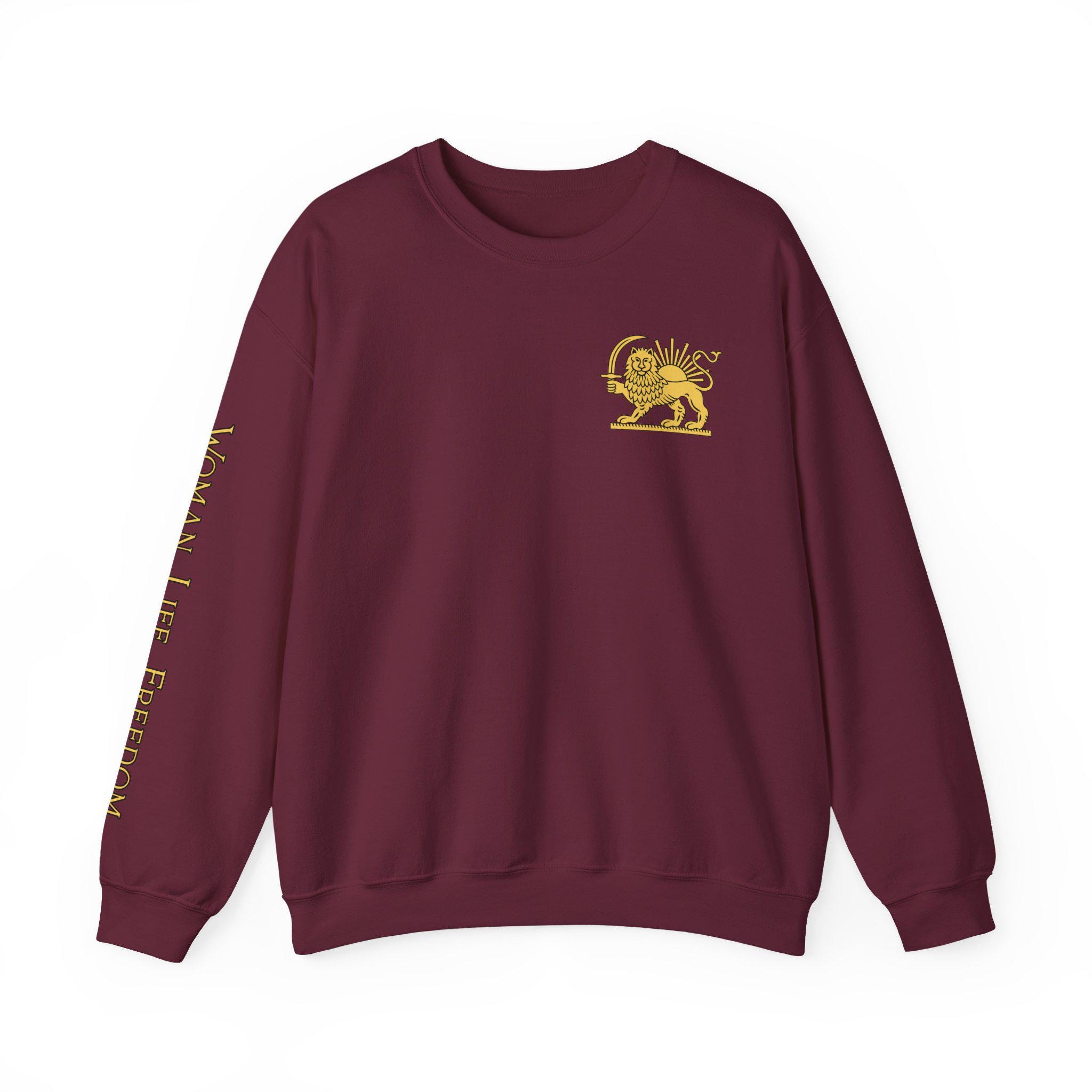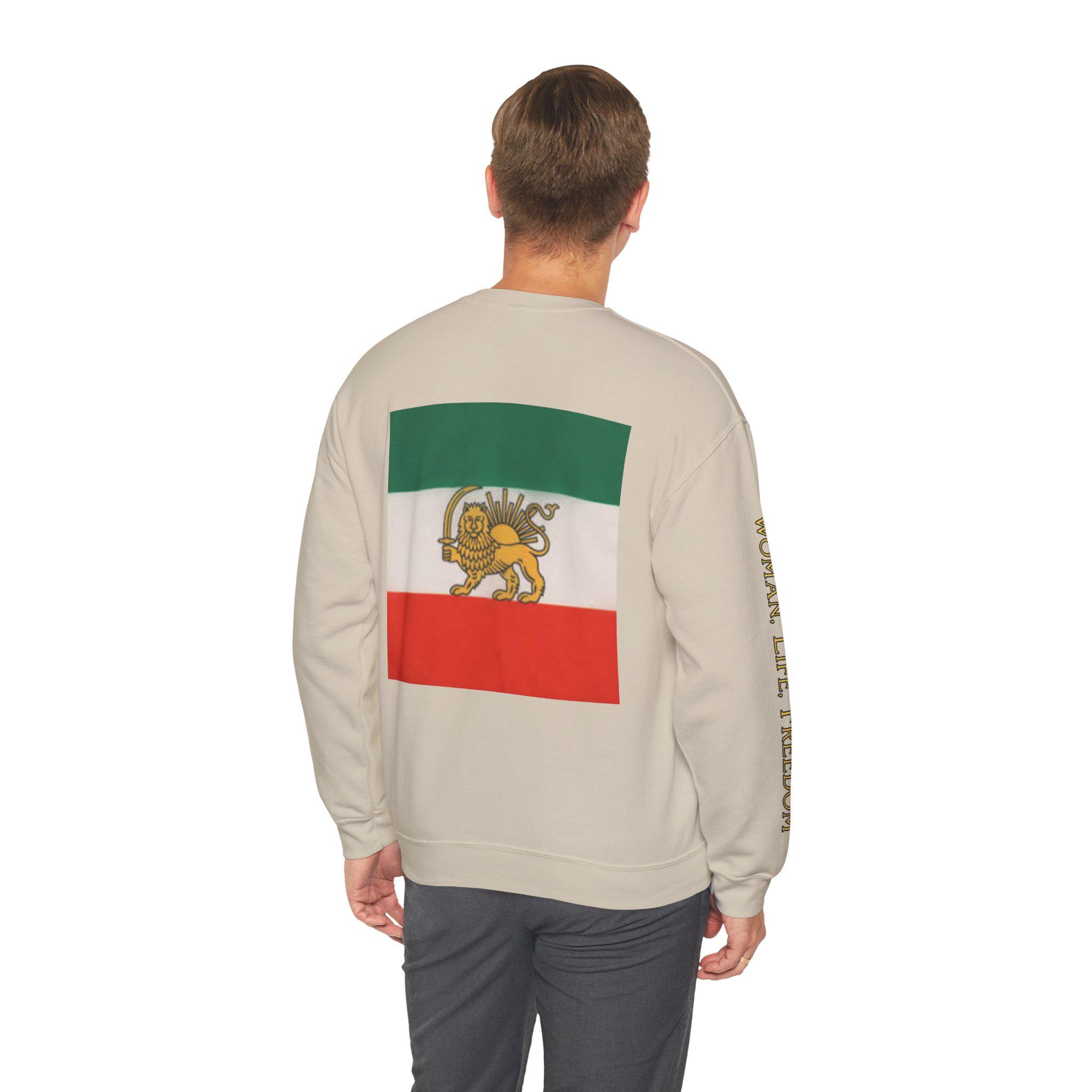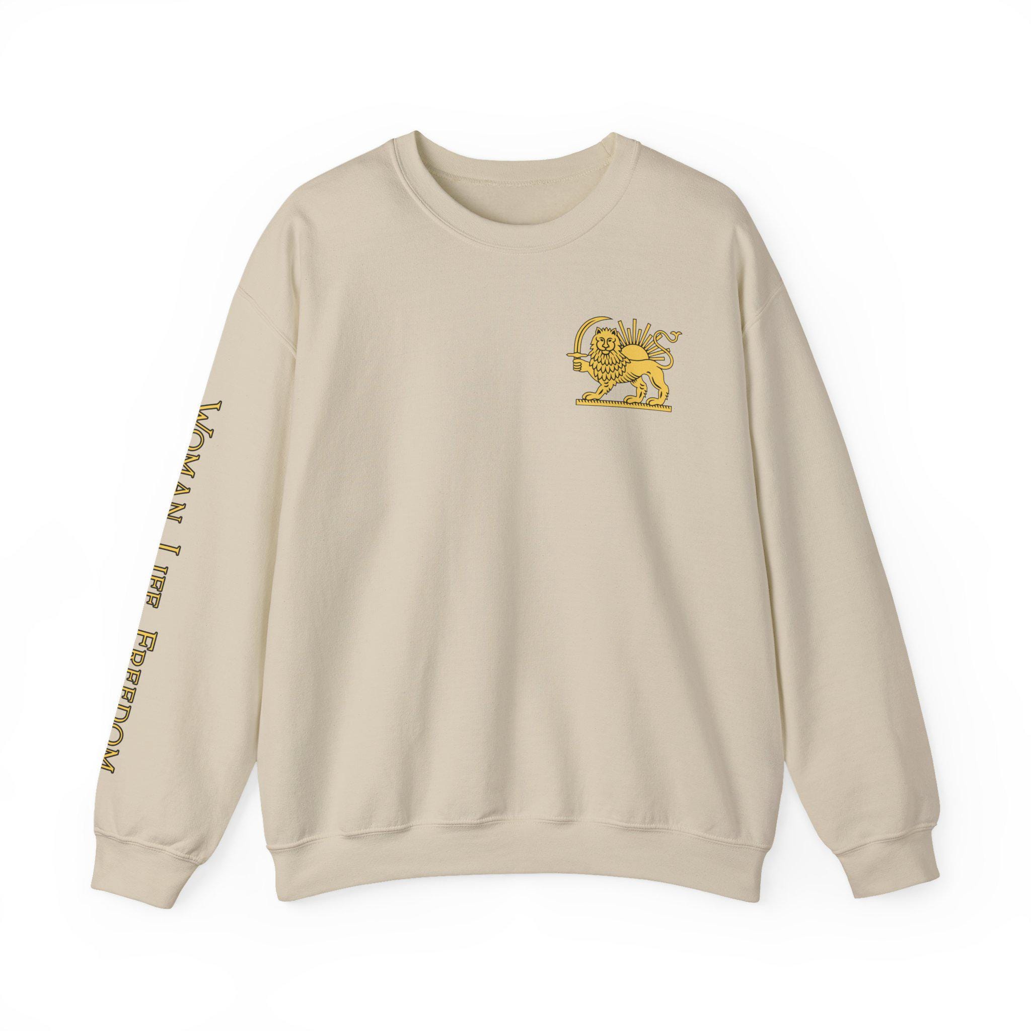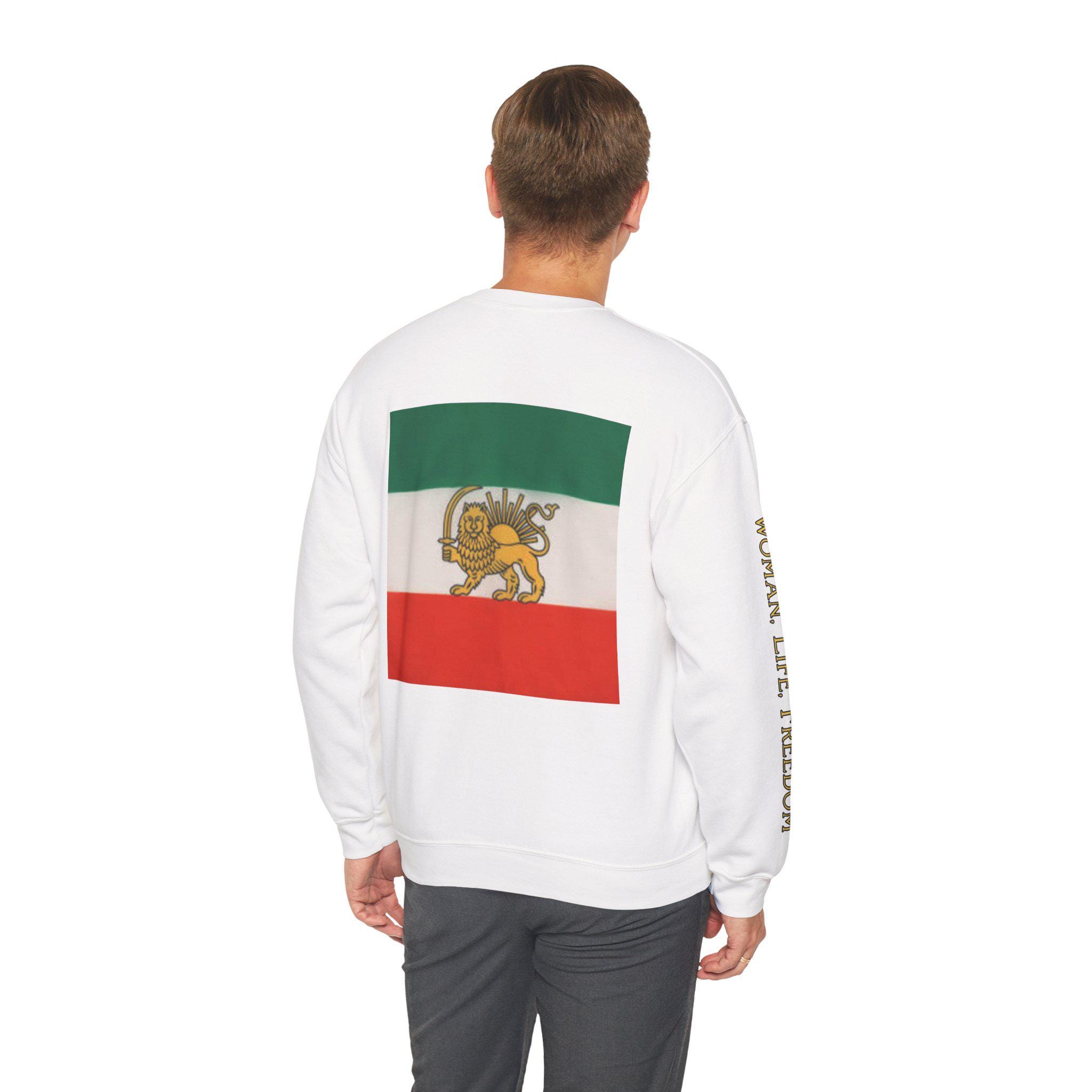 Soft, roomy, and quietly bold, this Lion of Persia crewneck features a heritage-inspired emblem set against a clean white canvas. The vintage-style green, white, and red tricolor block frames the regal lion motif at center chest, creating an understated yet powerful statement that moves seamlessly from everyday errands to meaningful gatherings.