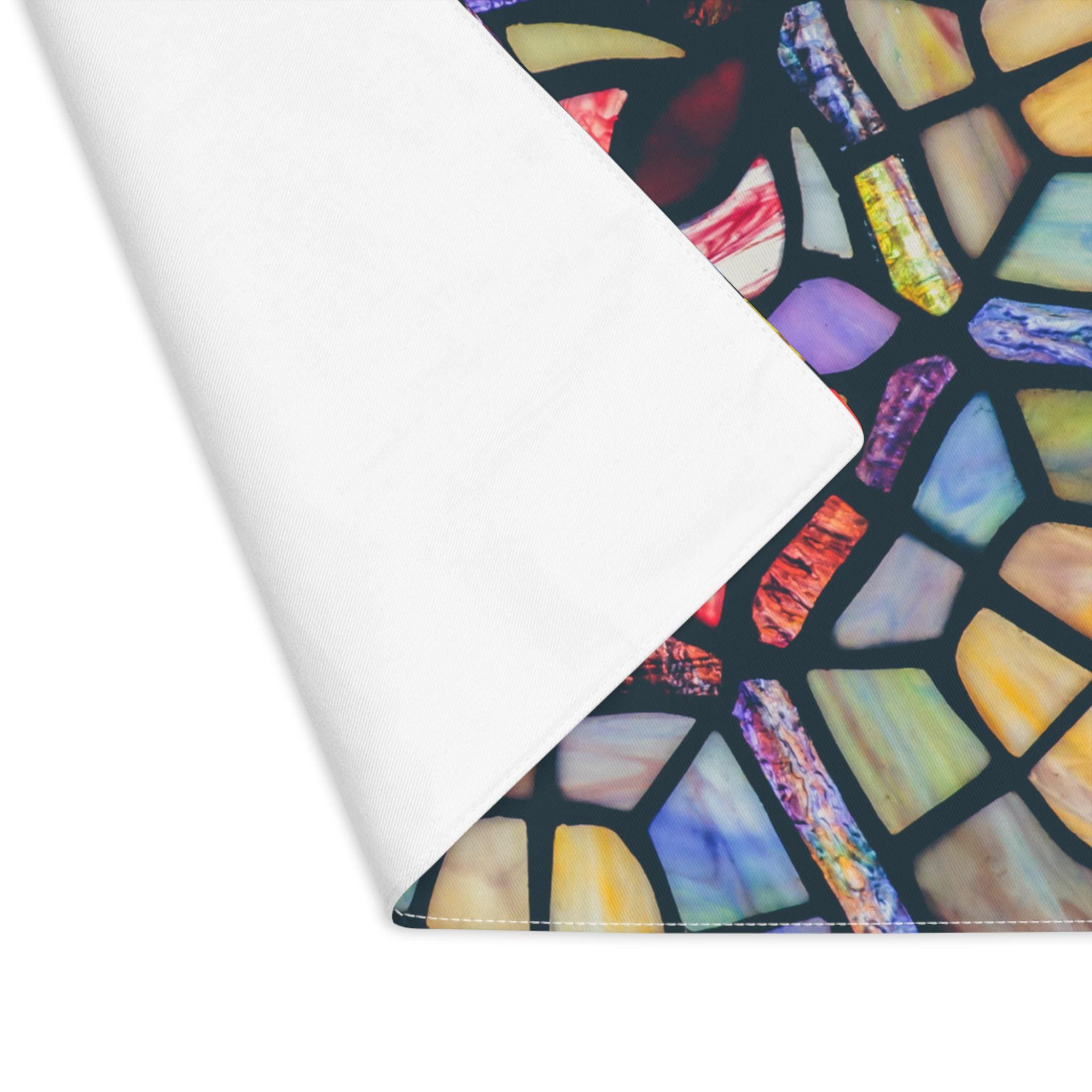 Bring a quiet, reverent warmth to your Shabbat table with this fabric challah cover, designed to feel like stained glass translated into cotton.