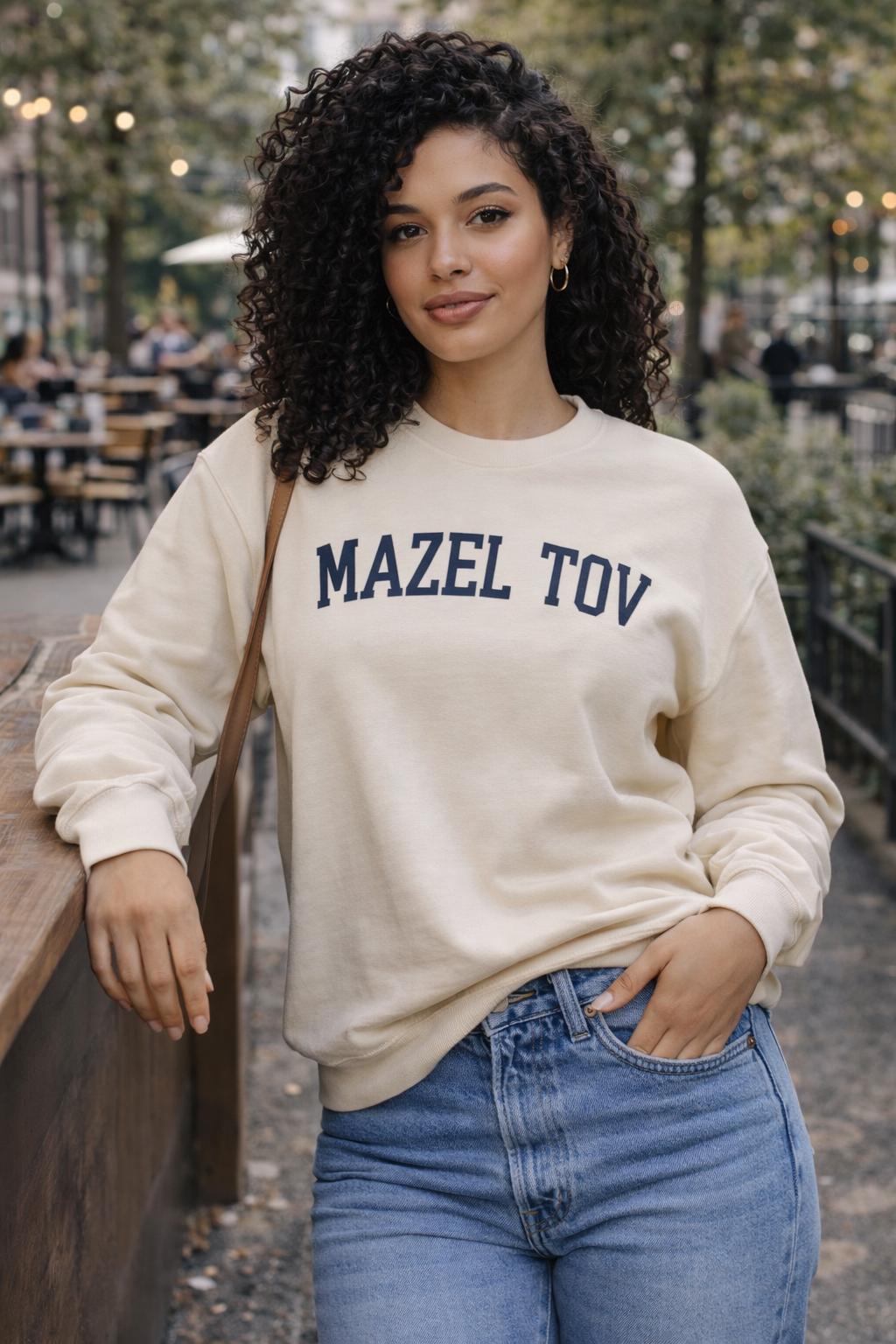 Mazel Tov sweatshirt — a cozy Jewish celebration crewneck that carries congratulations with warmth and quiet pride.