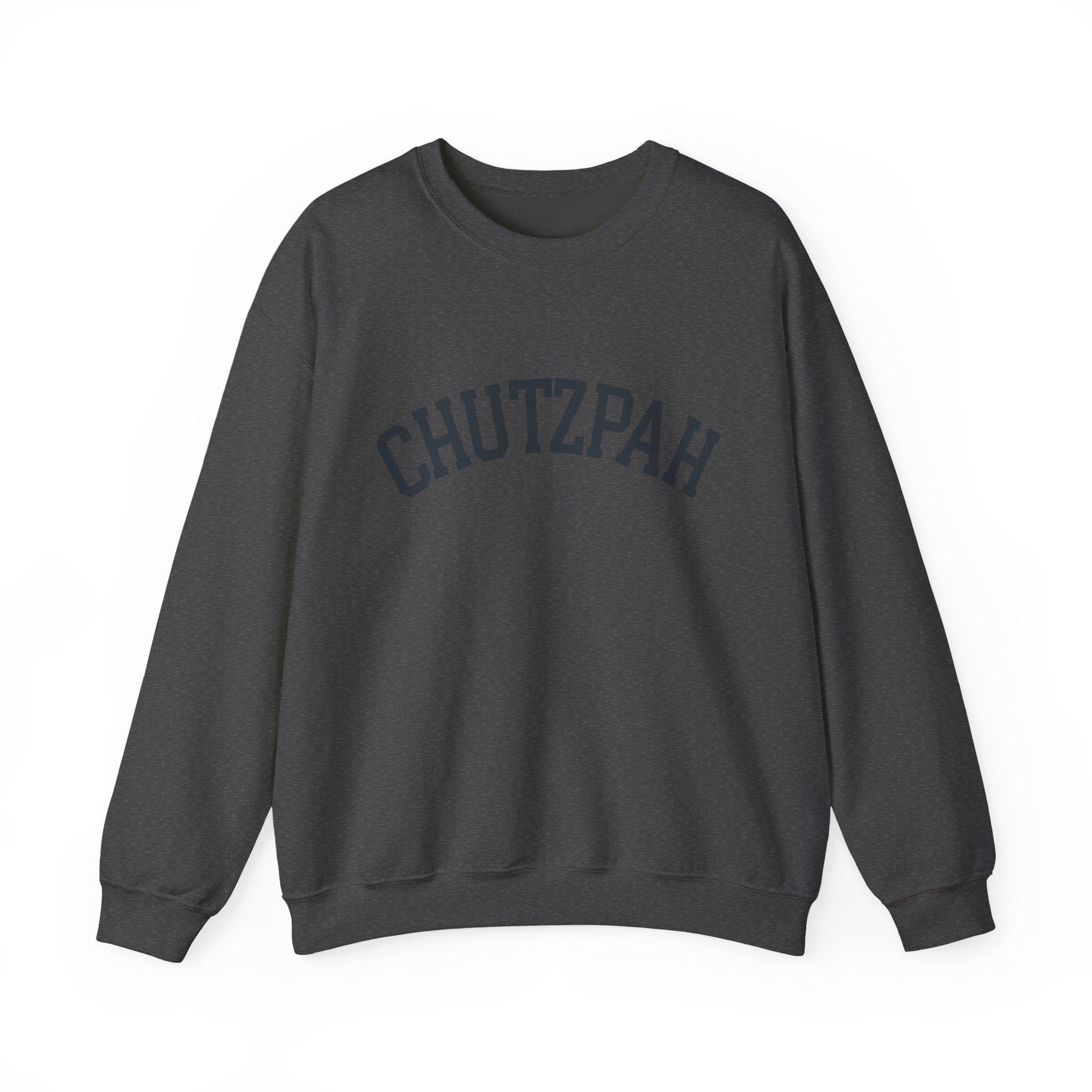 Featuring arched lettering across the chest, this pullover delivers quiet irreverence with classic styling. “Chutzpah” carries humor, confidence, and unmistakable Jewish character — subtle enough for daily wear, bold enough to spark conversation.