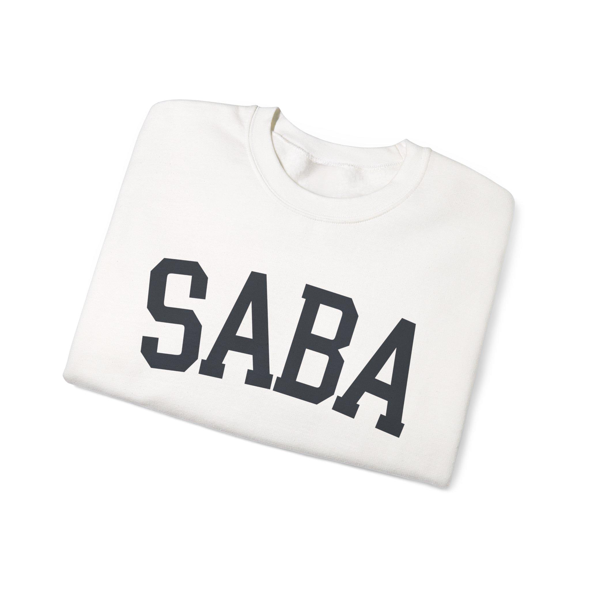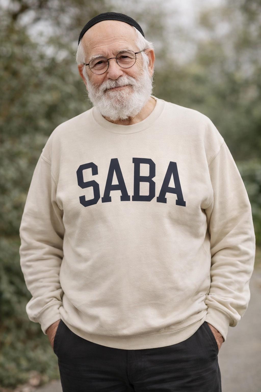 SABA sweatshirt — a collegiate-style Hebrew grandpa crewneck that honors family with warmth and quiet confidence.