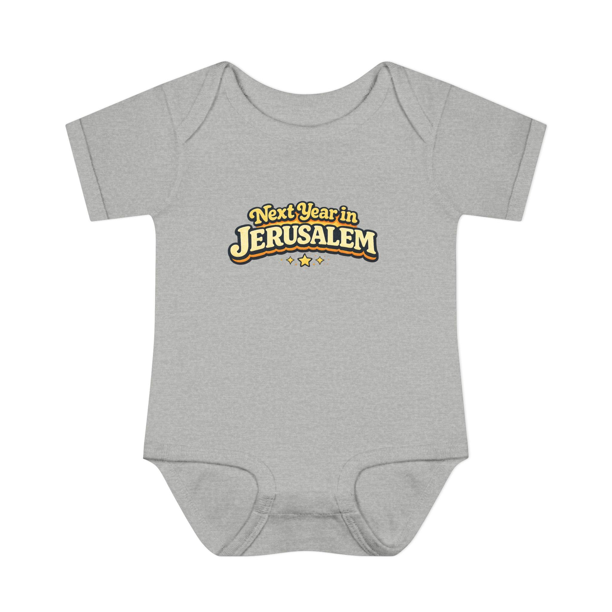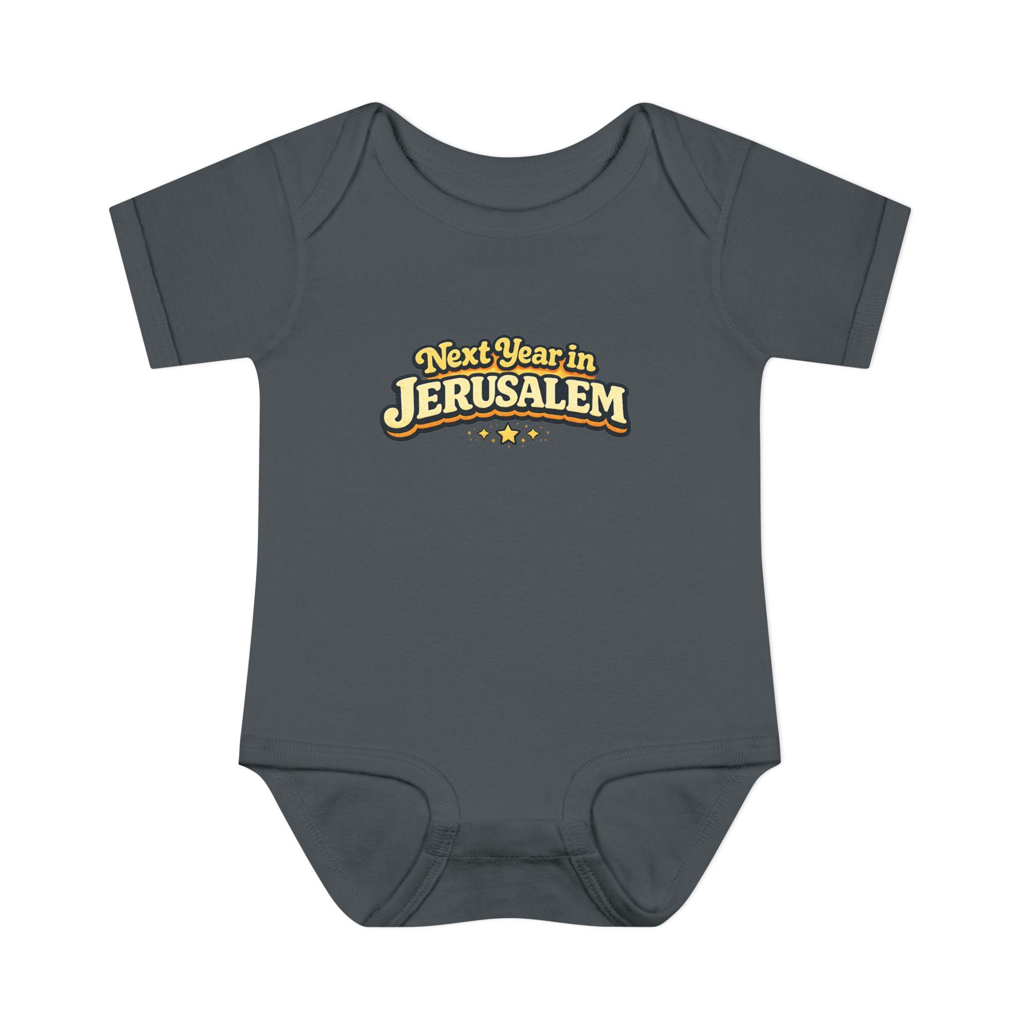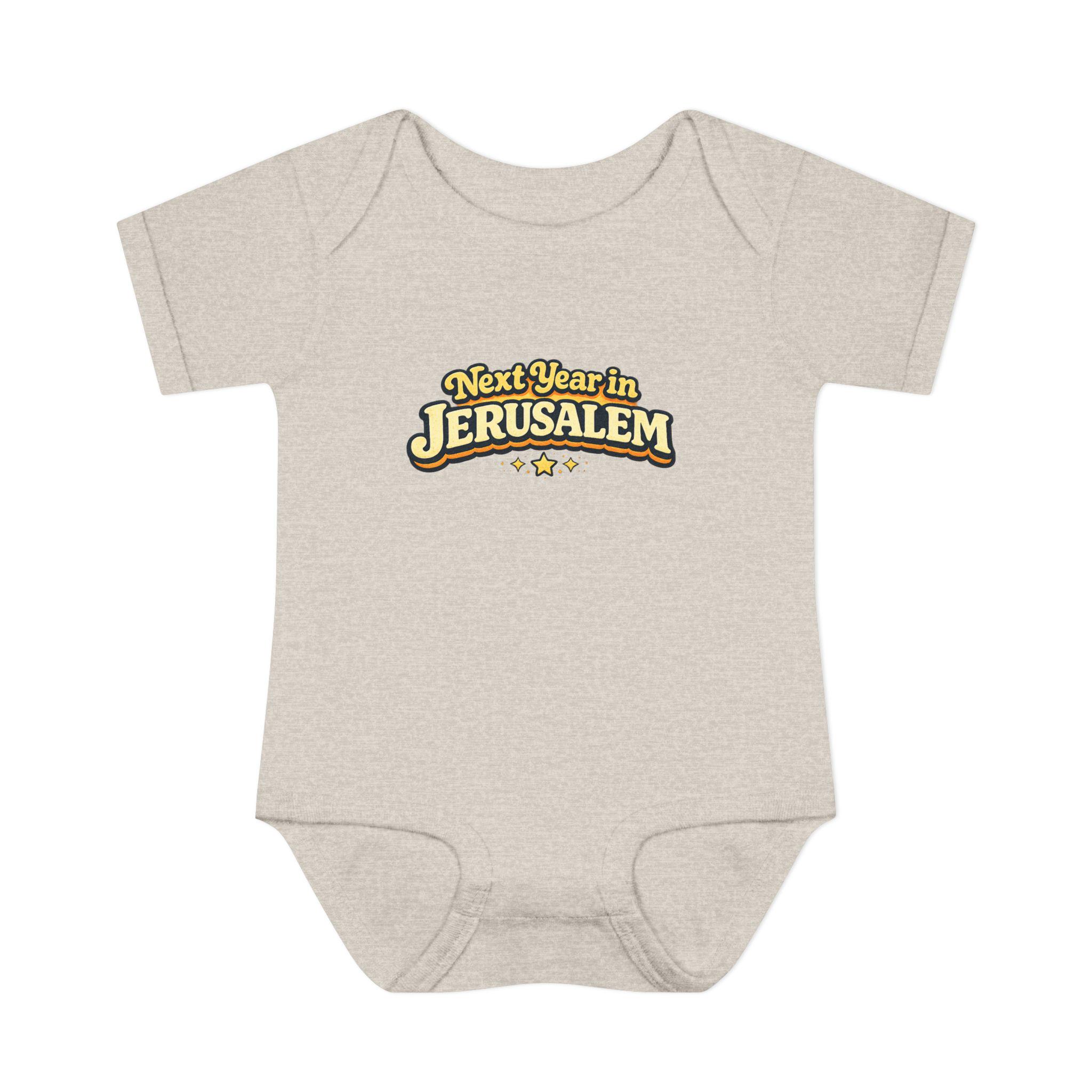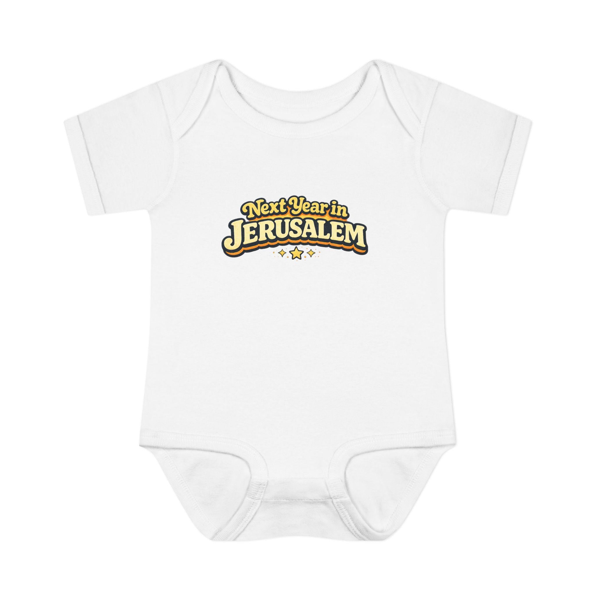 A soft, lightweight infant bodysuit that wears like a hug. Gentle combed ringspun cotton and ribbed knit binding keep tiny shoulders cozy and moving freely while side seams hold the shape wash after wash. The front sports a small, cheerful Jerusalem-themed graphic that reads like a tiny travel memento—subtle, sunny, and full of warmth. Snap closures at the crotch make changes quick and fuss-free. Breathable and REACH-certified, this onesie works well for everyday cuddles, stroller strolls, and meaningful family moments that celebrate place and home.