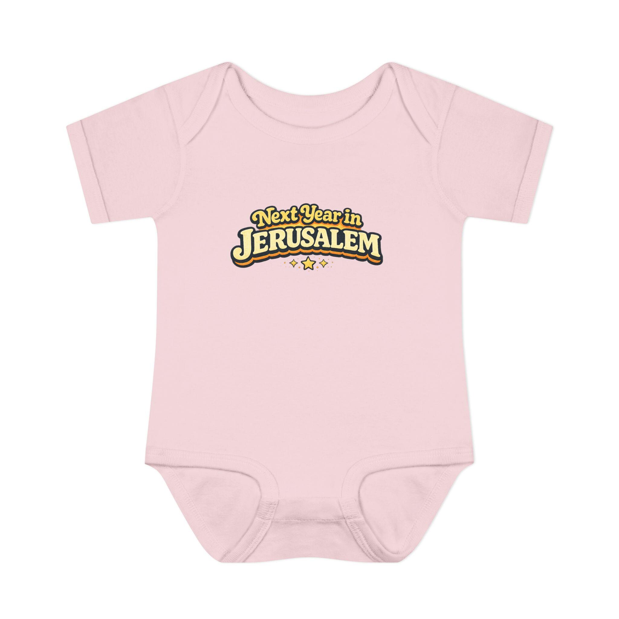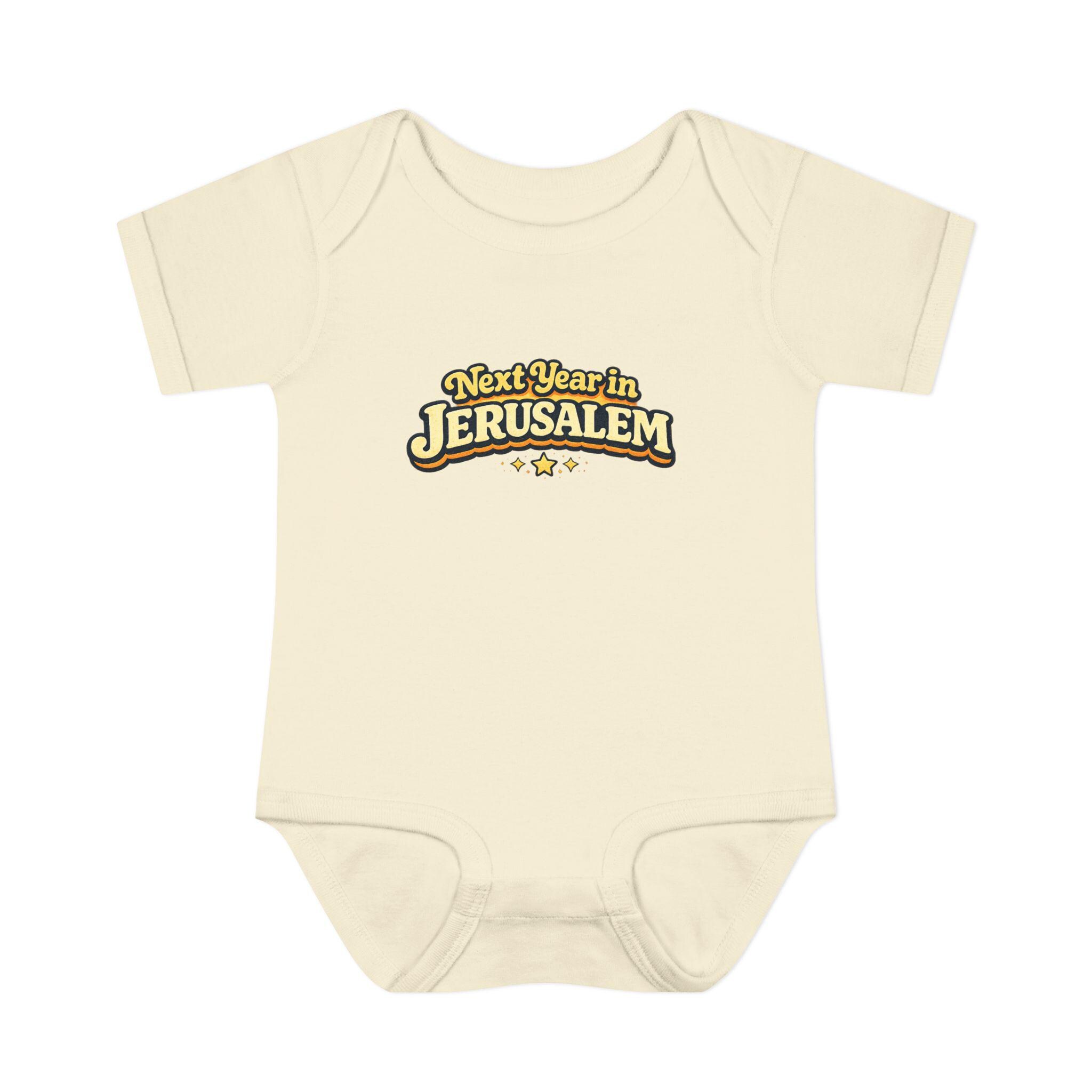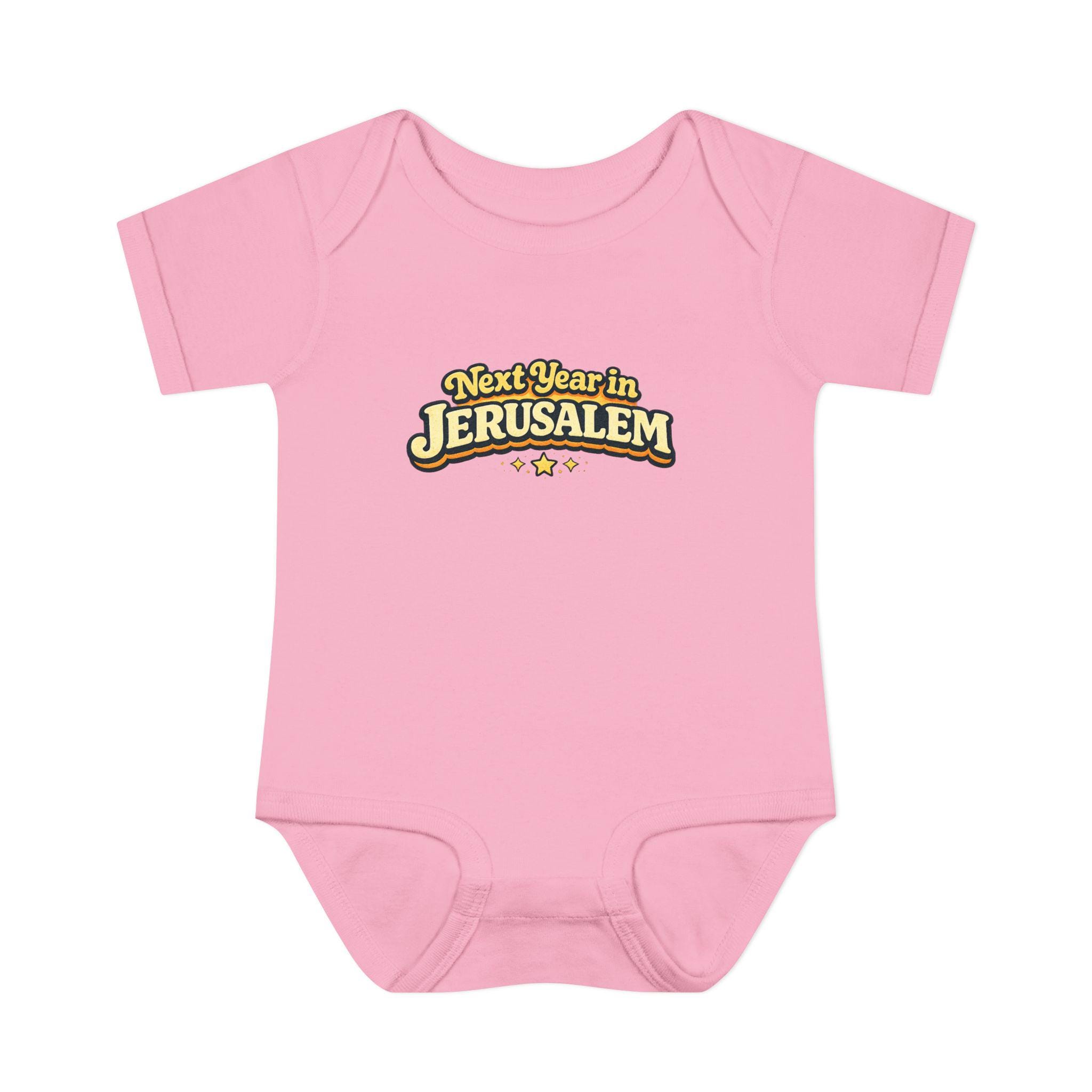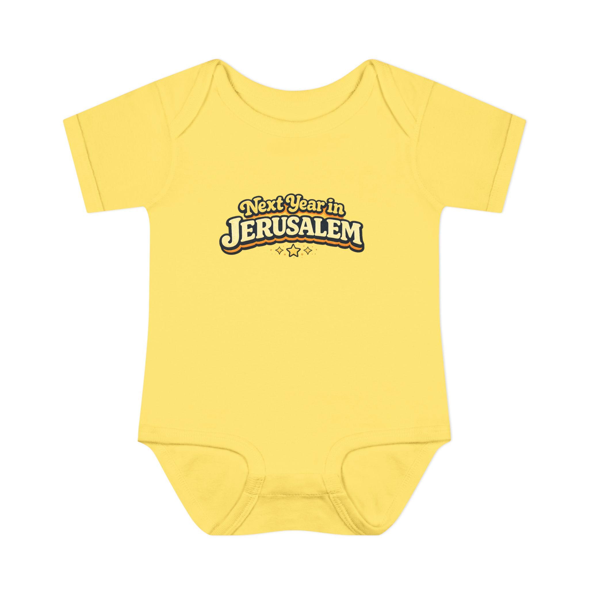 A soft, lightweight infant bodysuit that wears like a hug. Gentle combed ringspun cotton and ribbed knit binding keep tiny shoulders cozy and moving freely while side seams hold the shape wash after wash. The front sports a small, cheerful Jerusalem-themed graphic that reads like a tiny travel memento—subtle, sunny, and full of warmth. Snap closures at the crotch make changes quick and fuss-free. Breathable and REACH-certified, this onesie works well for everyday cuddles, stroller strolls, and meaningful family moments that celebrate place and home.