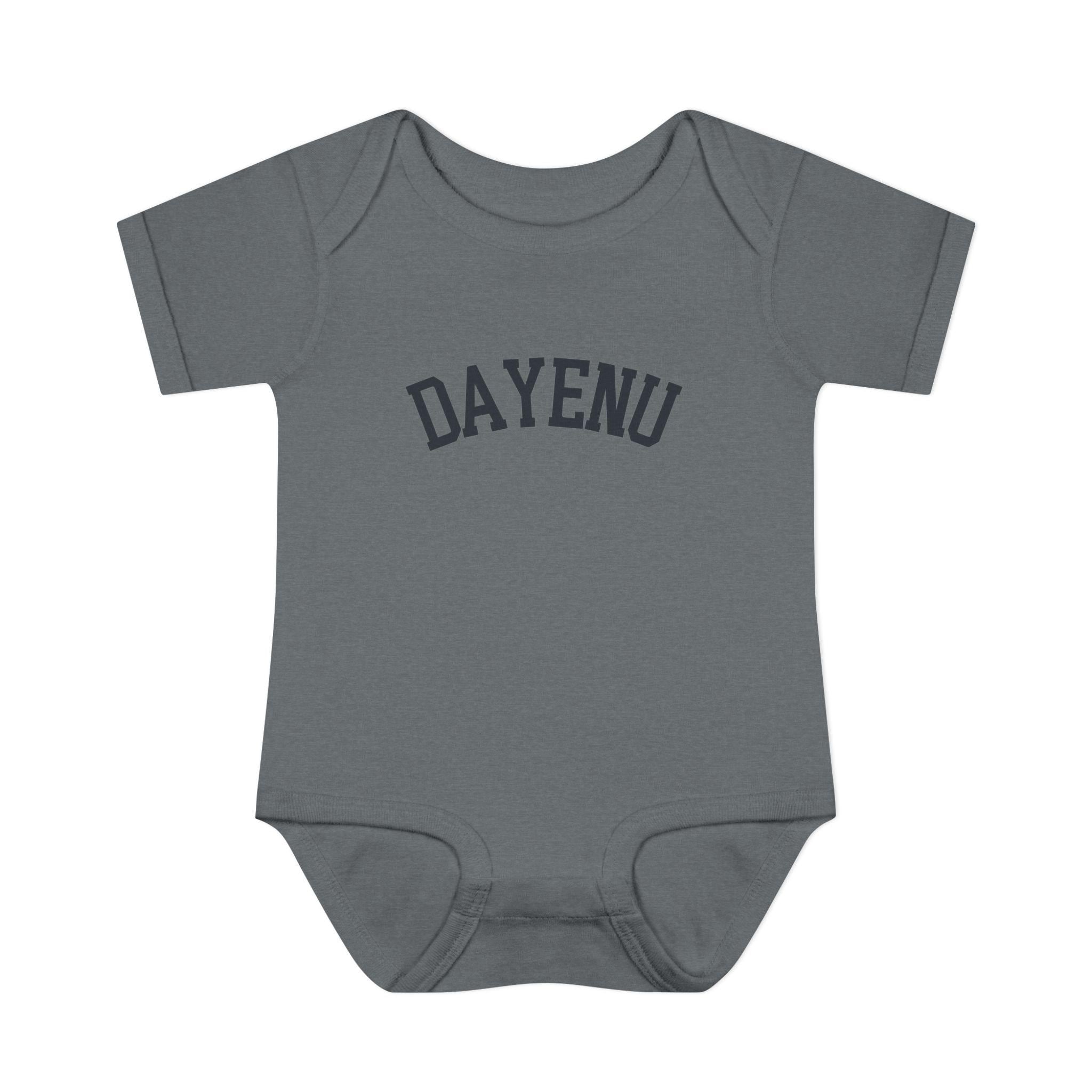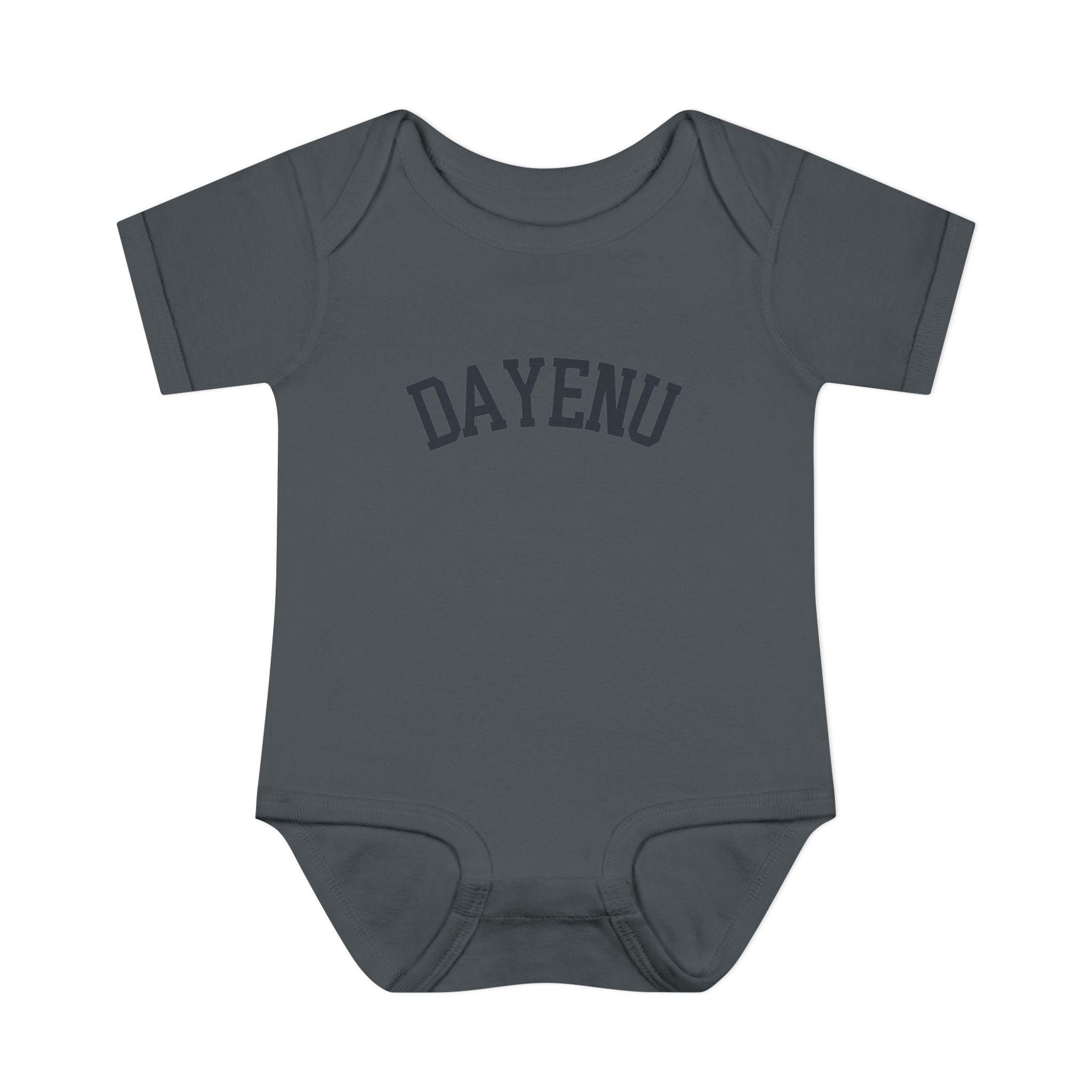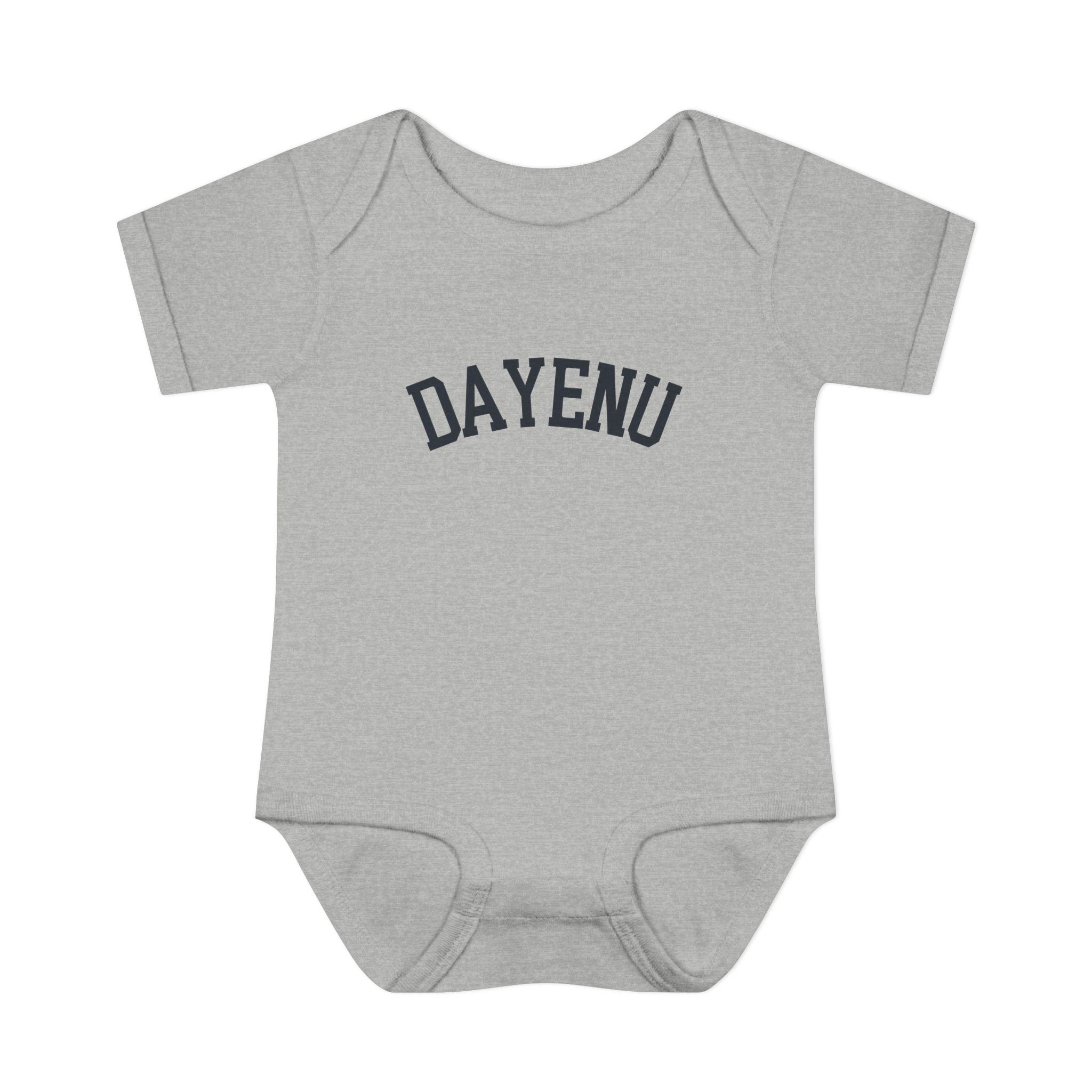 Celebrate Passover with a modern, minimal baby look. This soft Dayenu infant bodysuit features a clean arched wordmark design that feels timeless, understated, and meaningful — perfect for Seder night, holiday photos, or gifting a Jewish newborn during Pesach.