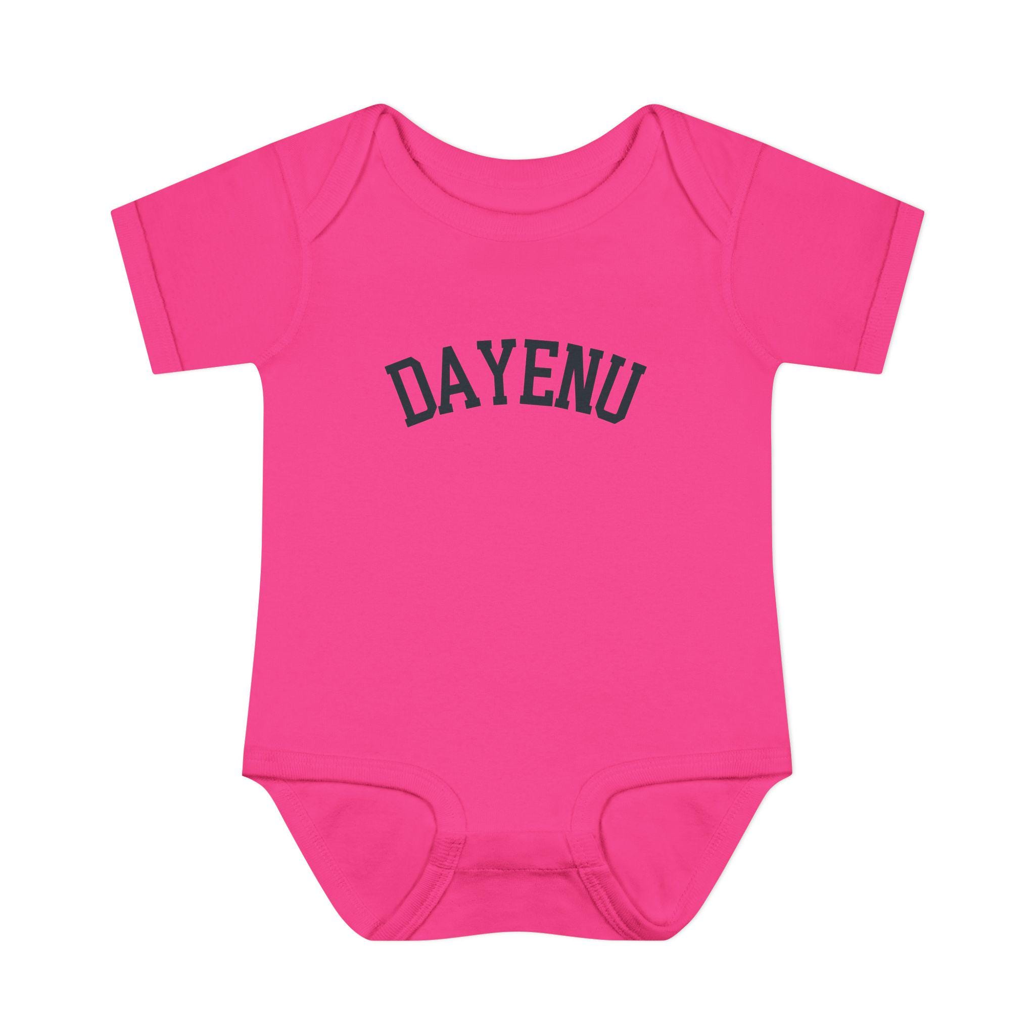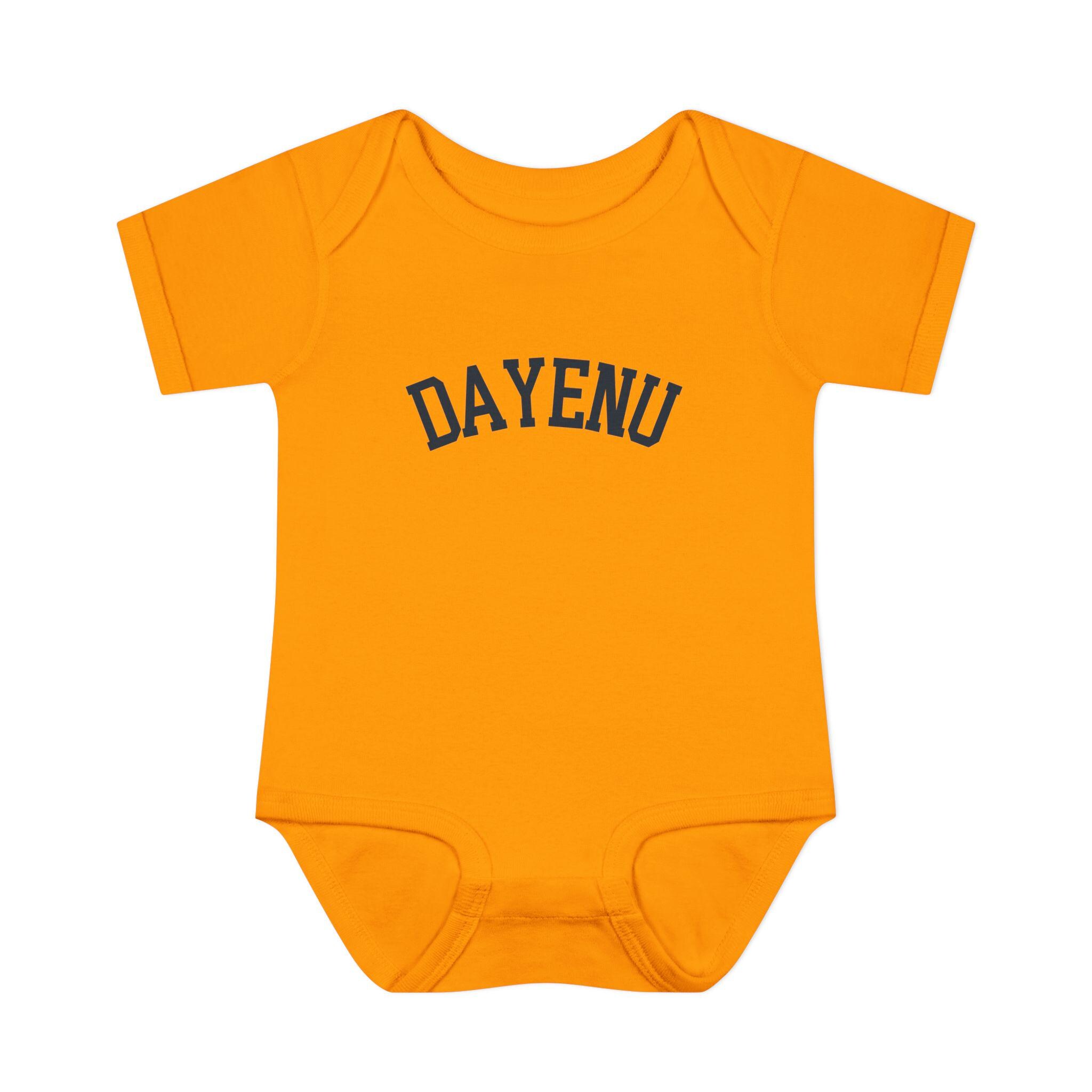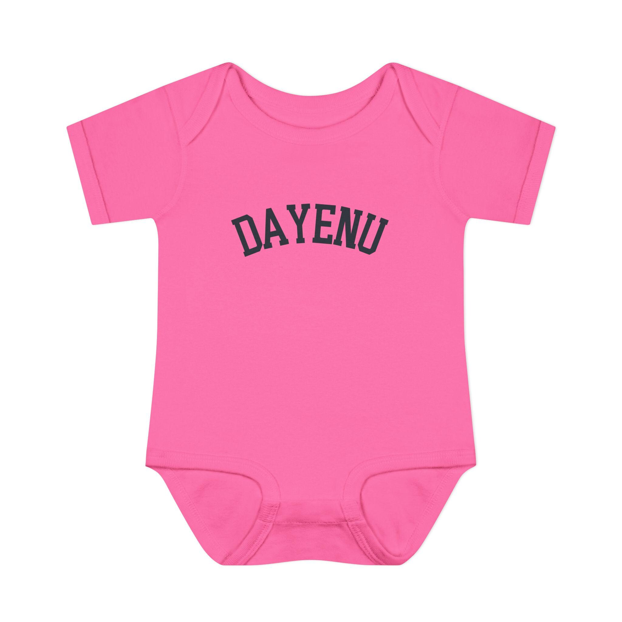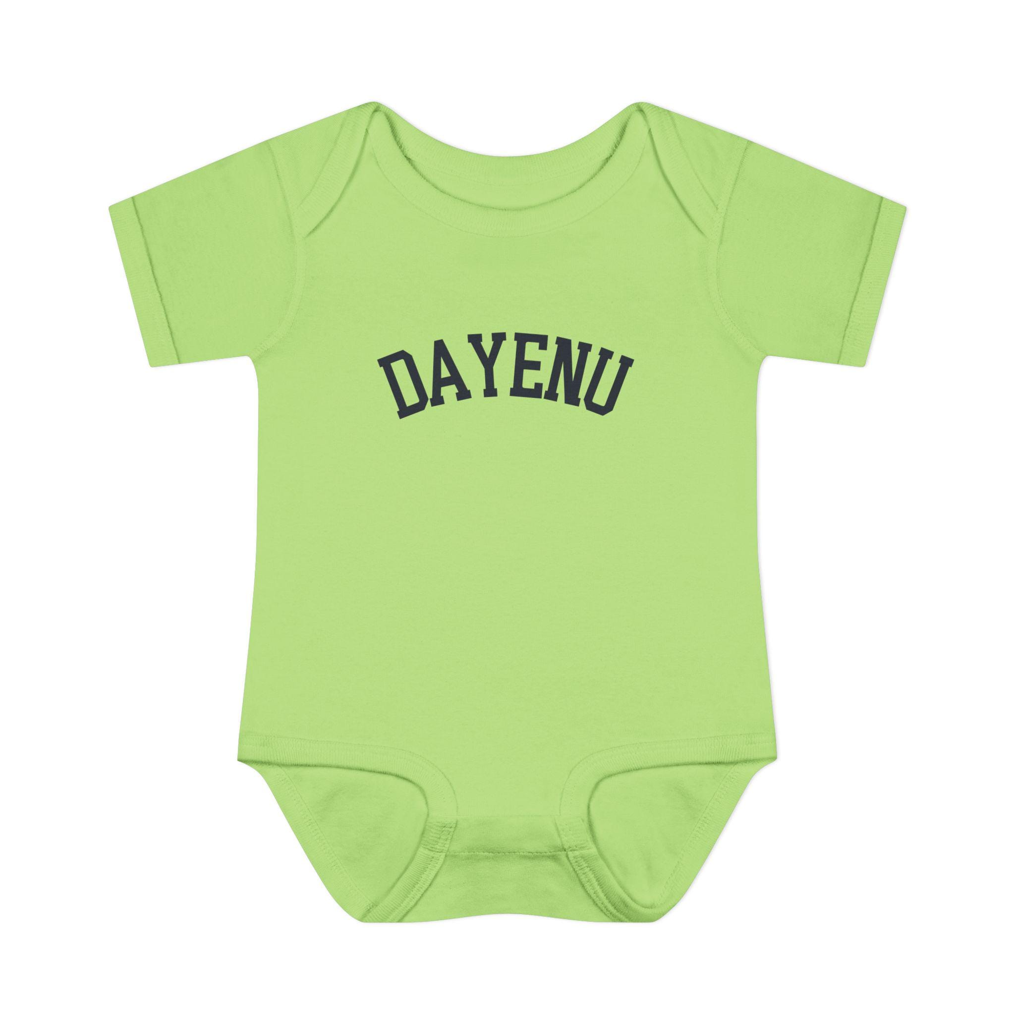 Celebrate Passover with a modern, minimal baby look. This soft Dayenu infant bodysuit features a clean arched wordmark design that feels timeless, understated, and meaningful — perfect for Seder night, holiday photos, or gifting a Jewish newborn during Pesach.