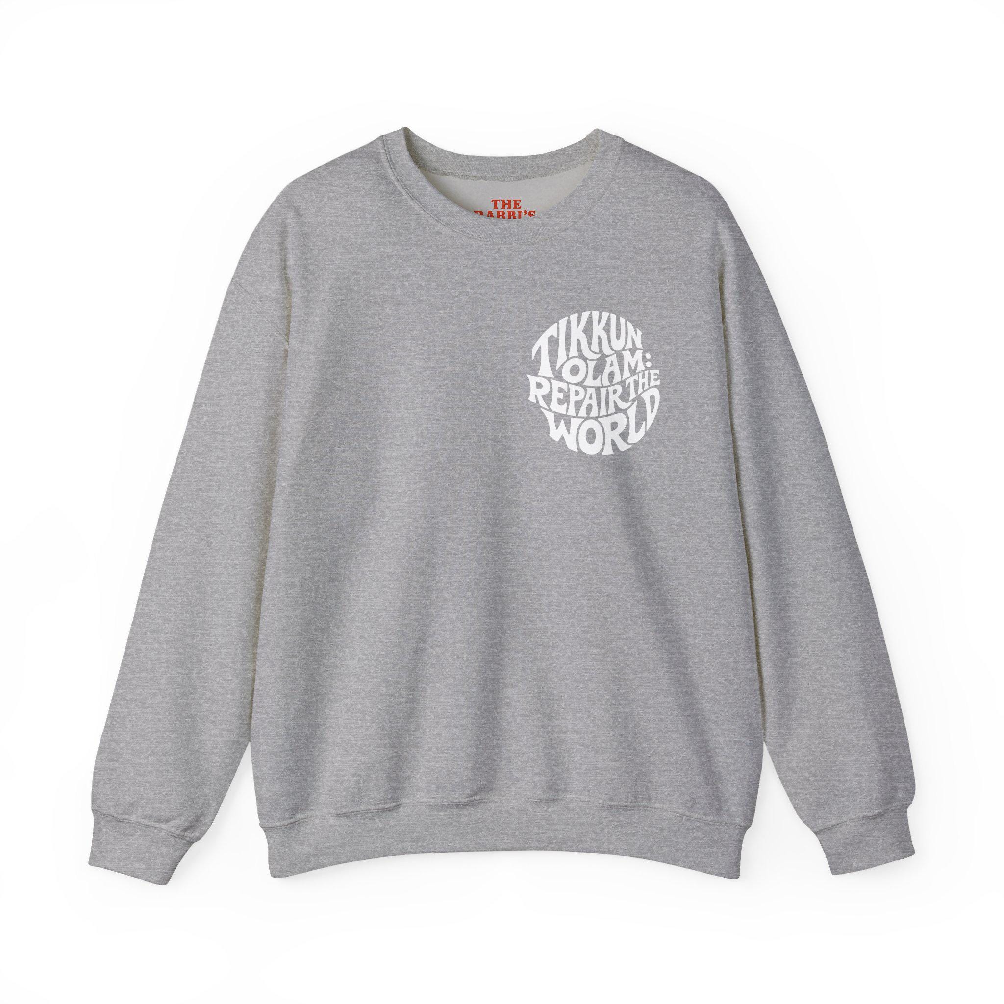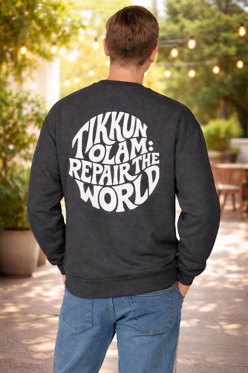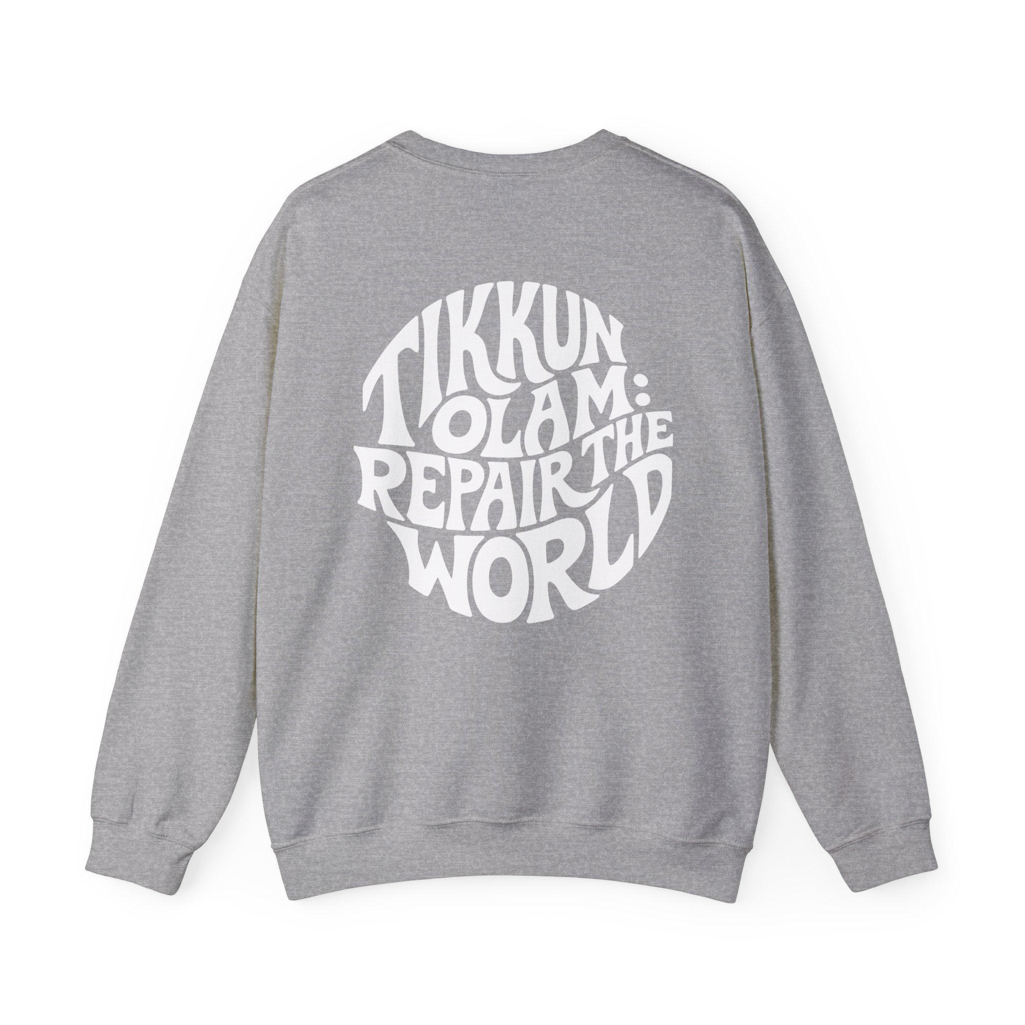 Tikkun Olam sweatshirt — a Hebrew crewneck designed to carry purpose with everyday comfort.