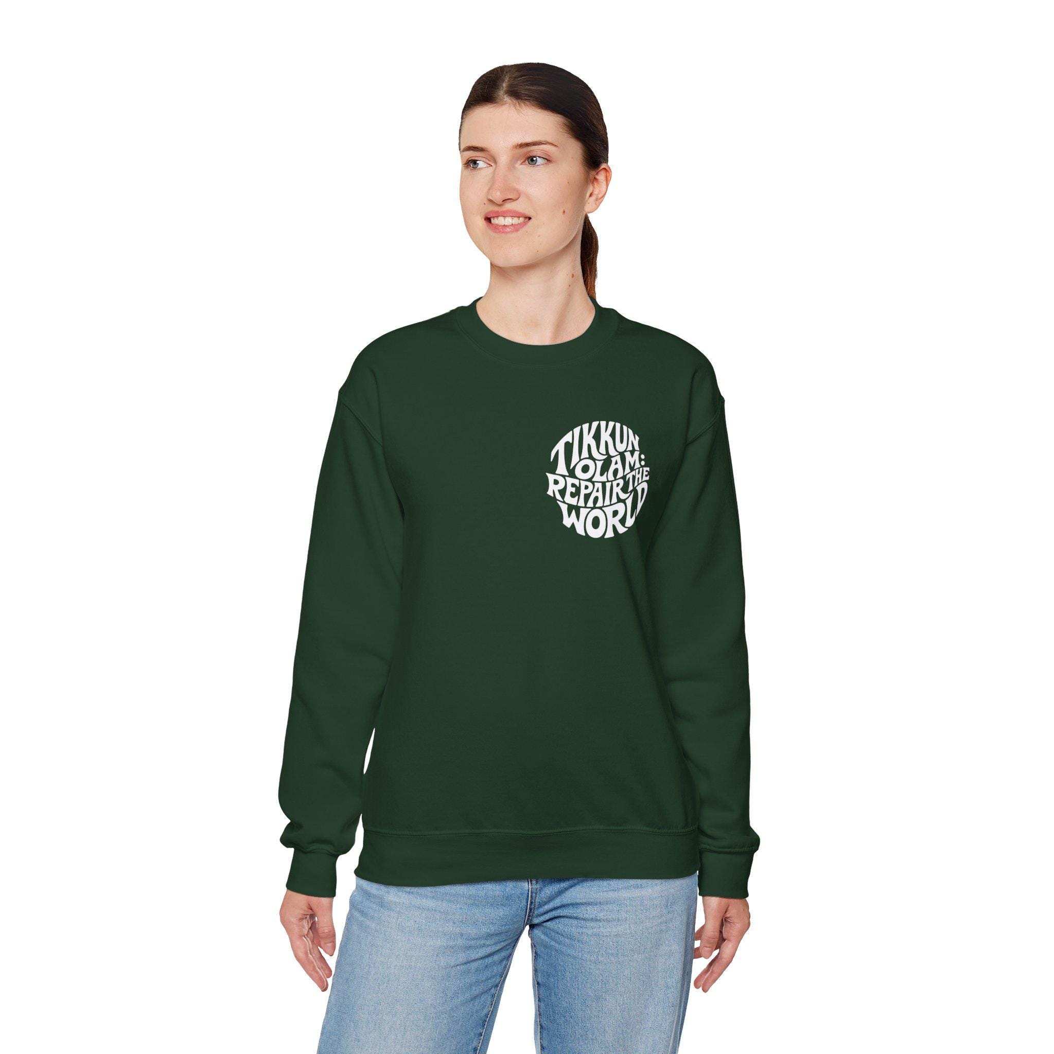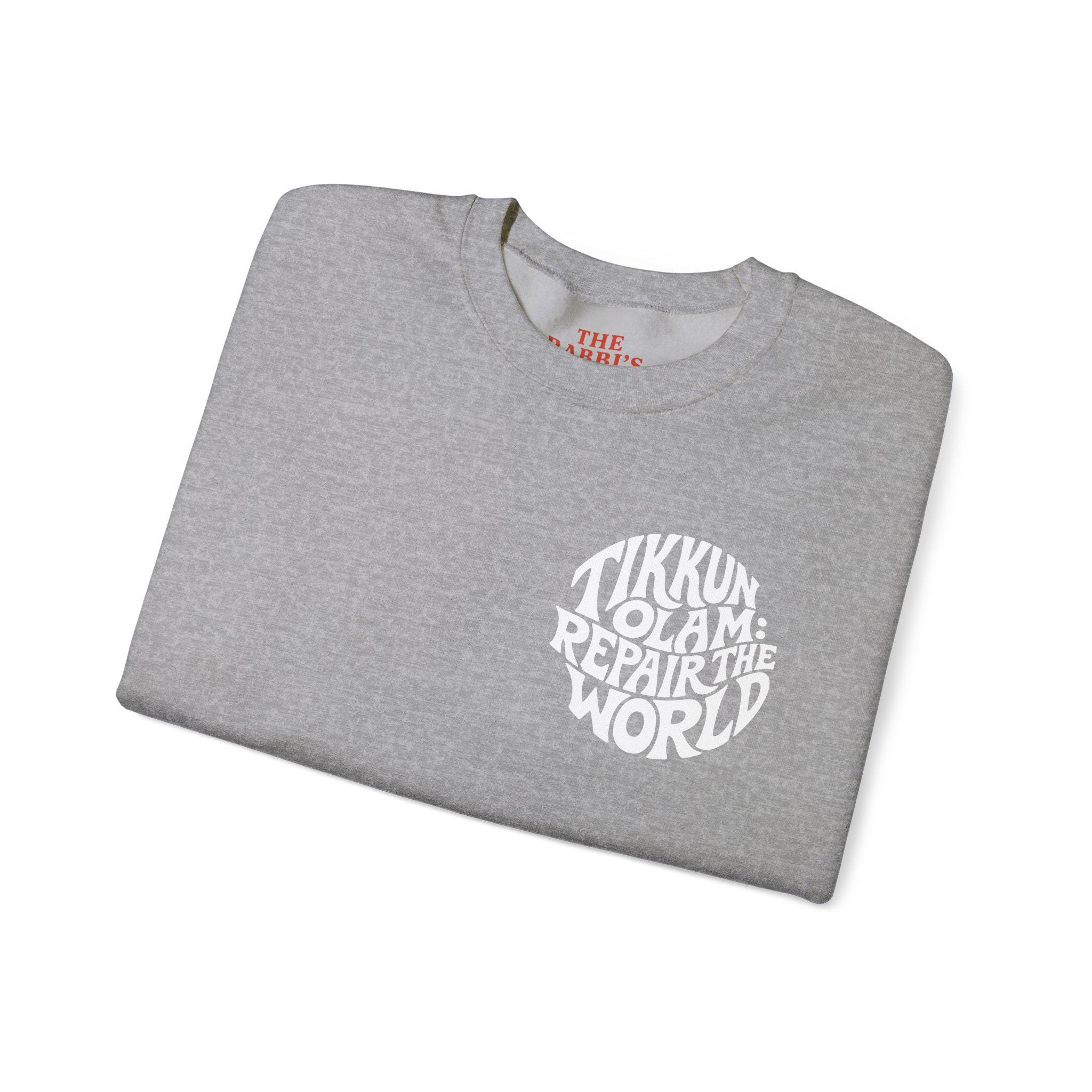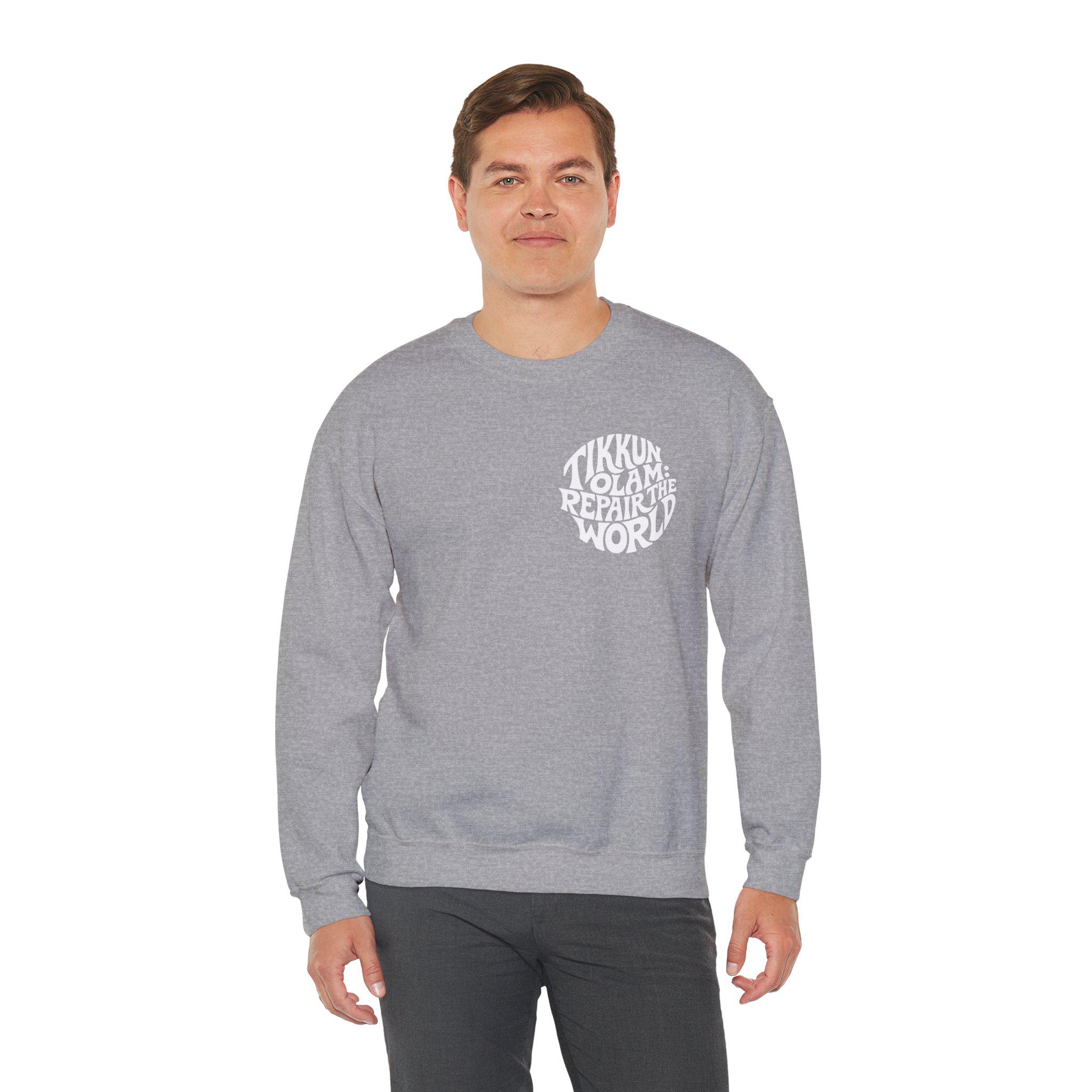 Tikkun Olam sweatshirt — a Hebrew crewneck designed to carry purpose with everyday comfort.