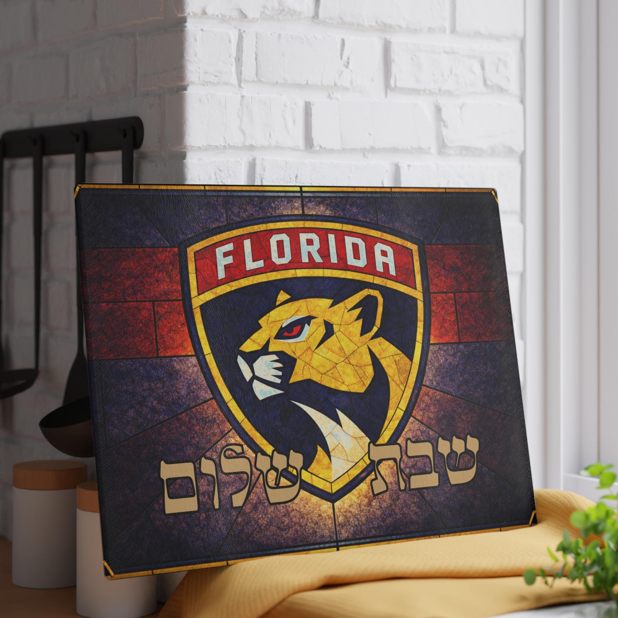 Florida Panthers Challah Board, Tempered Glass Shabbat Cutting Board, Hockey Fan Gift