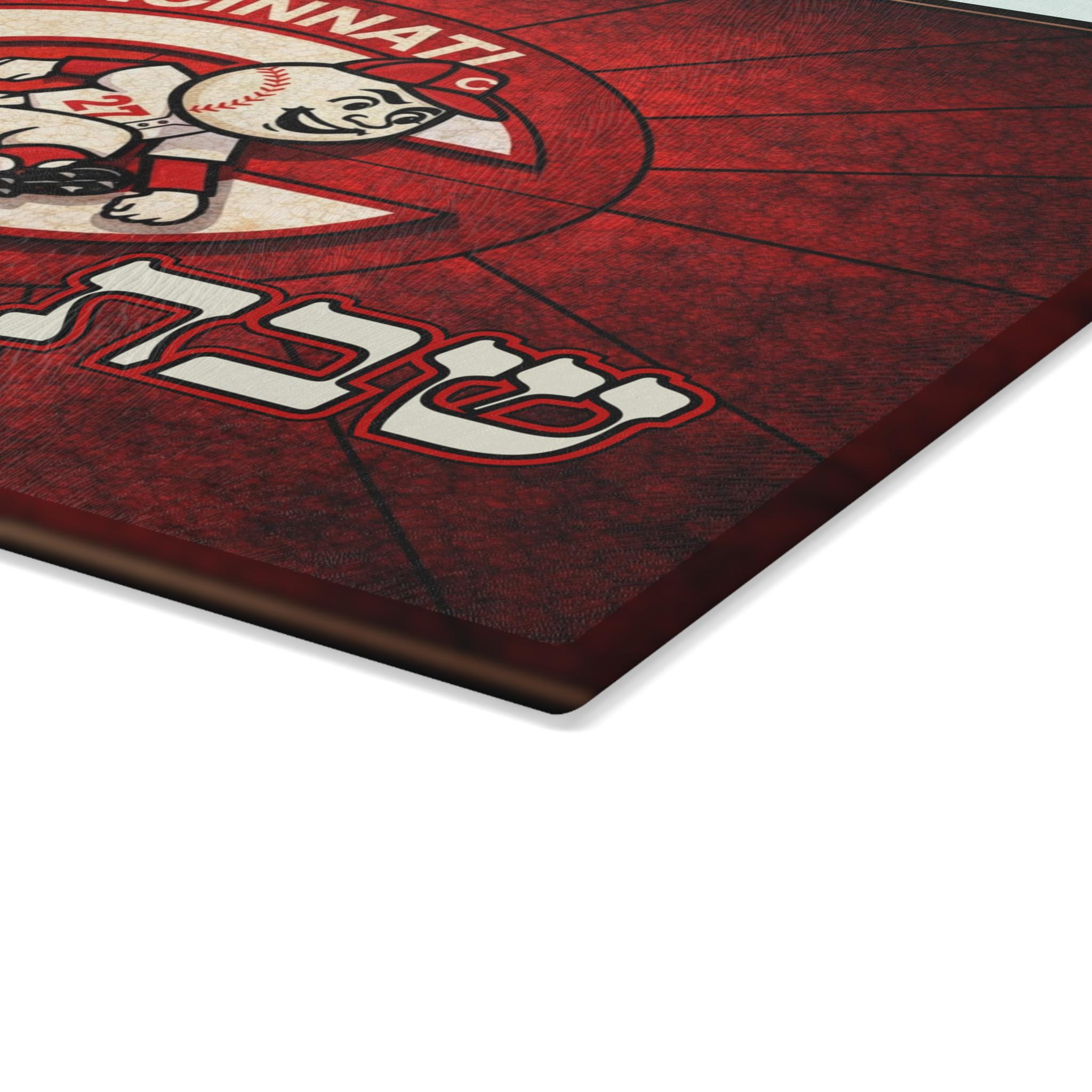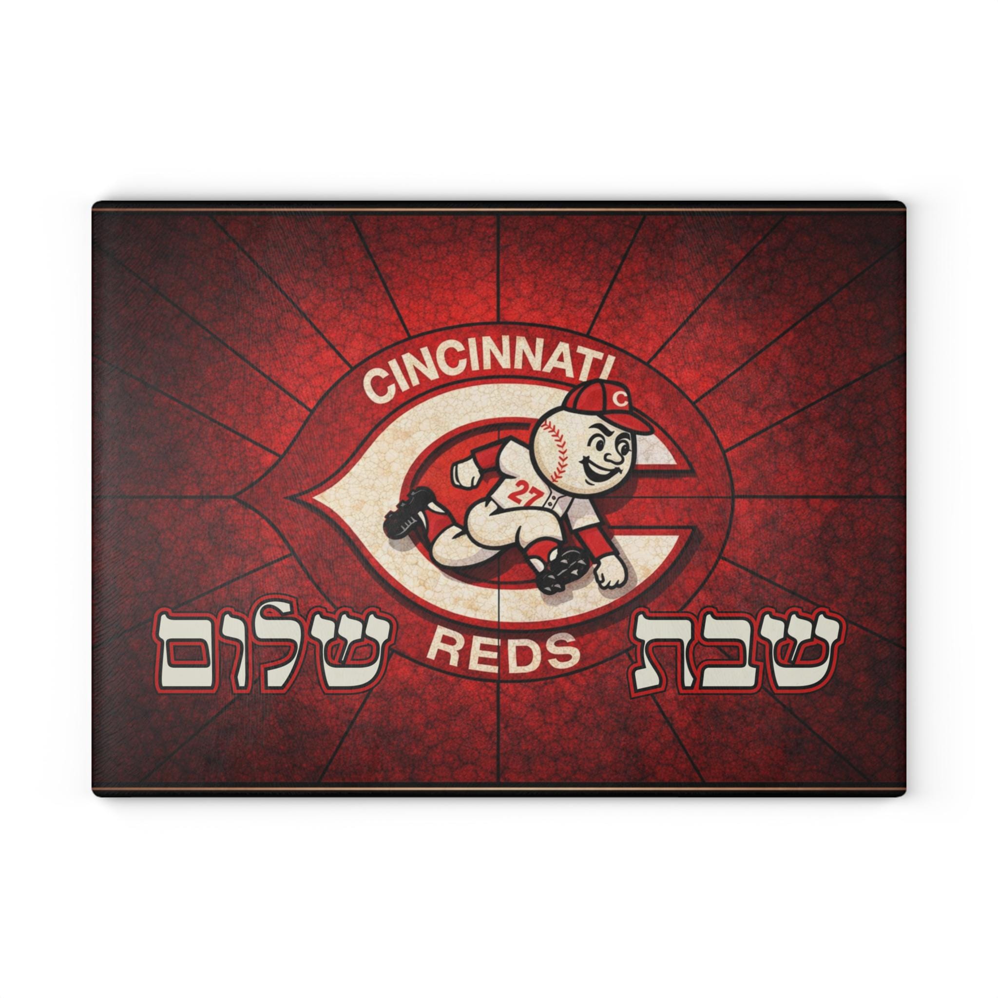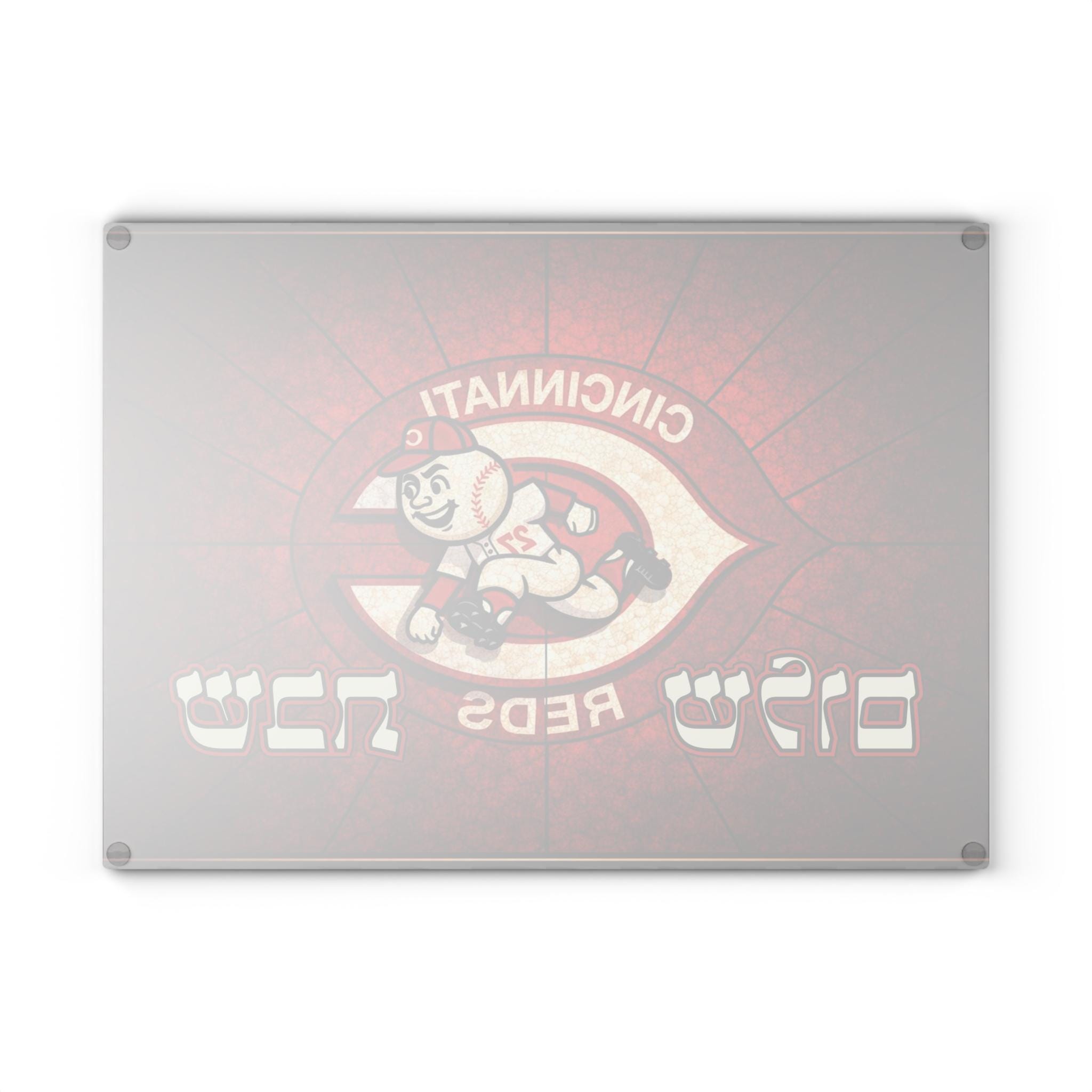 Cincinnati Reds Old School Logo Challah Board, 15x11 Tempered Glass Shabbat Cutting Board, Jewish Baseball Wedding Gift