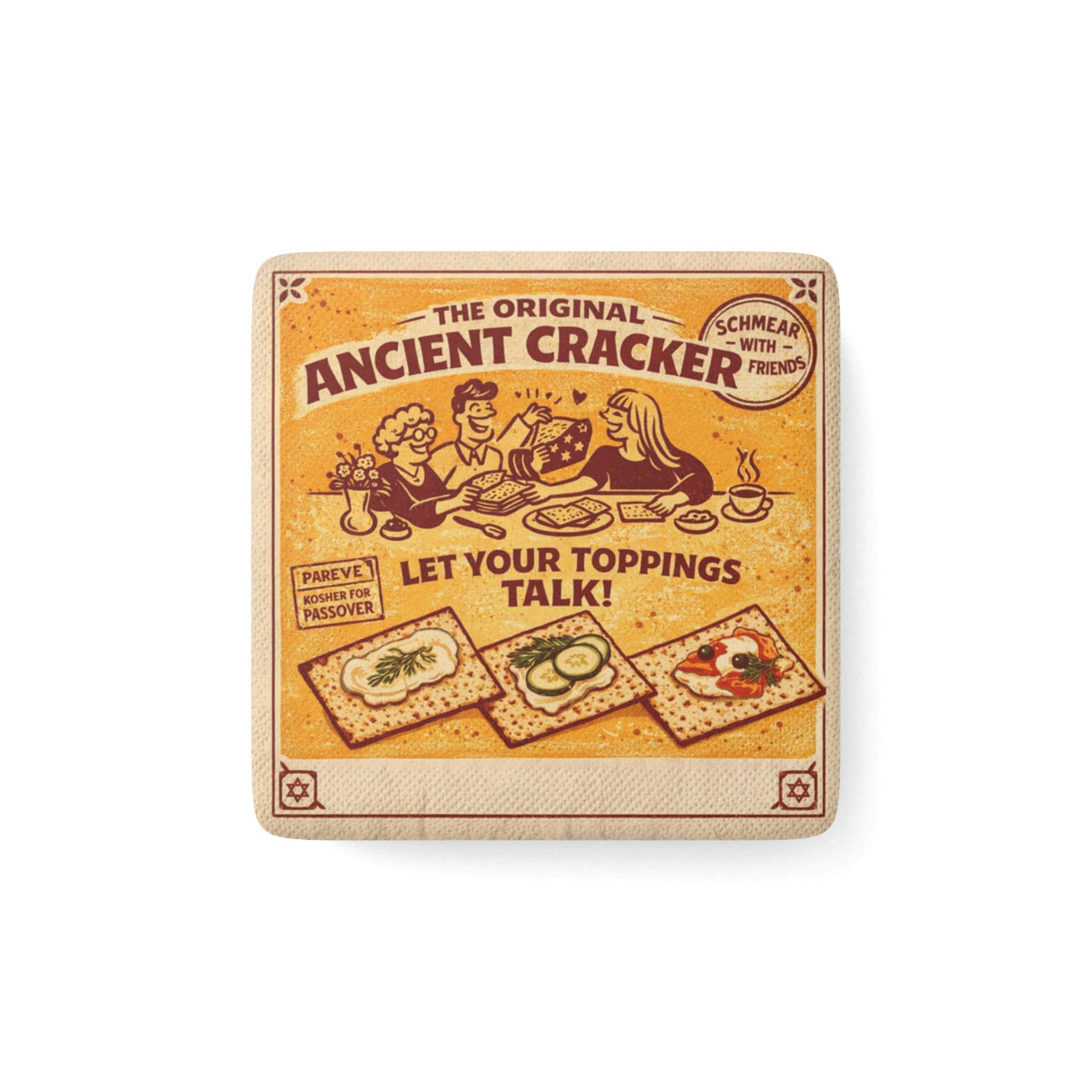 This Passover vintage matzah porcelain magnet is a 2" x 2" glossy tile designed for Jewish kitchens that love retro charm and Seder-ready style. Small but bold, it brings nostalgic Pesach energy straight to your fridge.