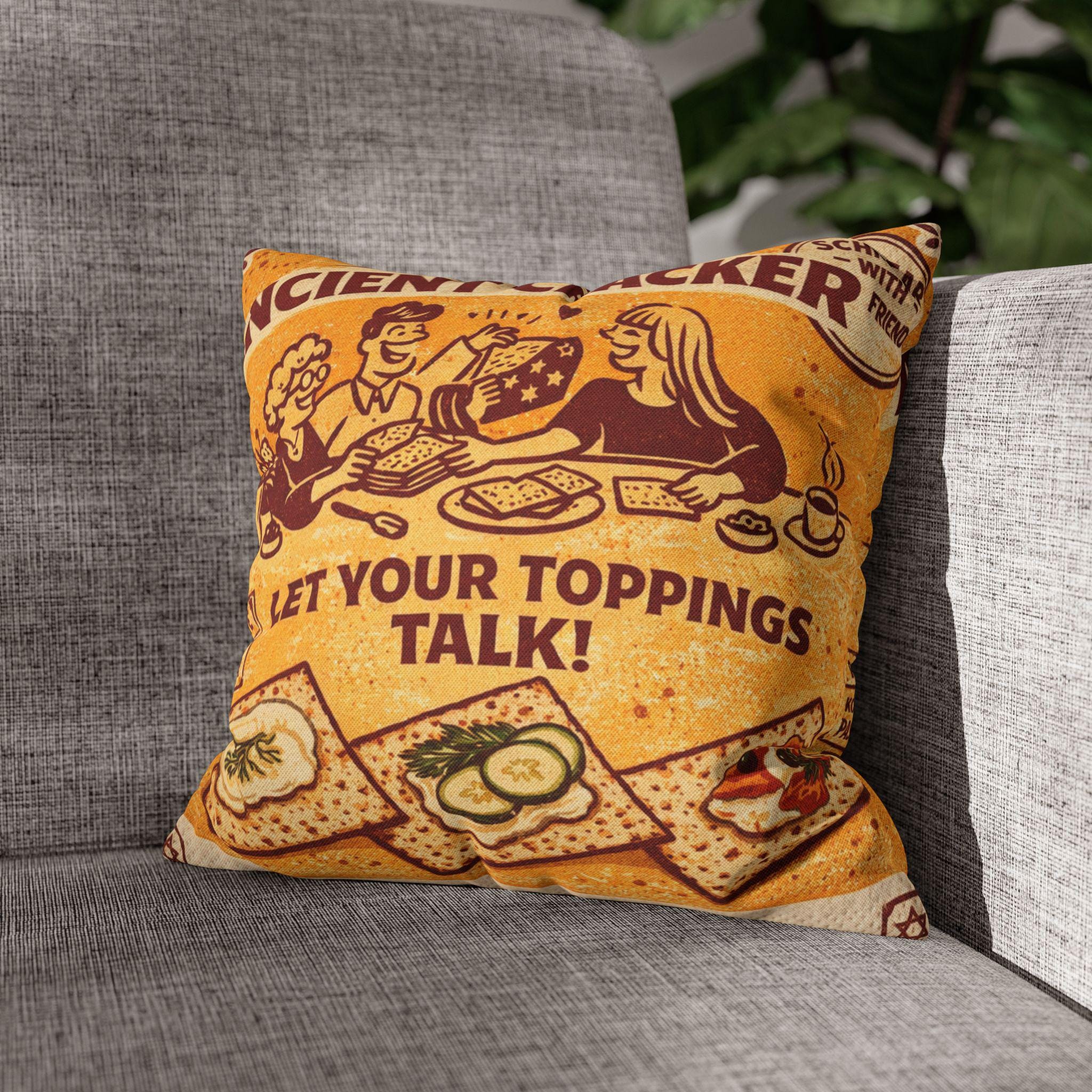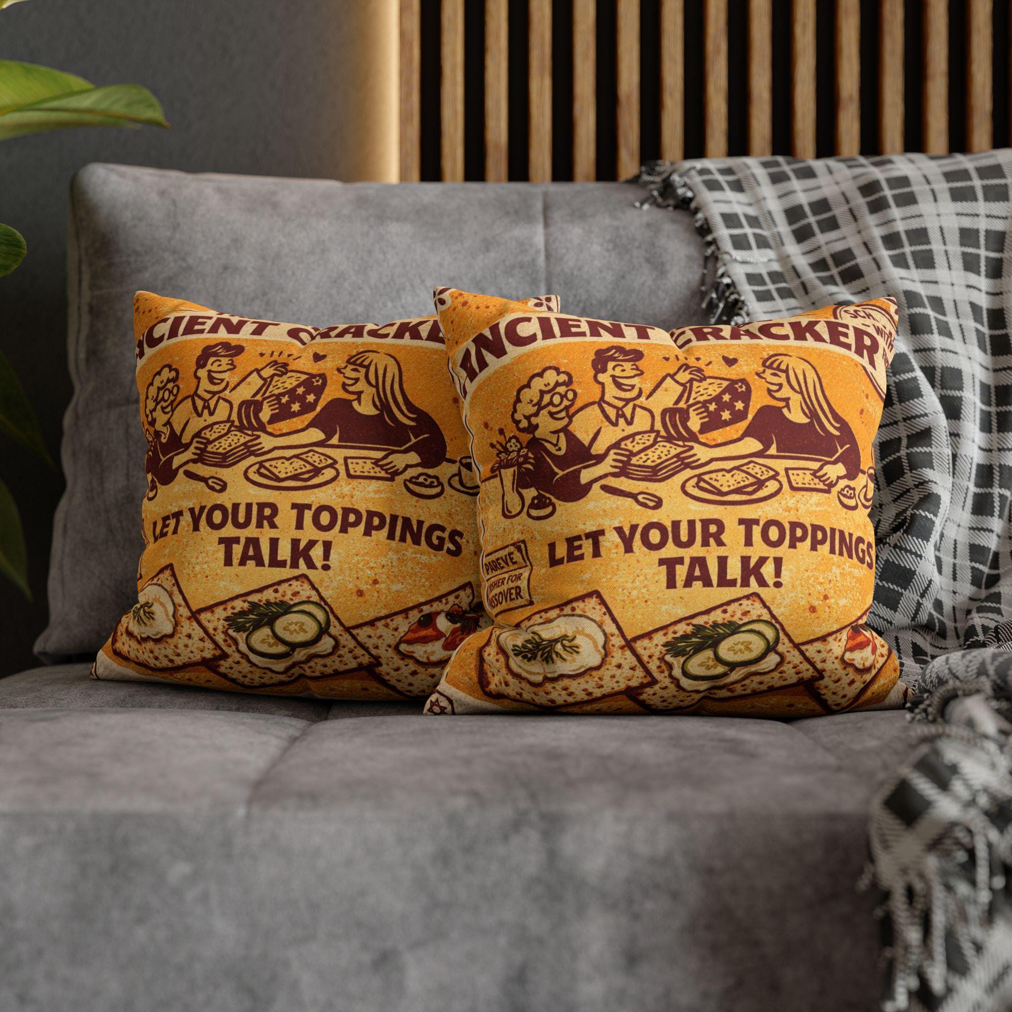 Passover Matzah Decorative Pillow Cover, Vintage Jewish Kitchen Art Cushion Case, Seder Hostess Gift, Holiday Home Decor