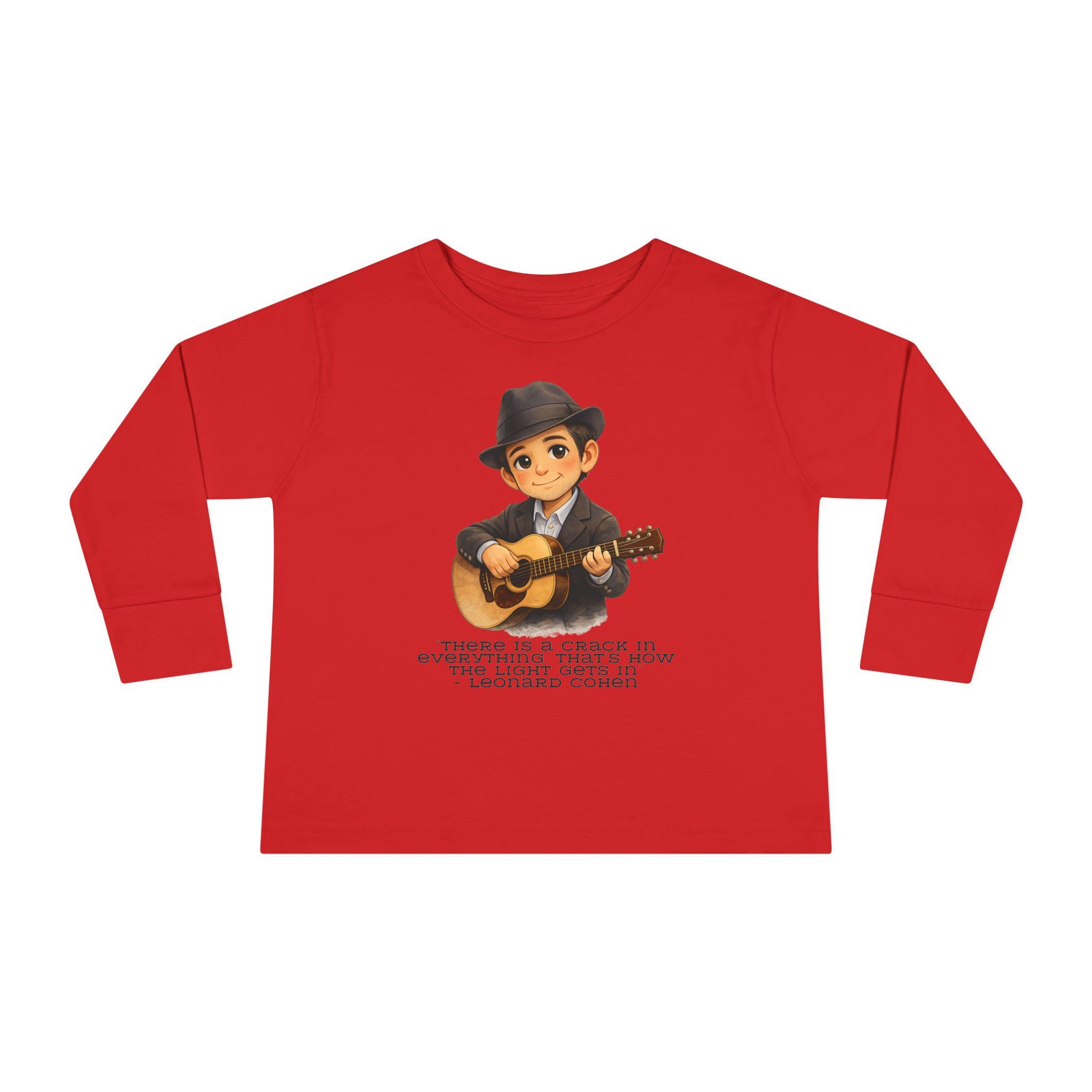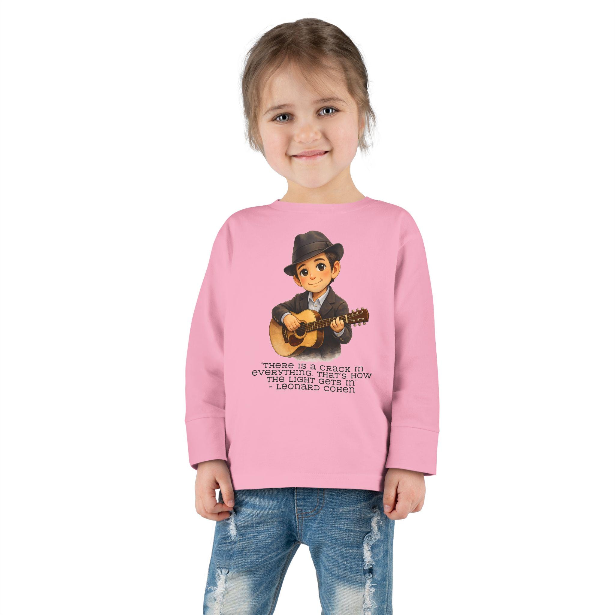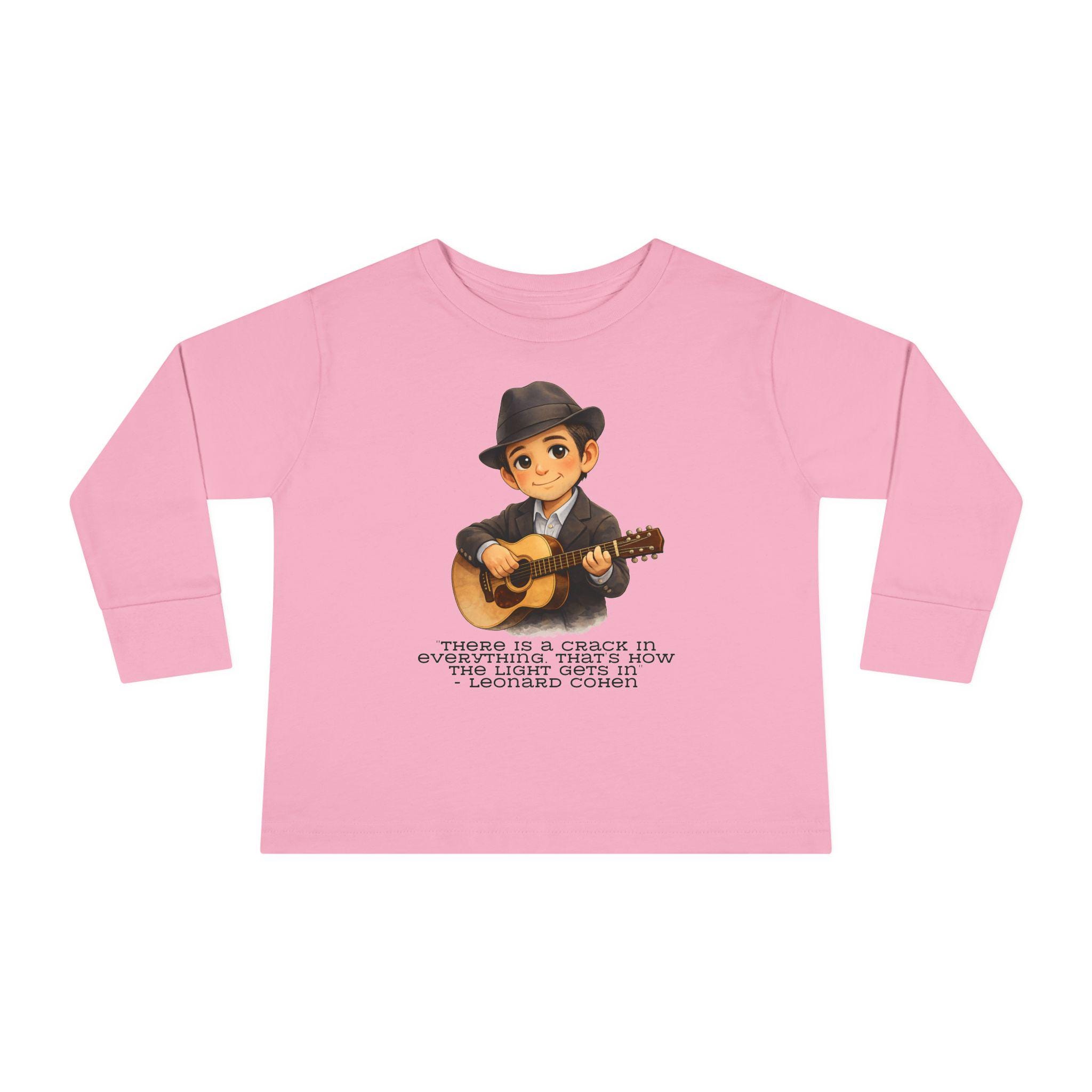A Leonard Cohen kids shirt celebrating music, poetry, and thoughtful Jewish creativity. This Jewish music legend kids tee features the powerful line: “There is a crack in everything. That’s how the light gets in.”